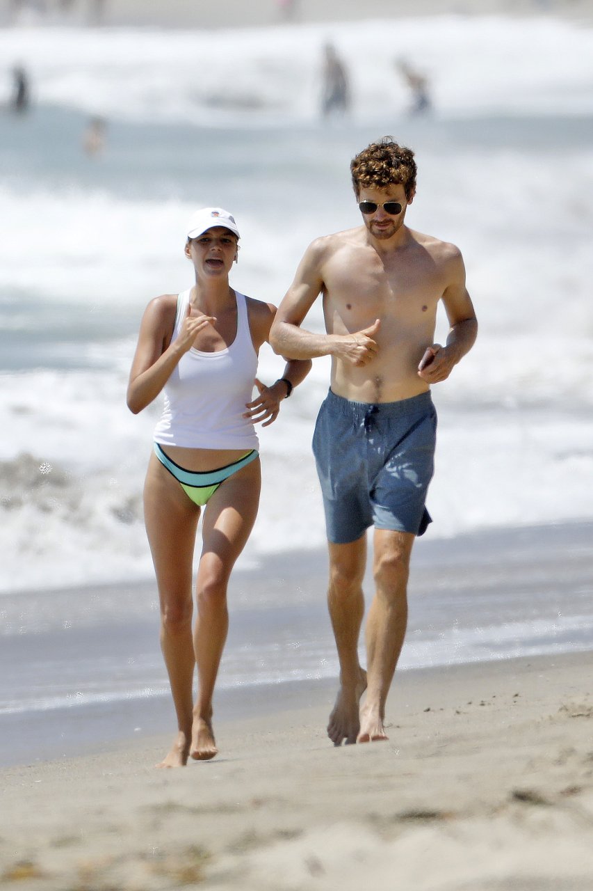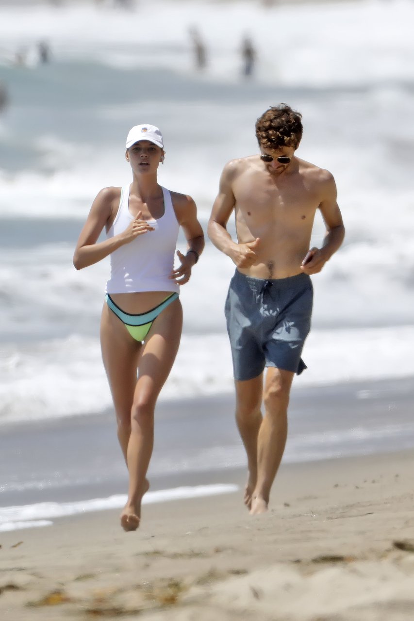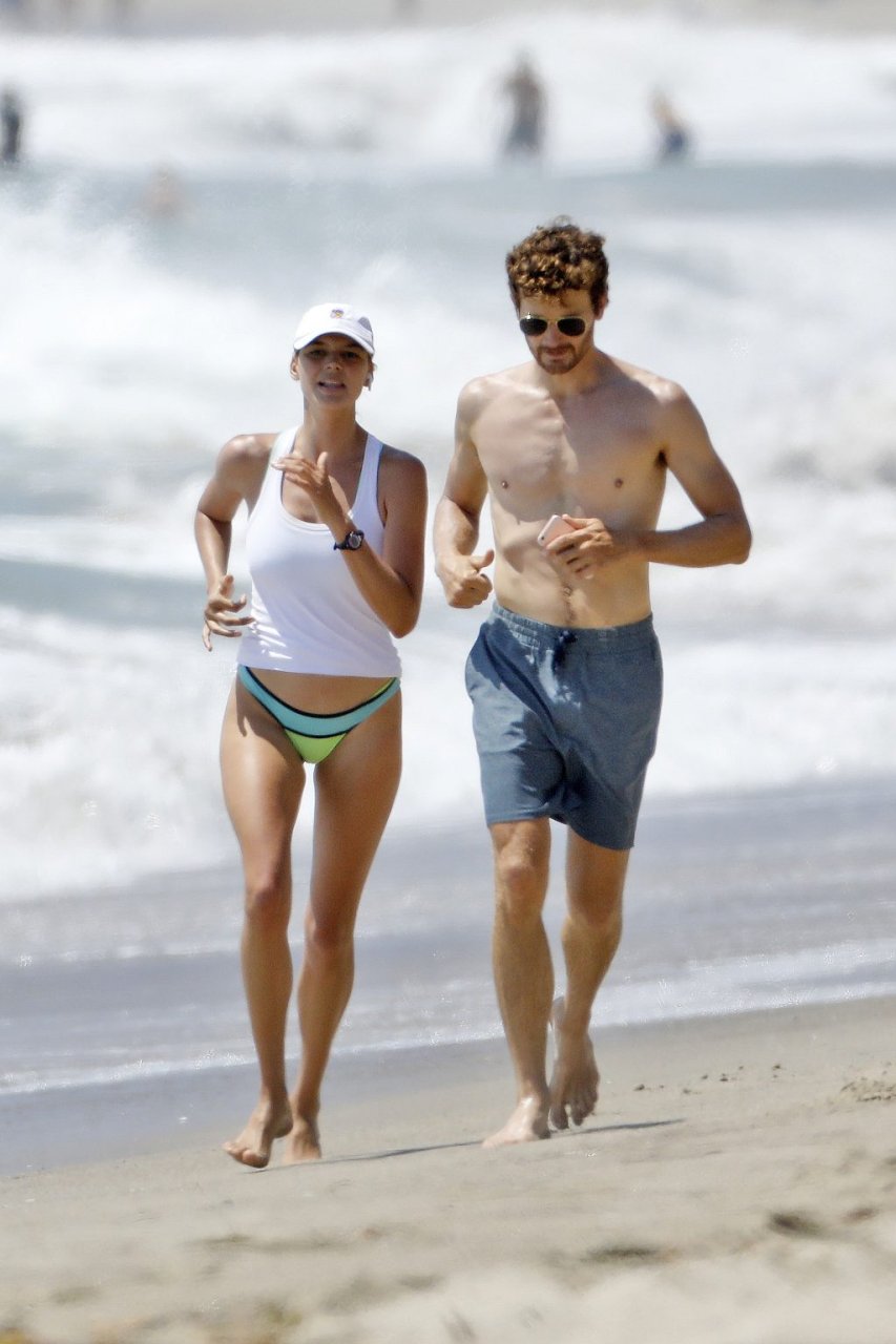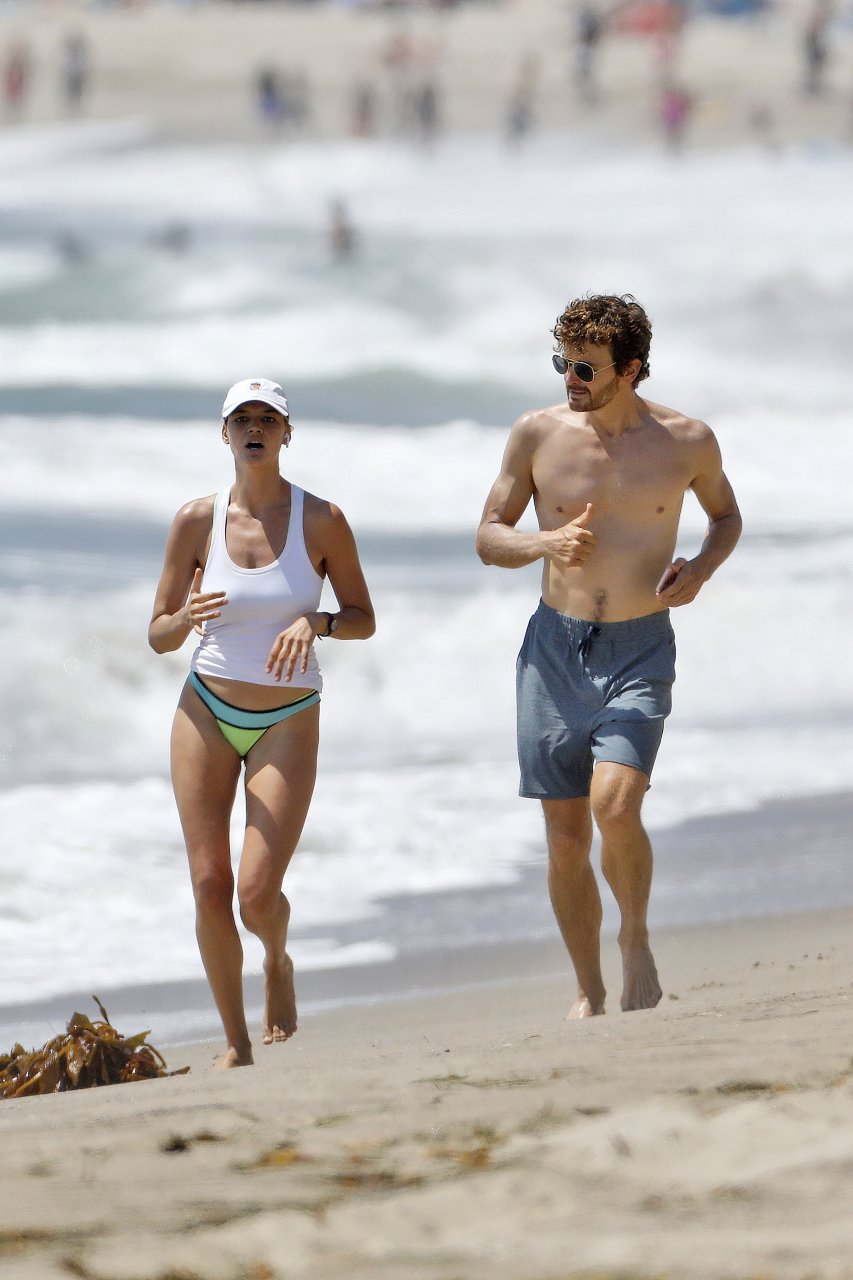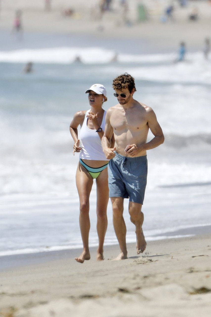 L’actrice et mannequin américaine Kelly Rohrbach (28 ans) emmène son petit ami Steuart Walton courir et prend une douche sexy en bikini sur la plage de Malibu, Californie, le 01/08/2018.