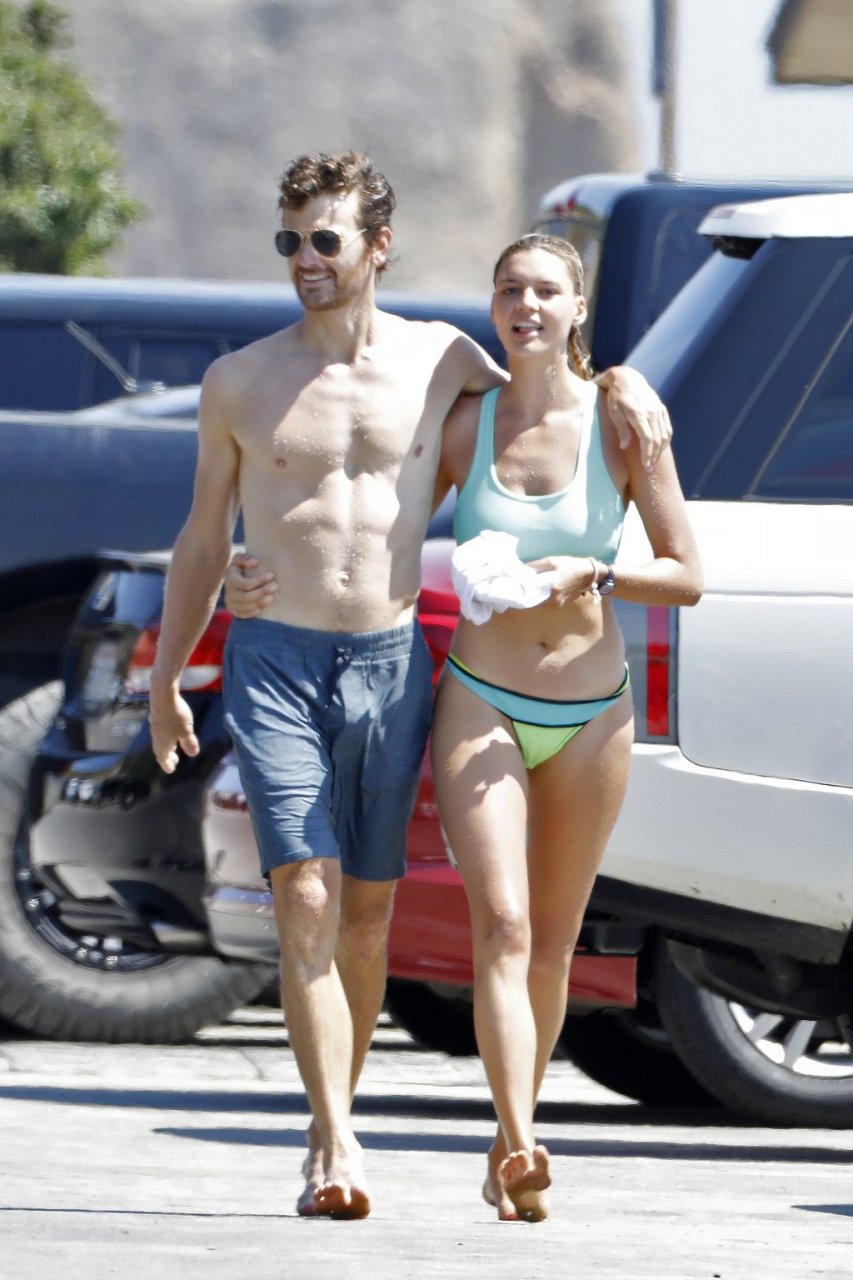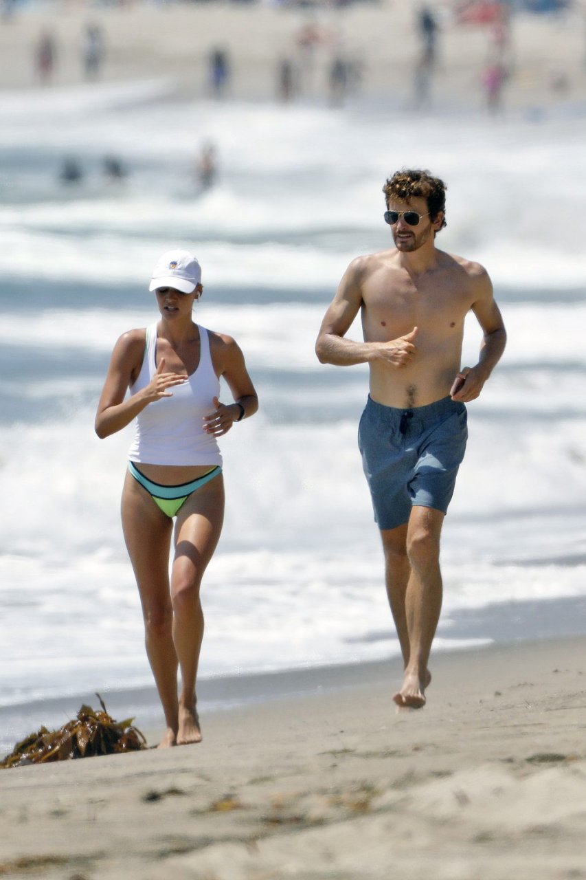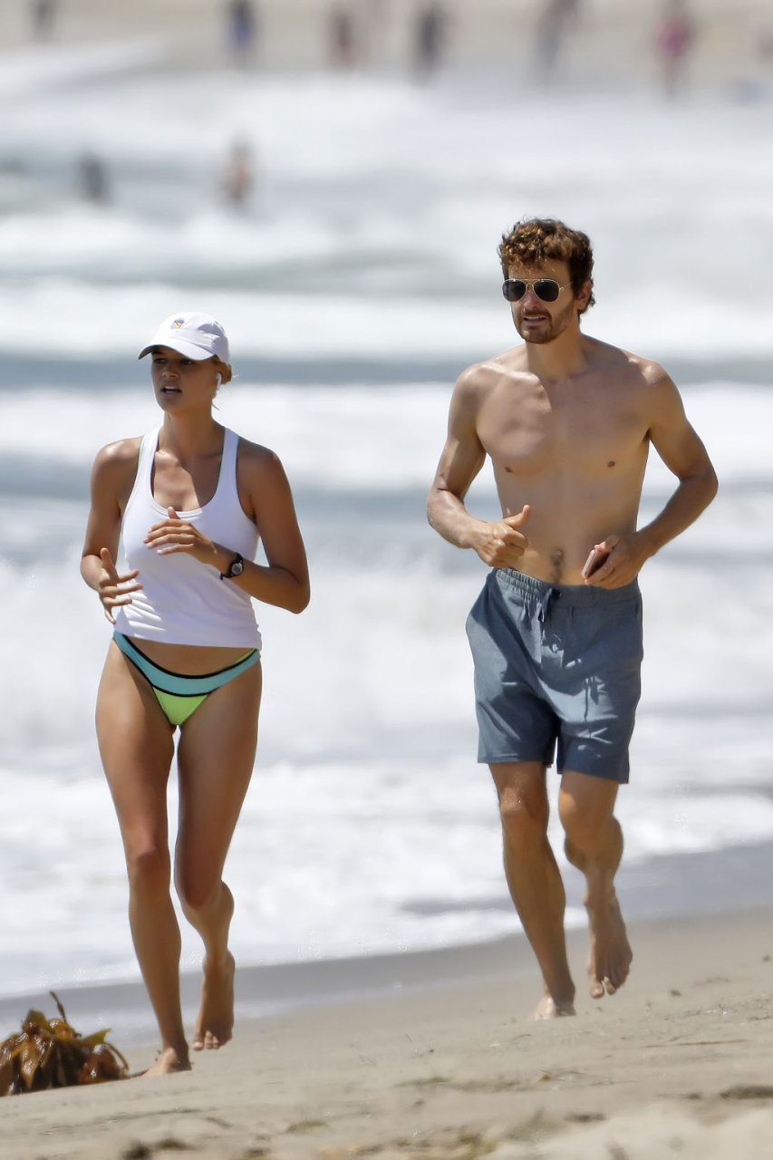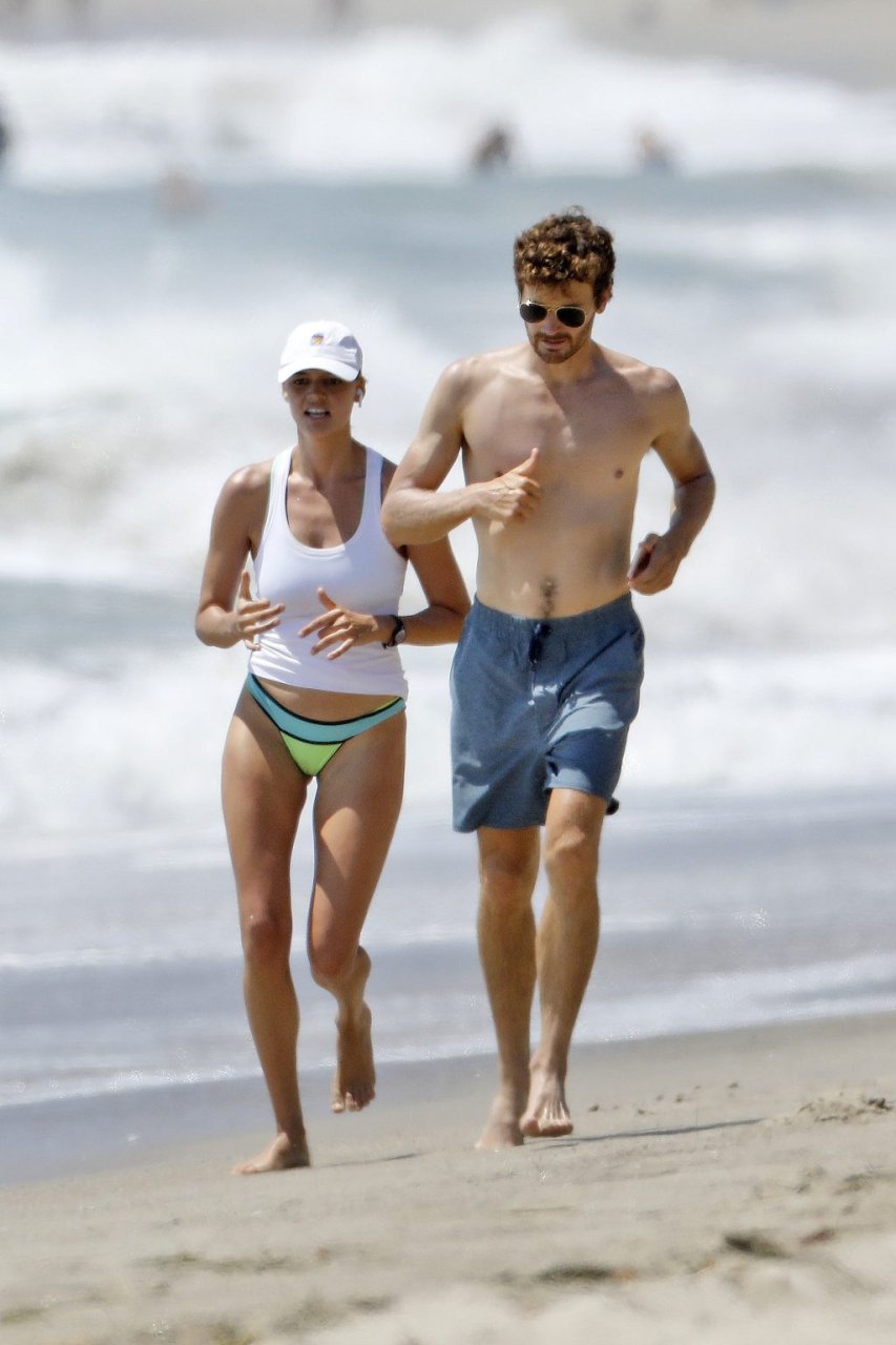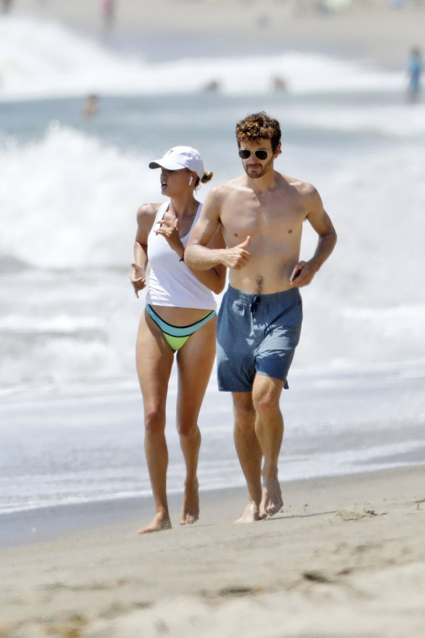 L’actrice et mannequin américaine Kelly Rohrbach (28 ans) emmène son petit ami Steuart Walton courir et prend une douche sexy en bikini sur la plage de Malibu, Californie, le 01/08/2018.