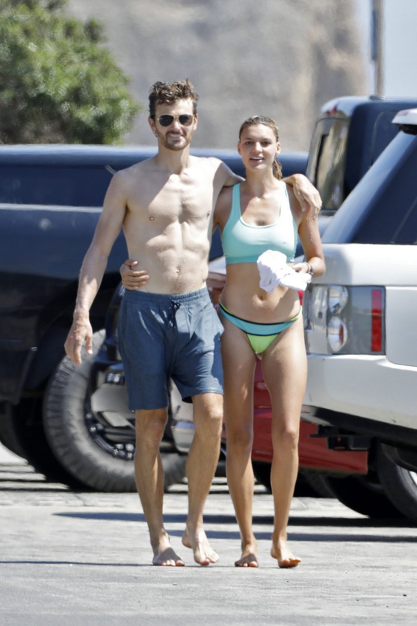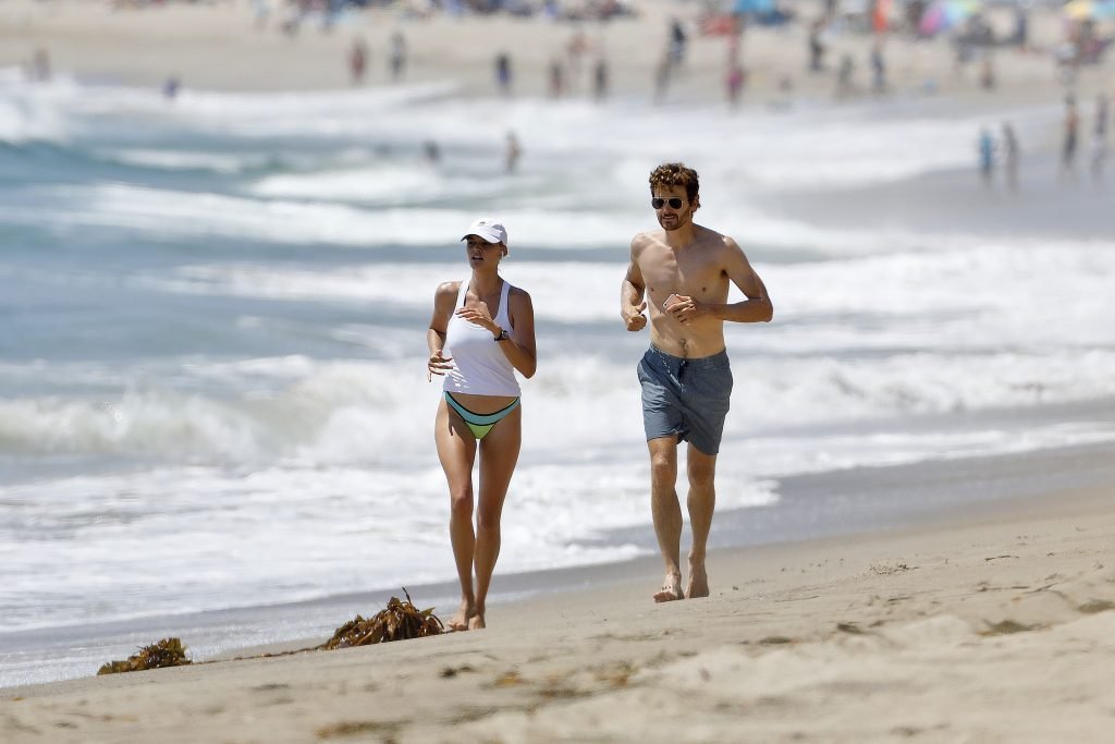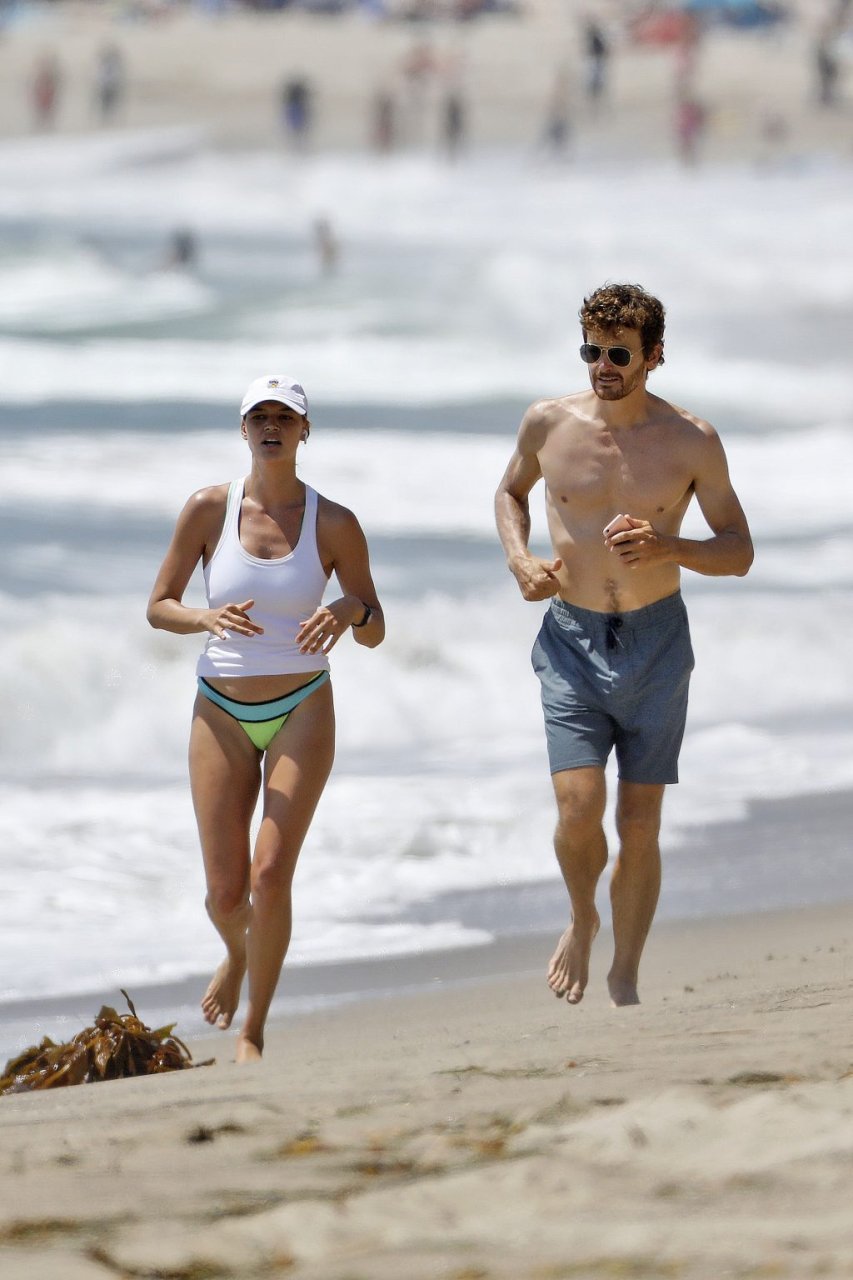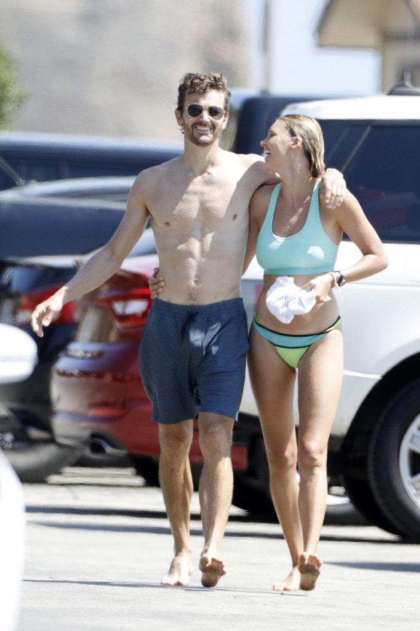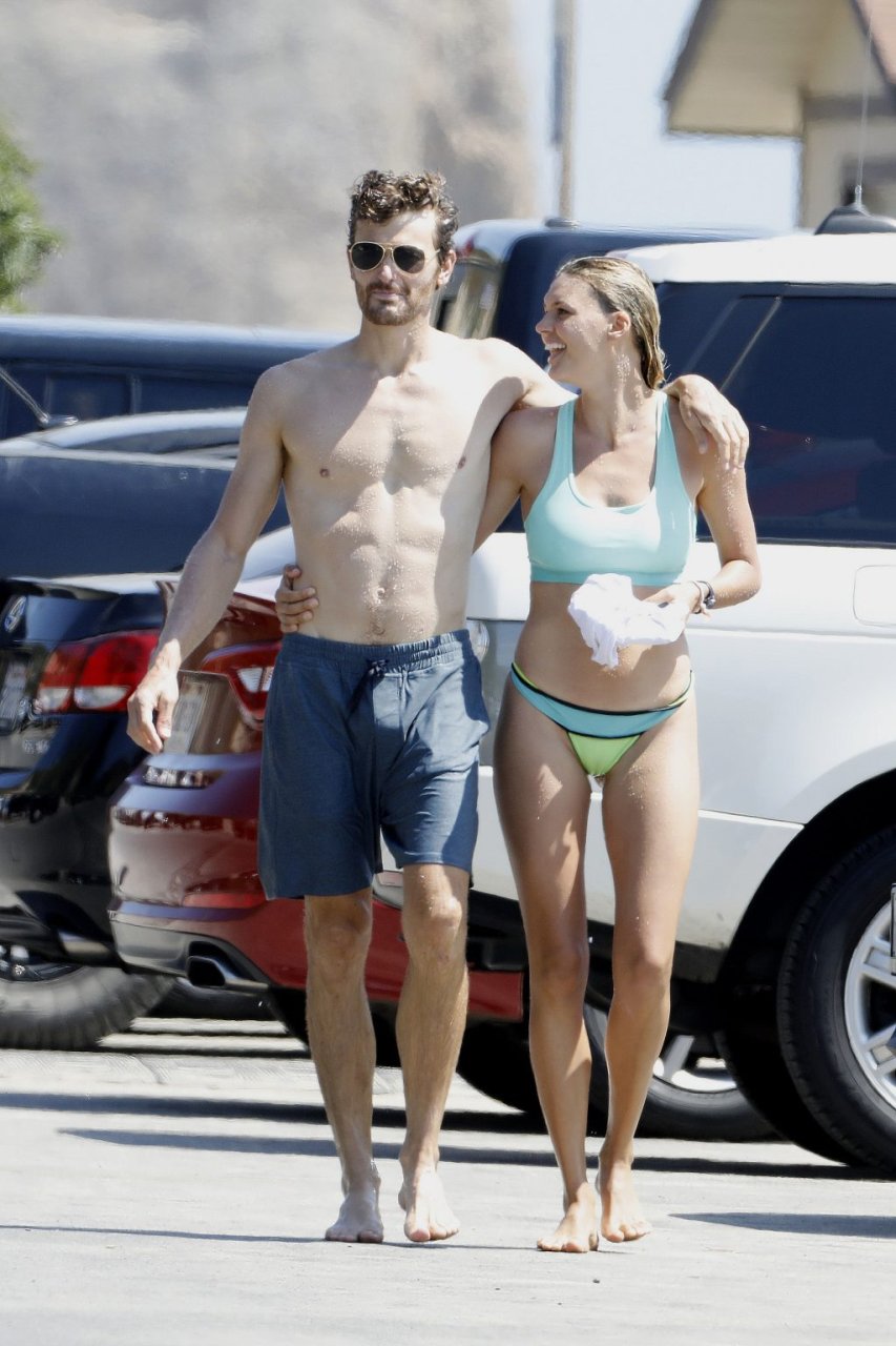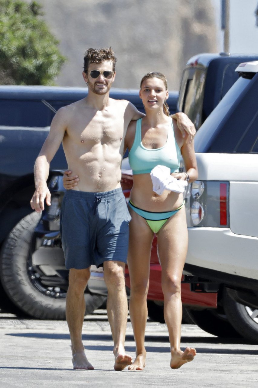 L’actrice et mannequin américaine Kelly Rohrbach (28 ans) emmène son petit ami Steuart Walton courir et prend une douche sexy en bikini sur la plage de Malibu, Californie, le 01/08/2018.