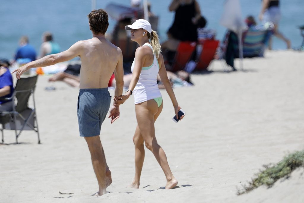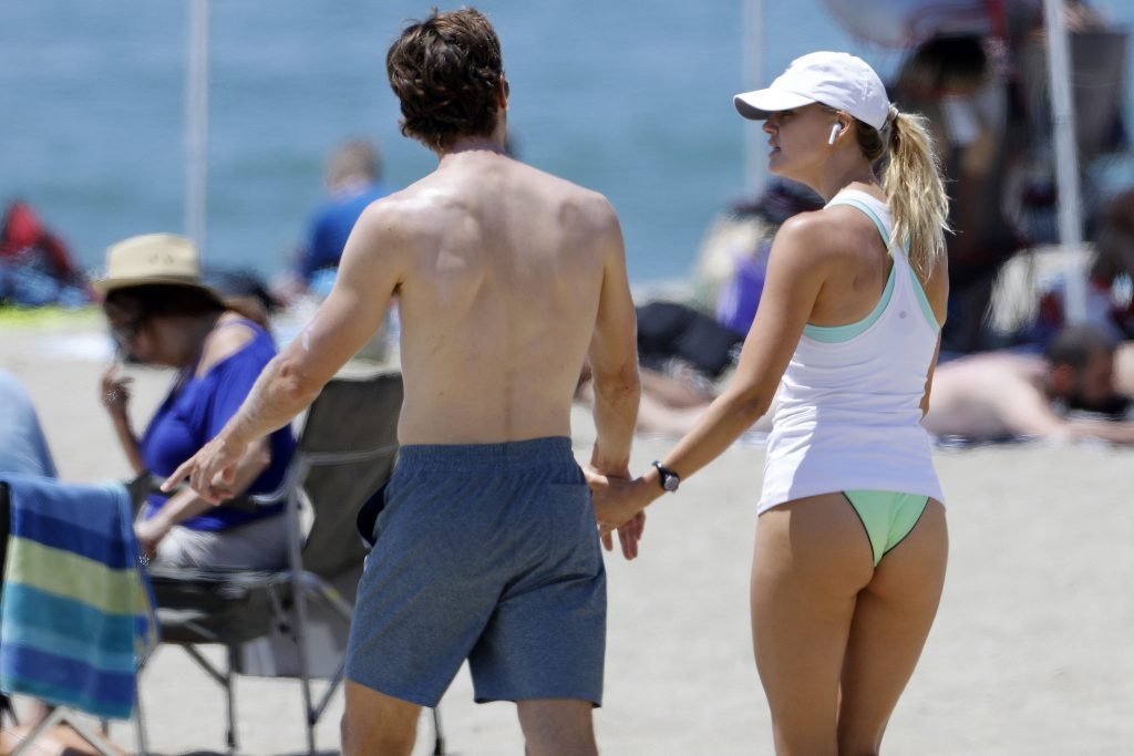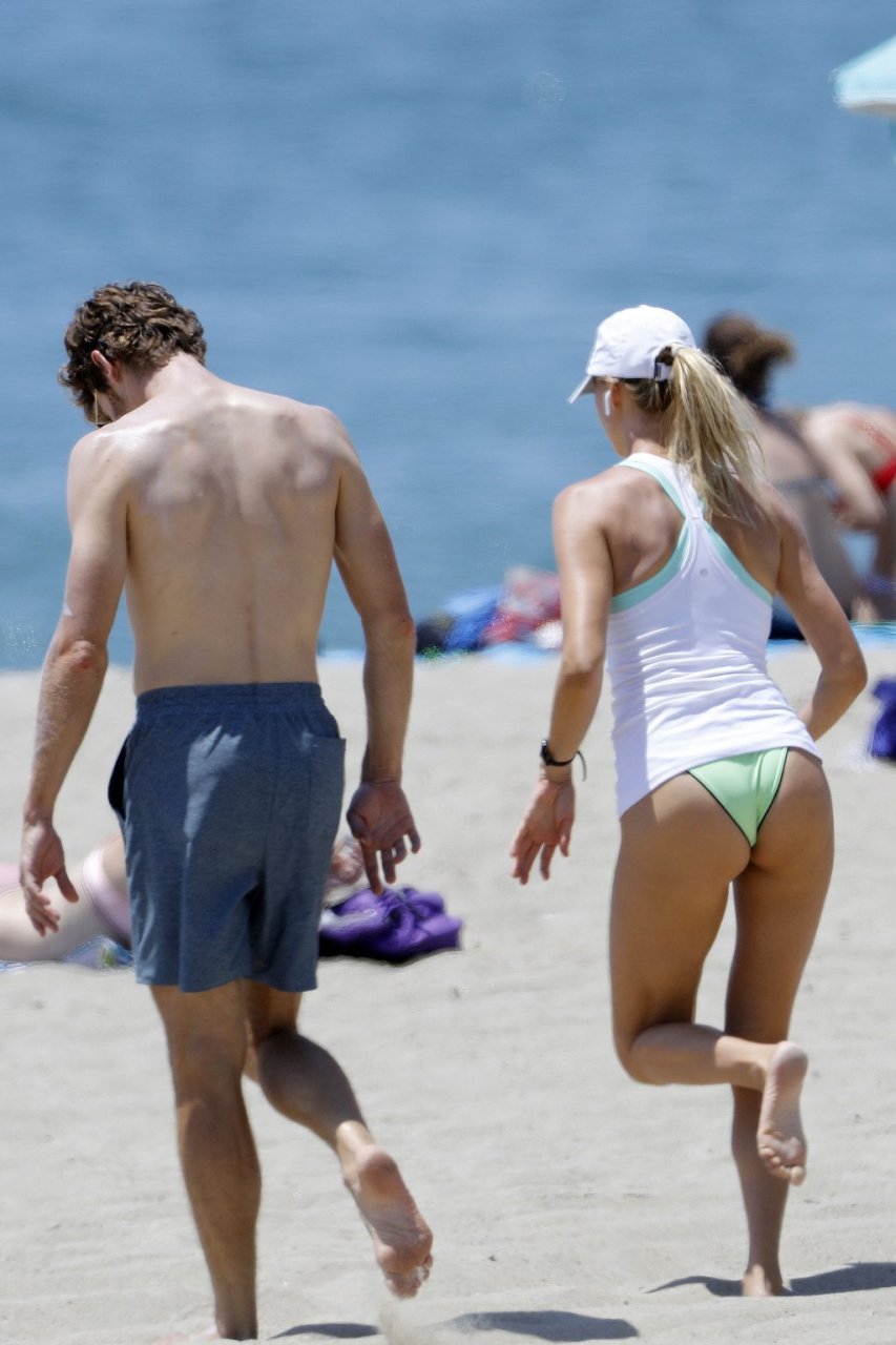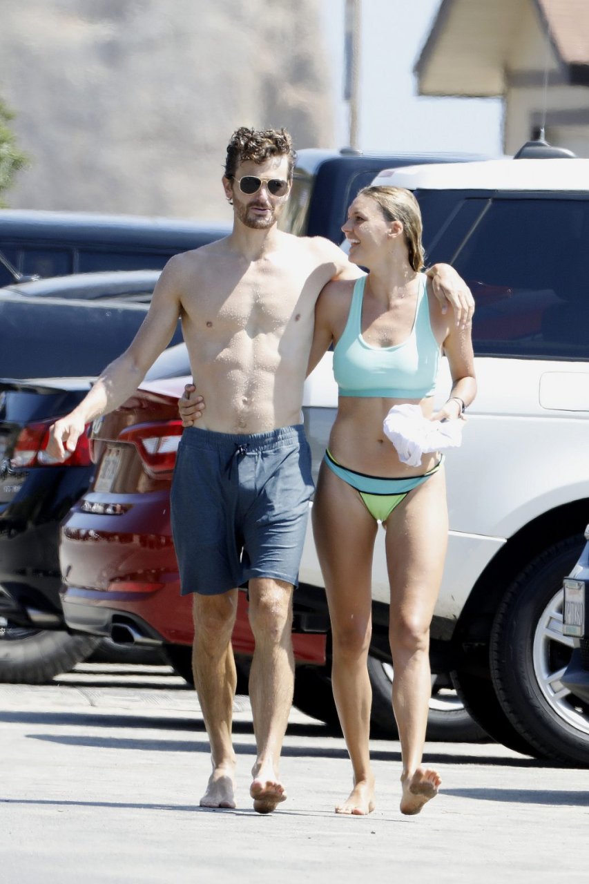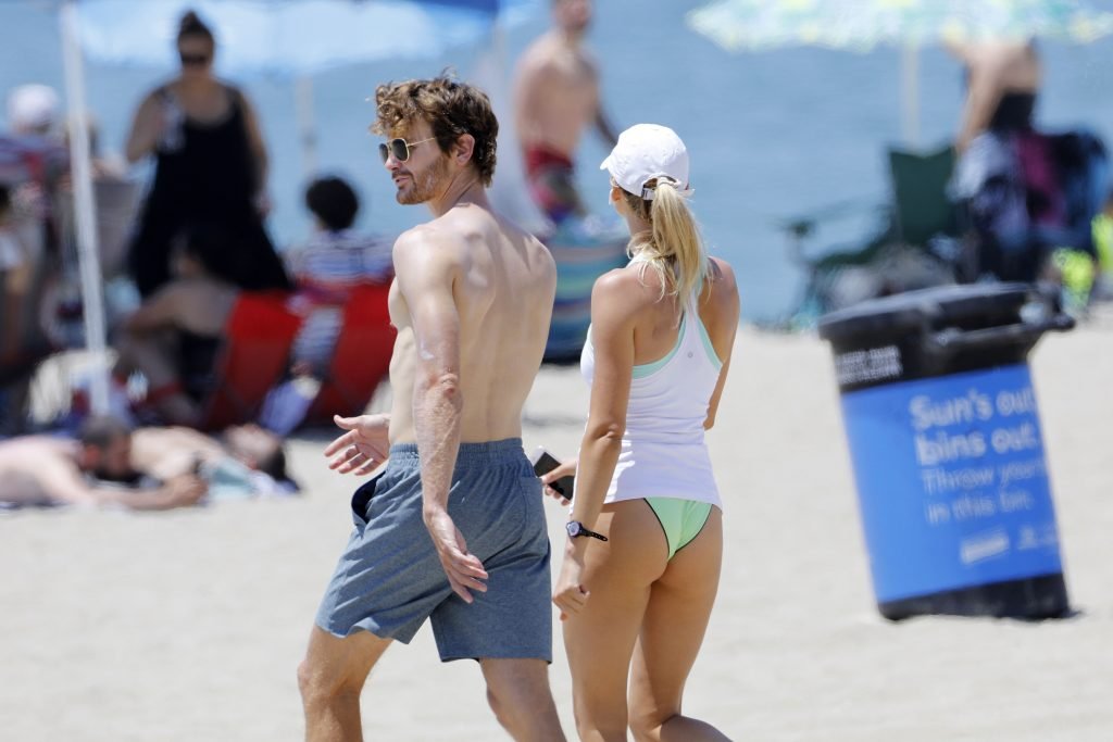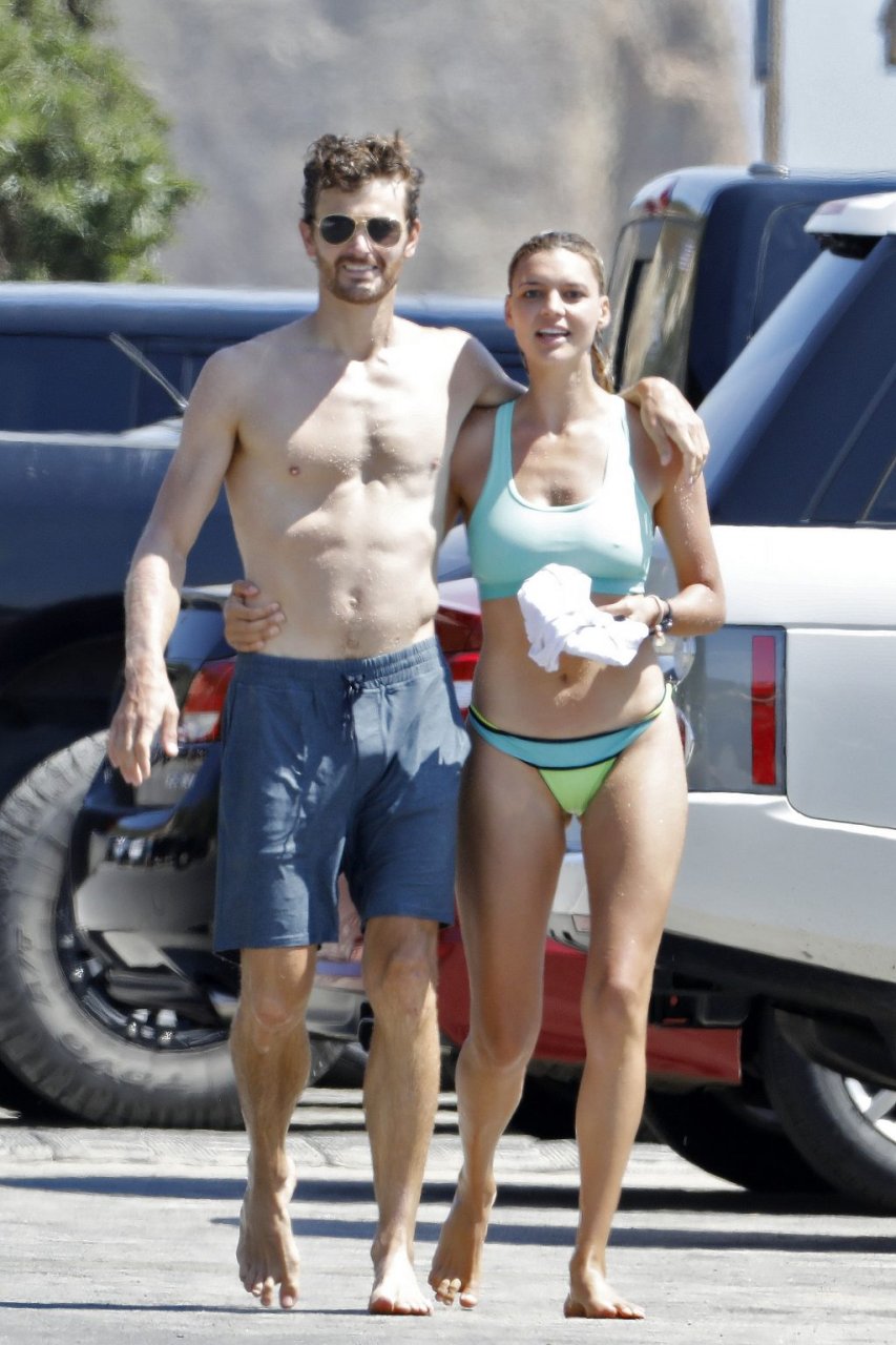 L’actrice et mannequin américaine Kelly Rohrbach (28 ans) emmène son petit ami Steuart Walton courir et prend une douche sexy en bikini sur la plage de Malibu, Californie, le 01/08/2018.