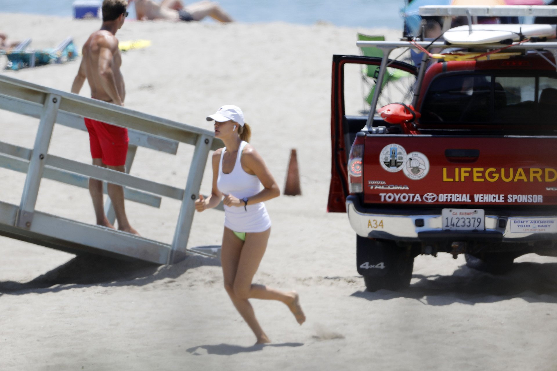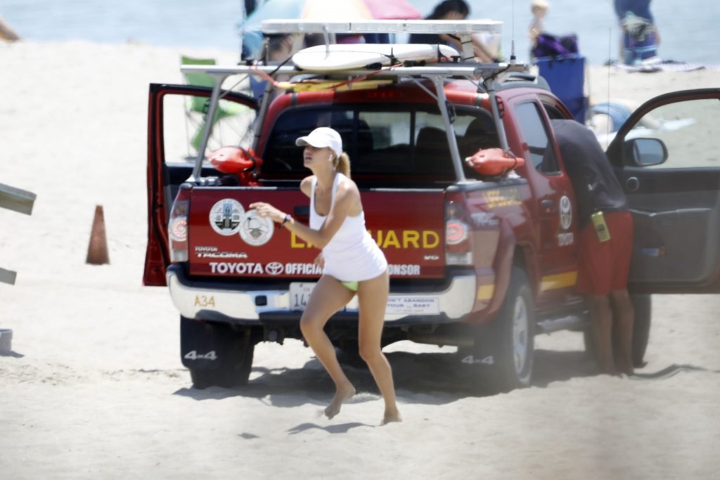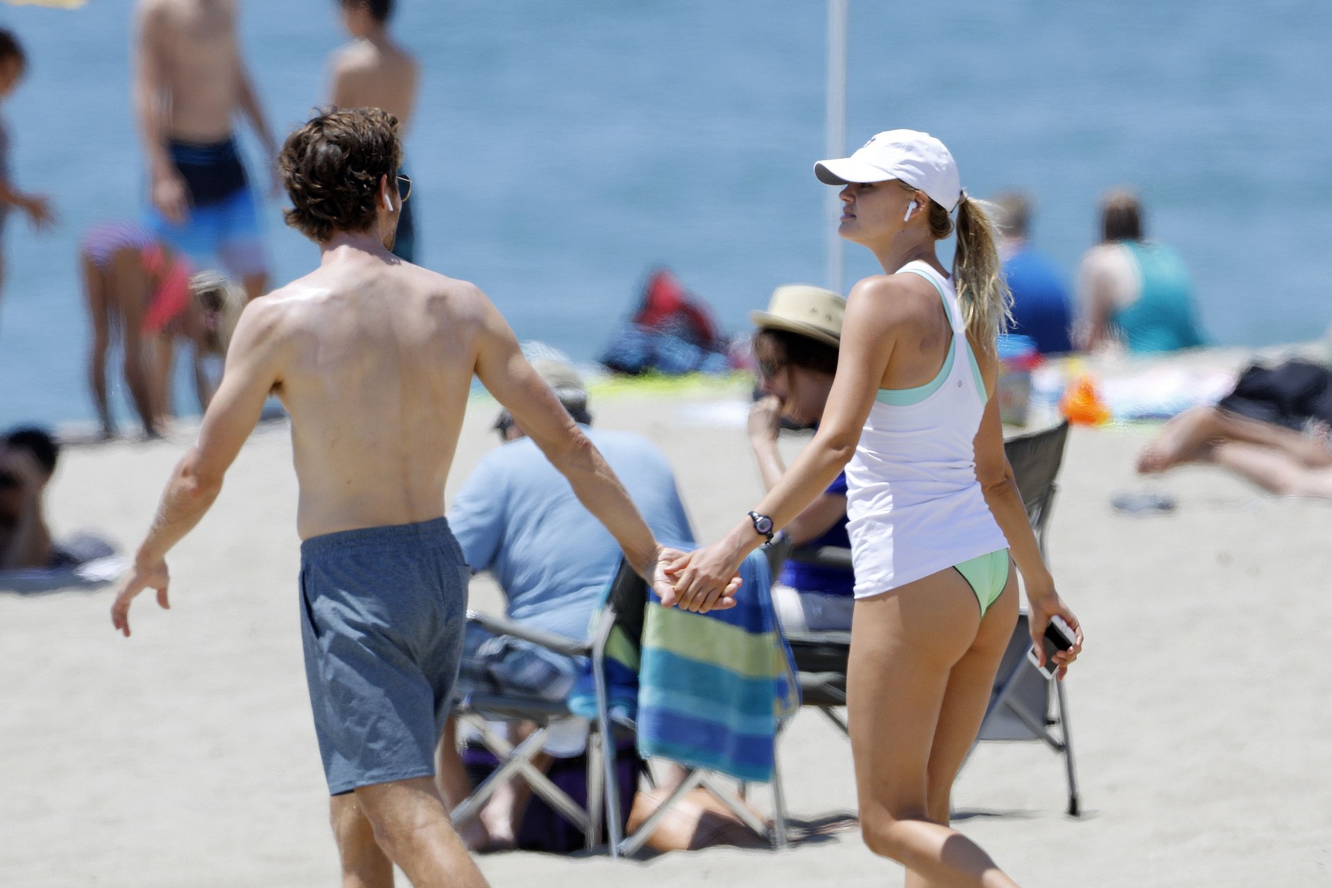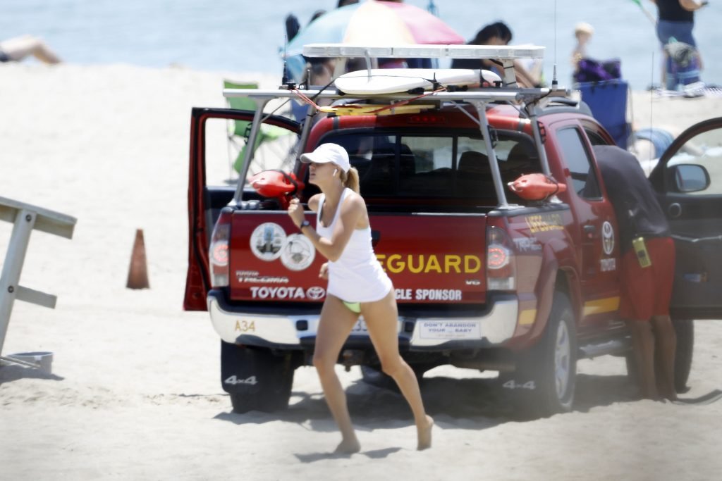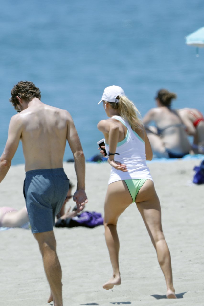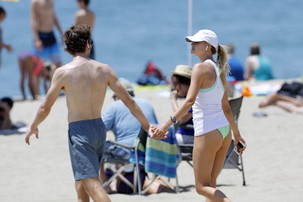L’actrice et mannequin américaine Kelly Rohrbach (28 ans) emmène son petit ami Steuart Walton courir et prend une douche sexy en bikini sur la plage de Malibu, Californie, le 01/08/2018.
