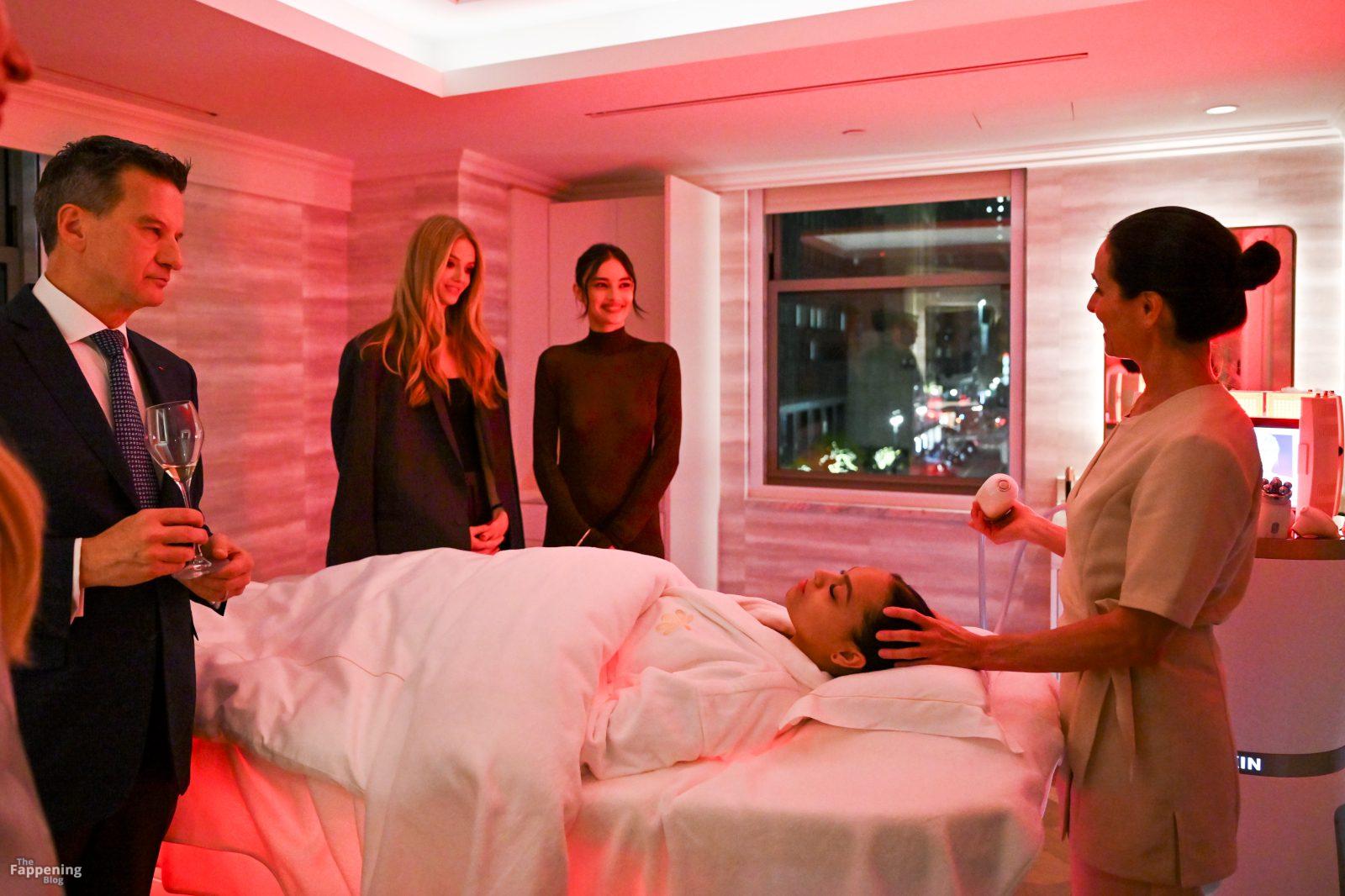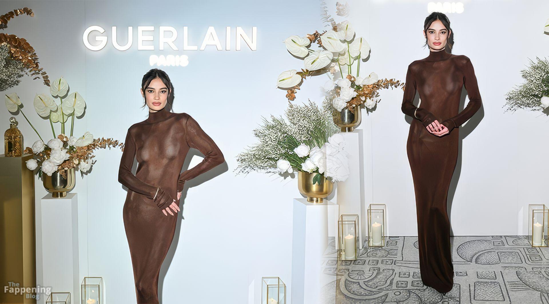 Le mannequin philippino-américain Kelsey Merritt éblouit lors de l’ouverture de Guerlain à New York avec une robe marron transparente.