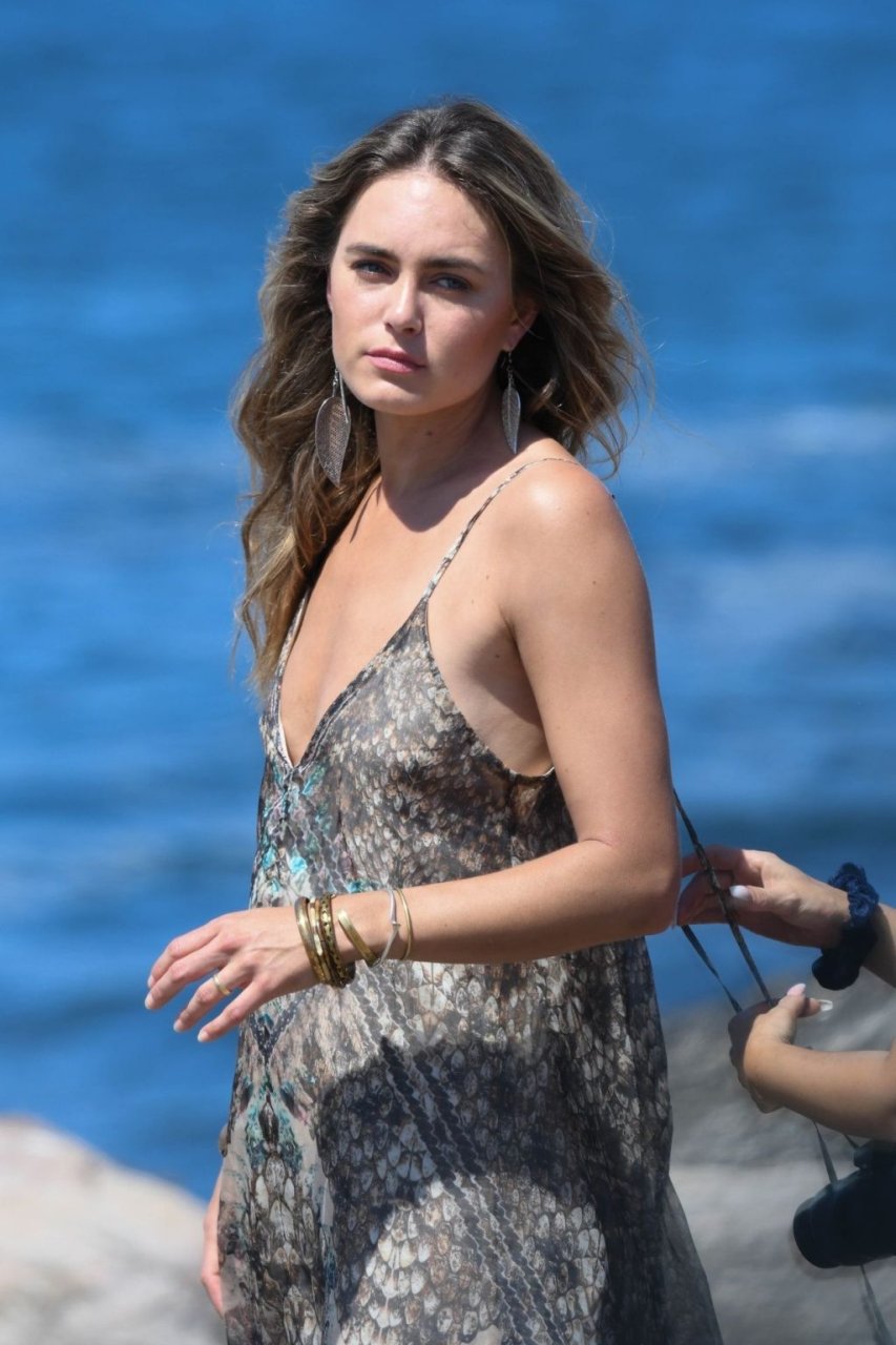 L’ex-petite amie de Leonardo DiCaprio, Kendal Schuler, présente plusieurs tenues lors d’une séance photo de mode sur une plage de Sydney le 23 octobre 2019, subissant de nombreuses défaillances de garde-robe au cours du processus, ce qui a conduit le mannequin à montrer un peu plus que prévu !