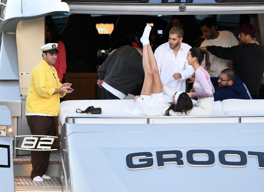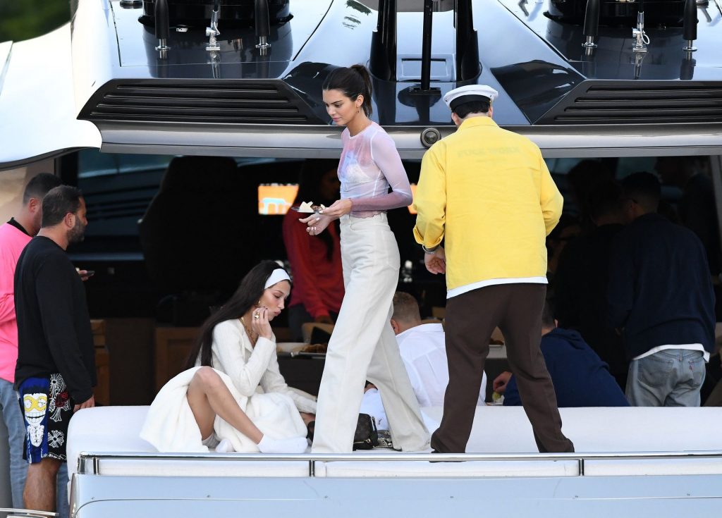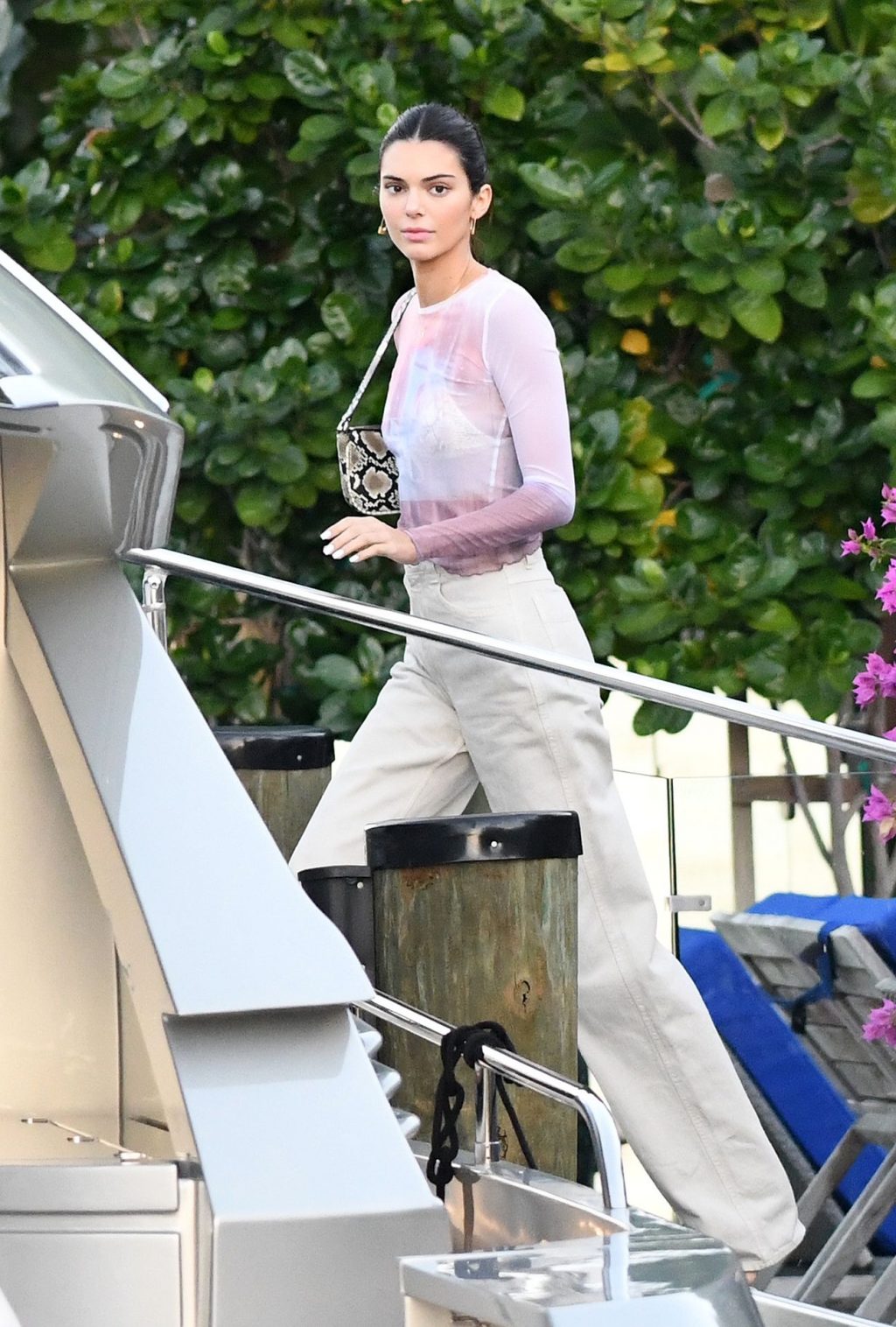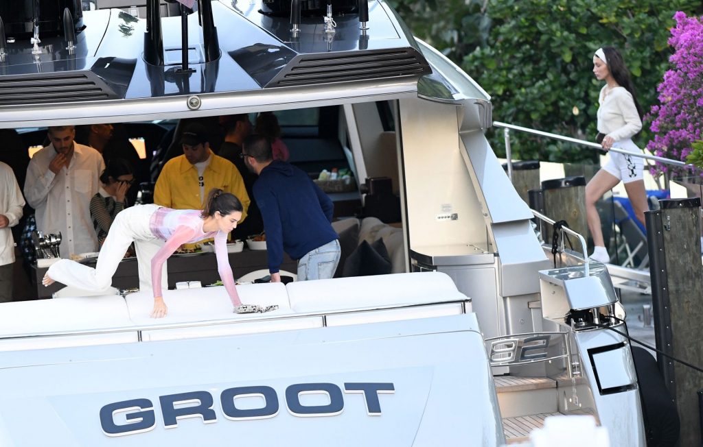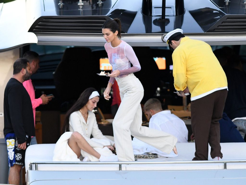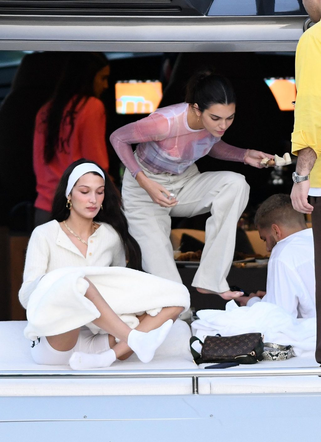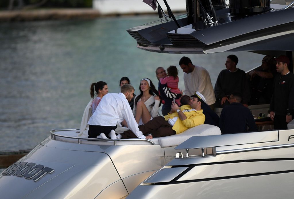 Kendall Jenner, Bella Hadid, Kourtney Kardashian font une croisière au coucher du soleil sur le yacht de Dave Grutman pendant la semaine d’Art Basel à Miami Beach, Floride, 12/04/2019.