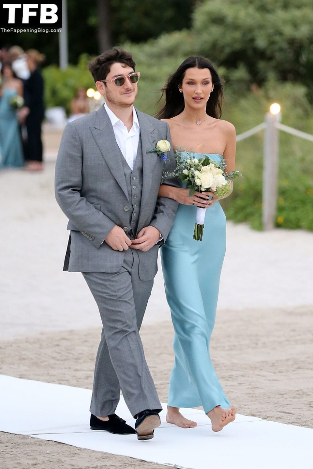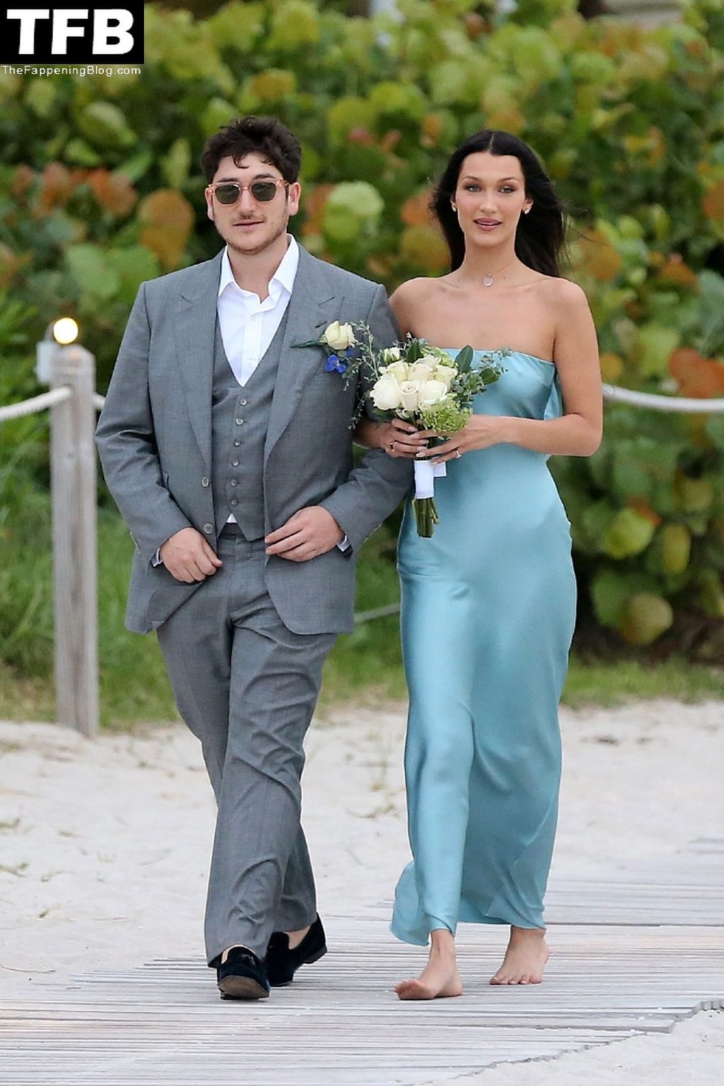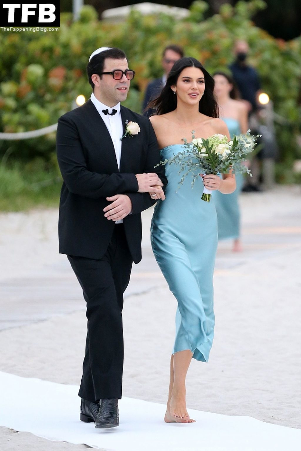Les mannequins Kendall Jenner et Bella Hadid rayonnent en tant que demoiselles d’honneur pieds nus lors d’un mariage sur la plage à Miami tandis que Hailey Bieber assiste à l’événement sans cavalier.