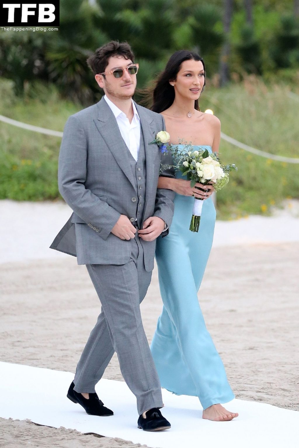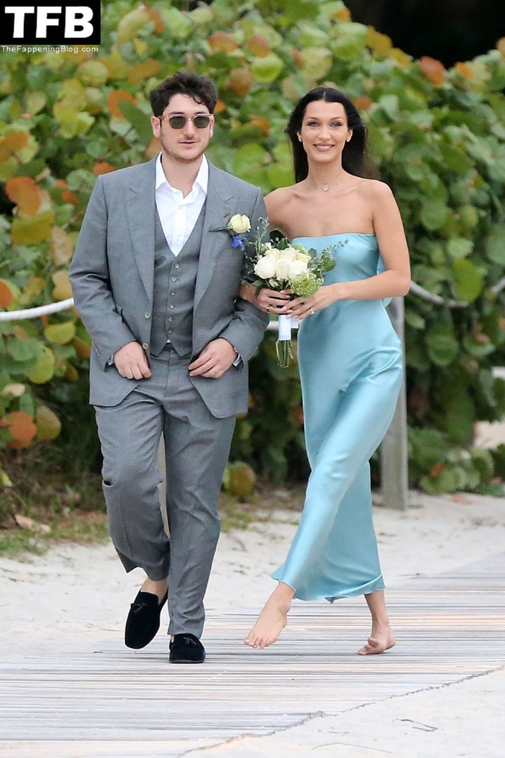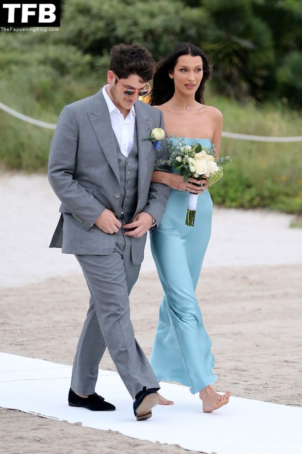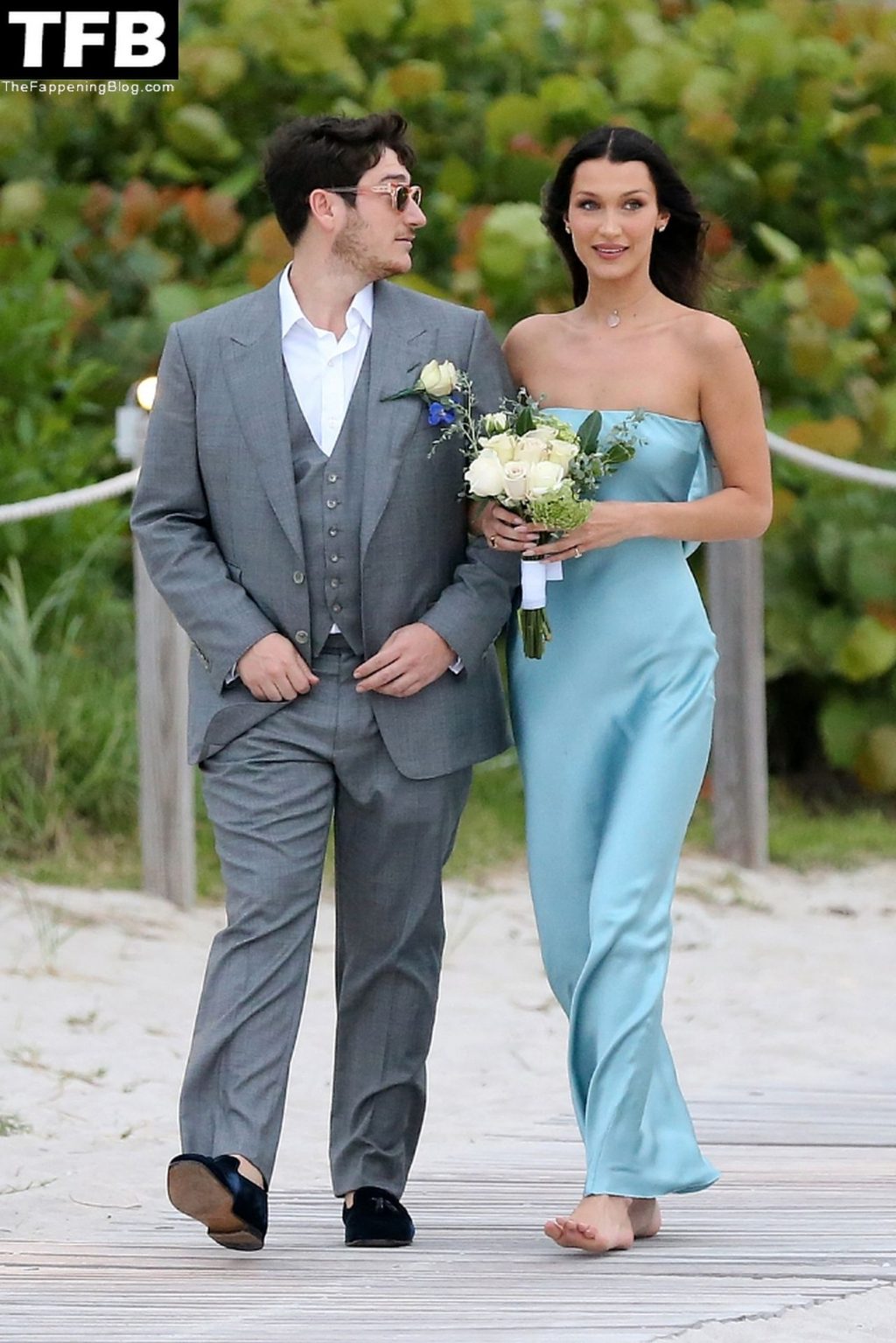 Les mannequins Kendall Jenner et Bella Hadid rayonnent en tant que demoiselles d’honneur pieds nus lors d’un mariage sur la plage à Miami tandis que Hailey Bieber assiste à l’événement sans cavalier.