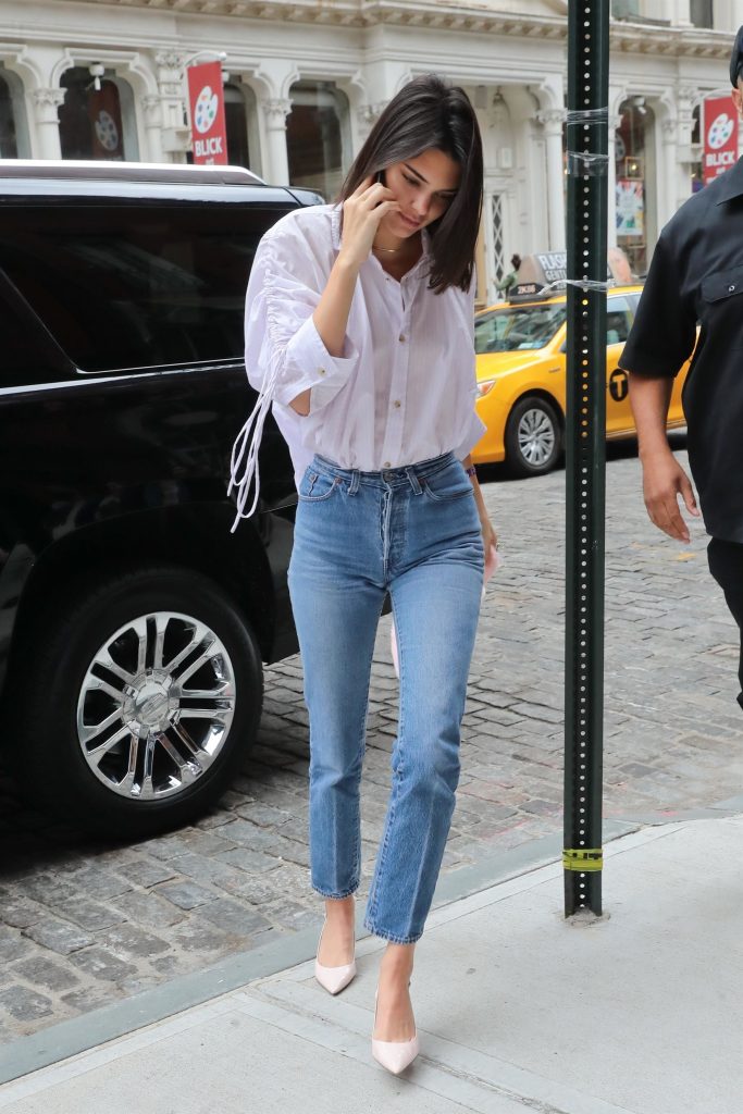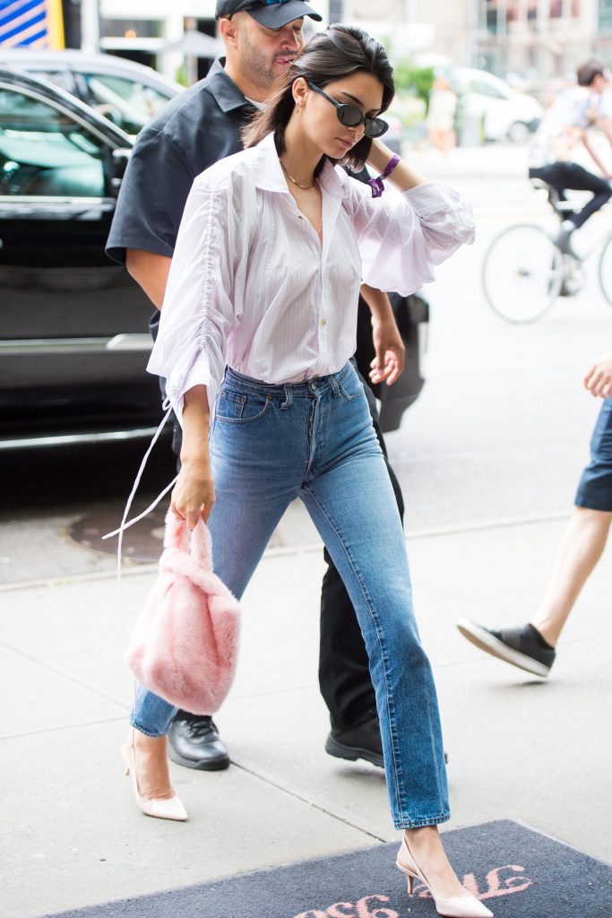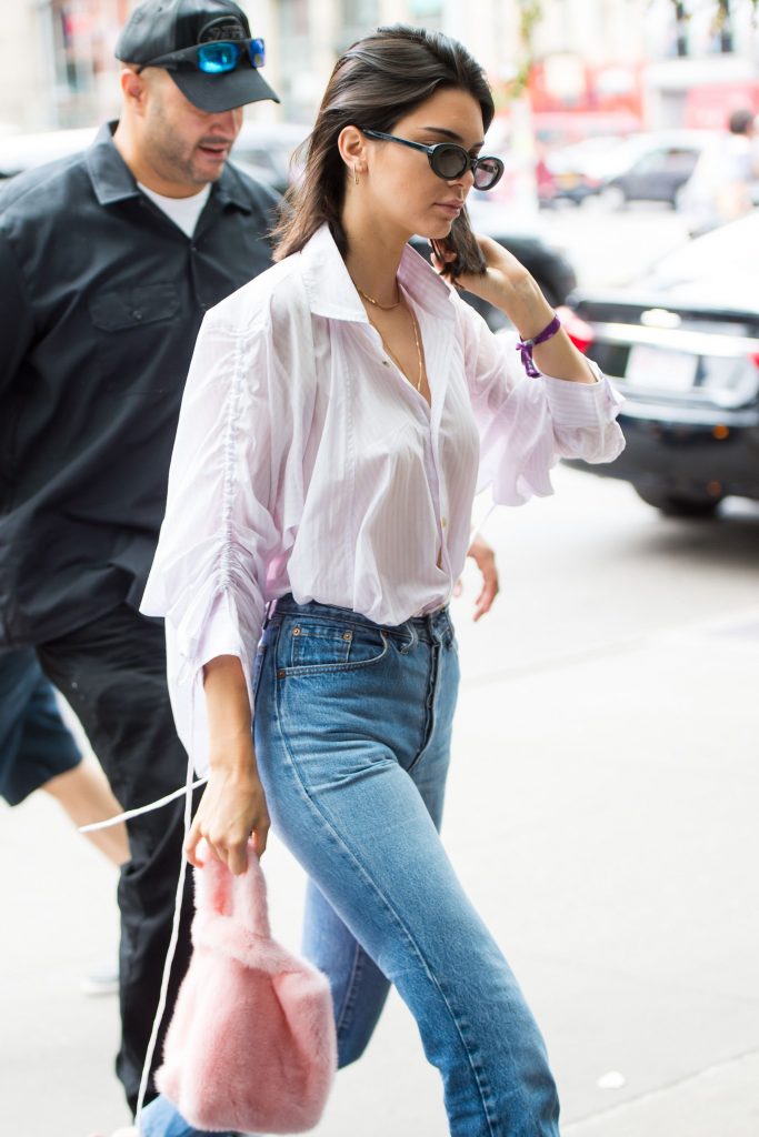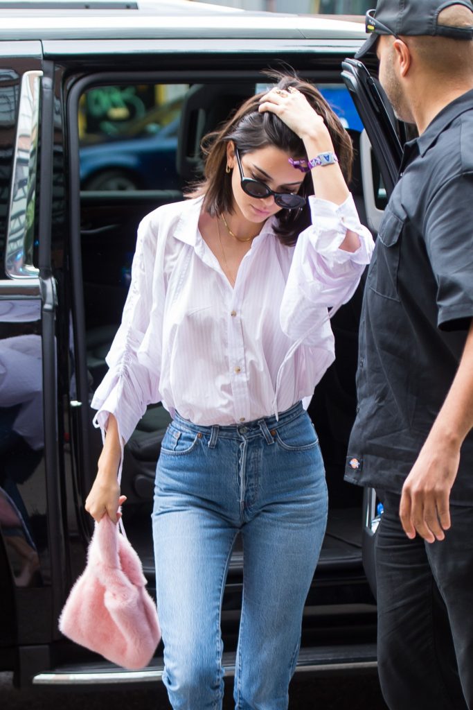 Mannequin sans soutien-gorge Kendall Jenner avec Hailey Baldwin aperçues dans les rues de New York, 29/07/2017.