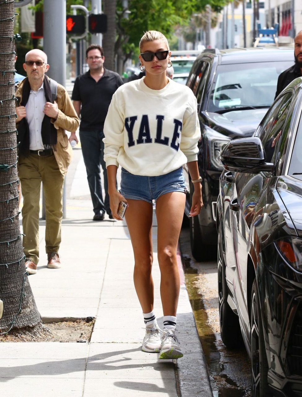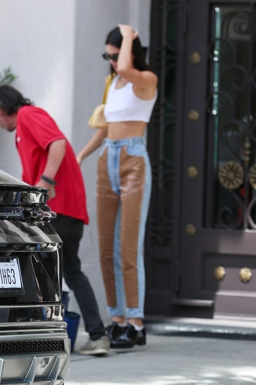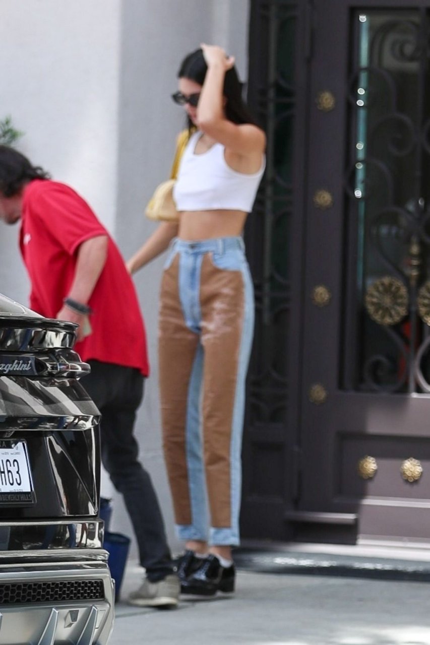 Kendall Jenner sans soutien-gorge offre un spectacle saisissant alors que le mannequin sexy montre son ventre incroyablement tonique en faisant du shopping avec Hailey Bieber (Baldwin) à Beverly Hills, 11/06/2019. Hailey a exhibé ses jambes toniques dans une paire de shorts en denim très courts.