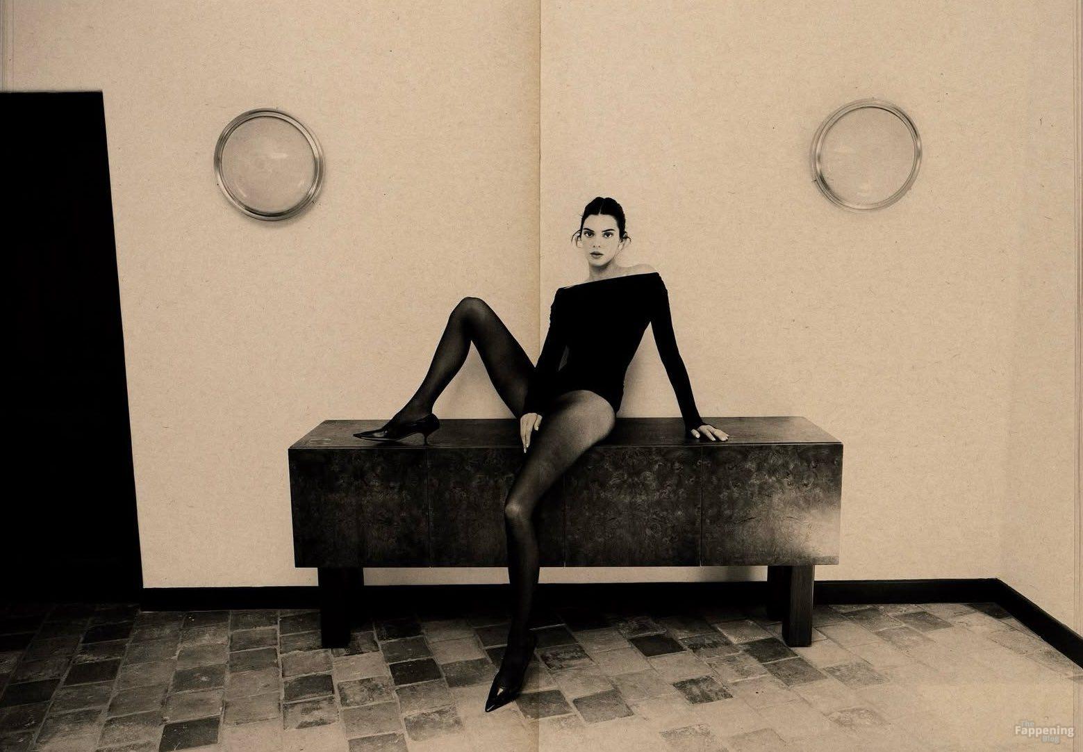Le mannequin Kendall Jenner s’est déshabillée pour ne porter que des collants en dentelle et de la lingerie, mettant en valeur ses jambes et ses fesses lors du shooting Calzedonia d’octobre 2025 de Kat Irlin.