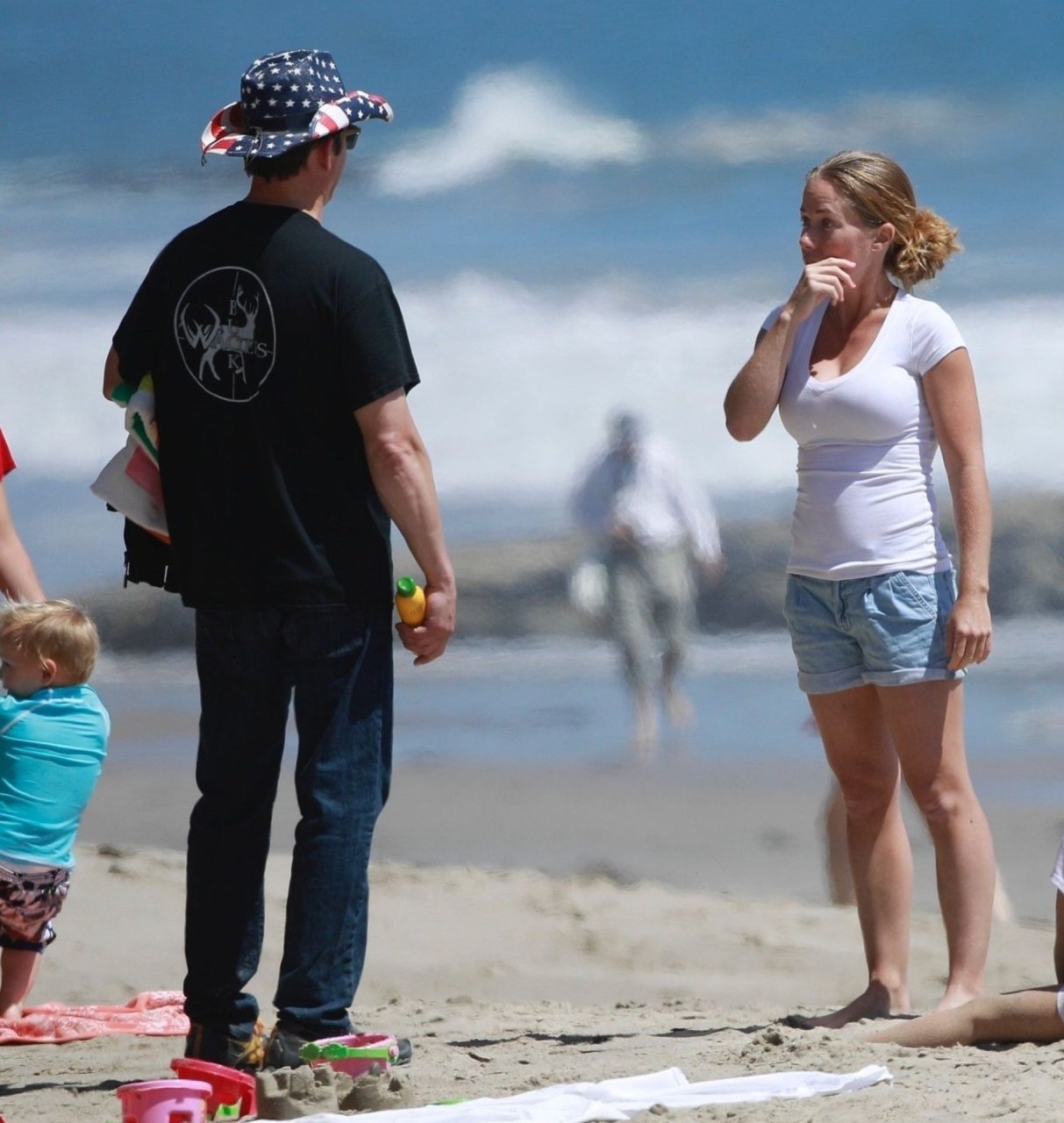 Kendra Wilkinson emmène ses enfants, Alijah Mary Baskett et Hank Baskett IV, à la plage de Santa Monica alors que le temps commence à se réchauffer dans le sud de la Californie, 18/04/2019. L’ancienne mannequin voluptueuse et personnalité de la télévision s’amuse dans le sable aux côtés de ses enfants.
