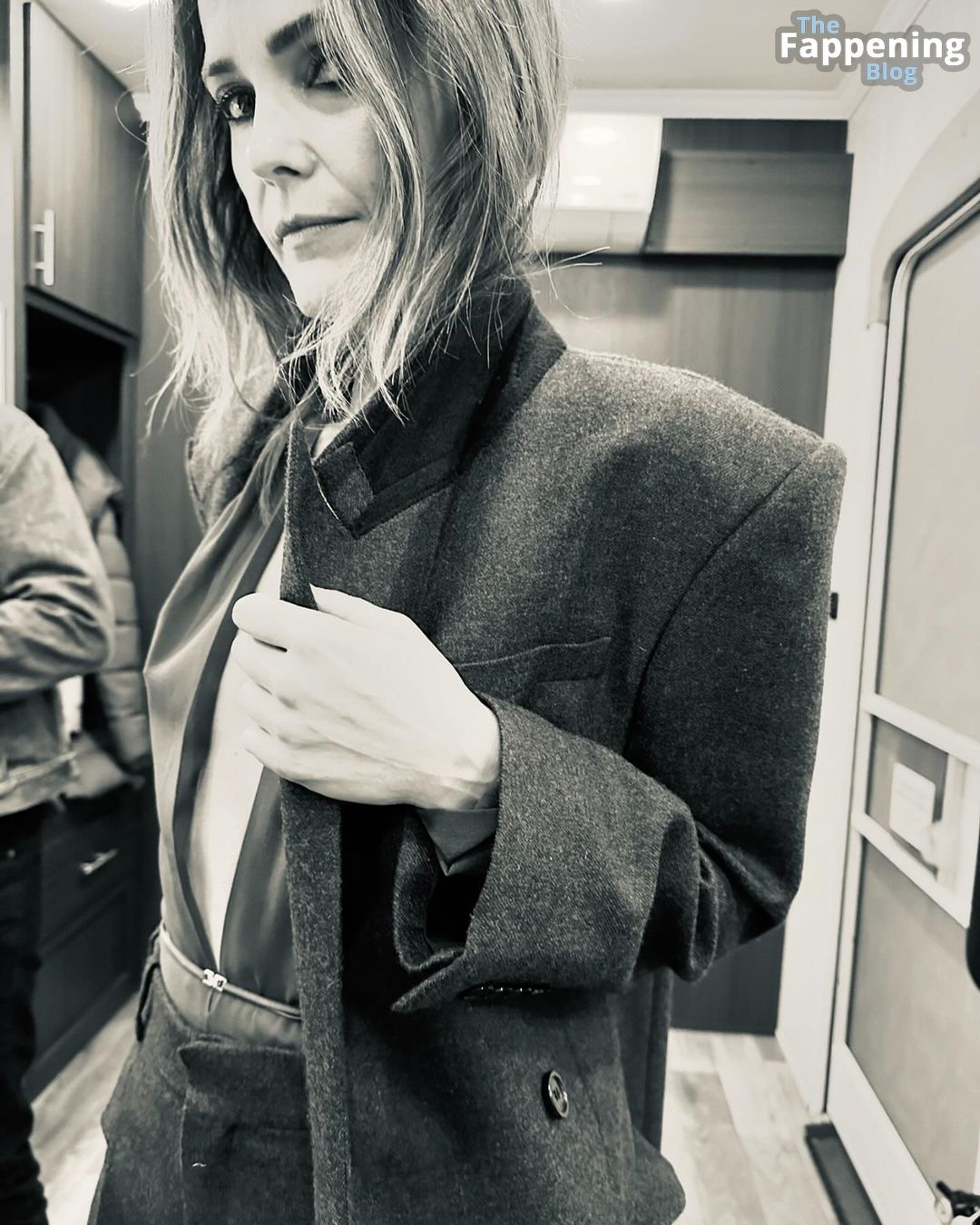 Keri Russell sans soutien-gorge, exhibant ses seins et tétons nus bien visibles dans un haut noir sexy et transparent alors qu’elle se prépare pour le Late Night.