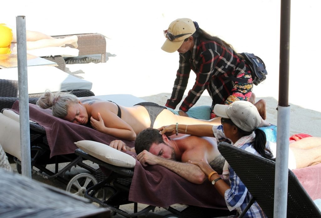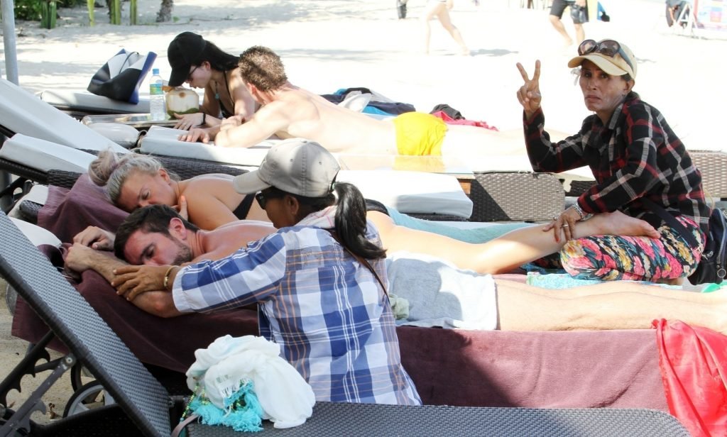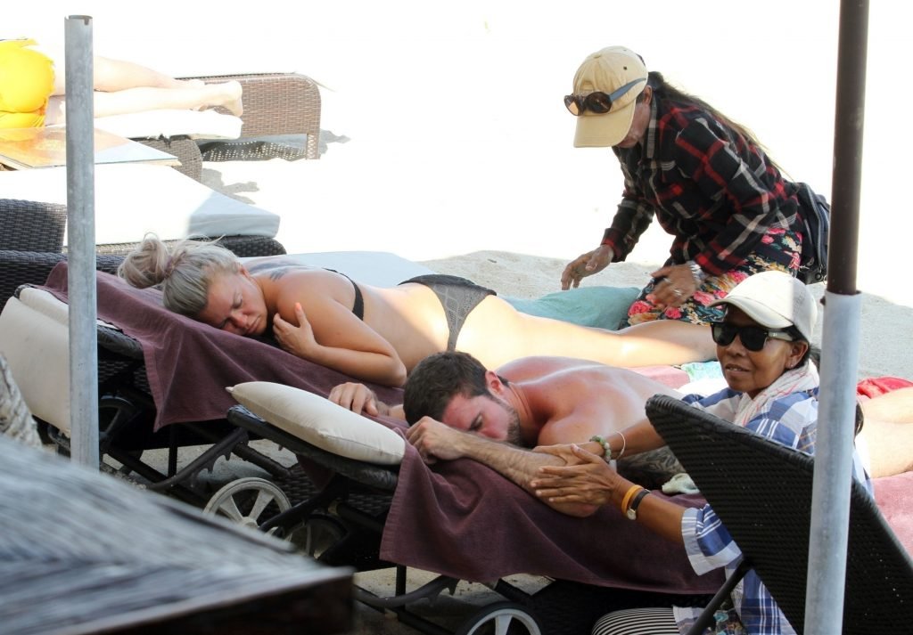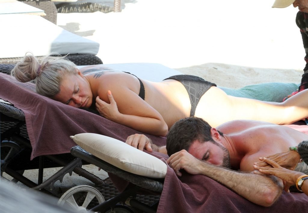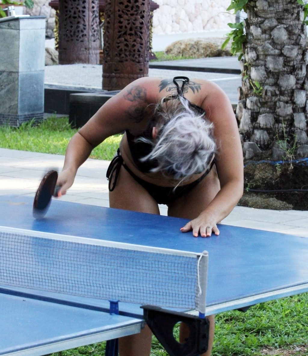 L’ancienne star des “Atomic Kitten” Kerry Katona (38 ans) profite d’une partie de ping-pong avec son beau gosse en Thaïlande avant leur récente séparation, le 20/10/2018.