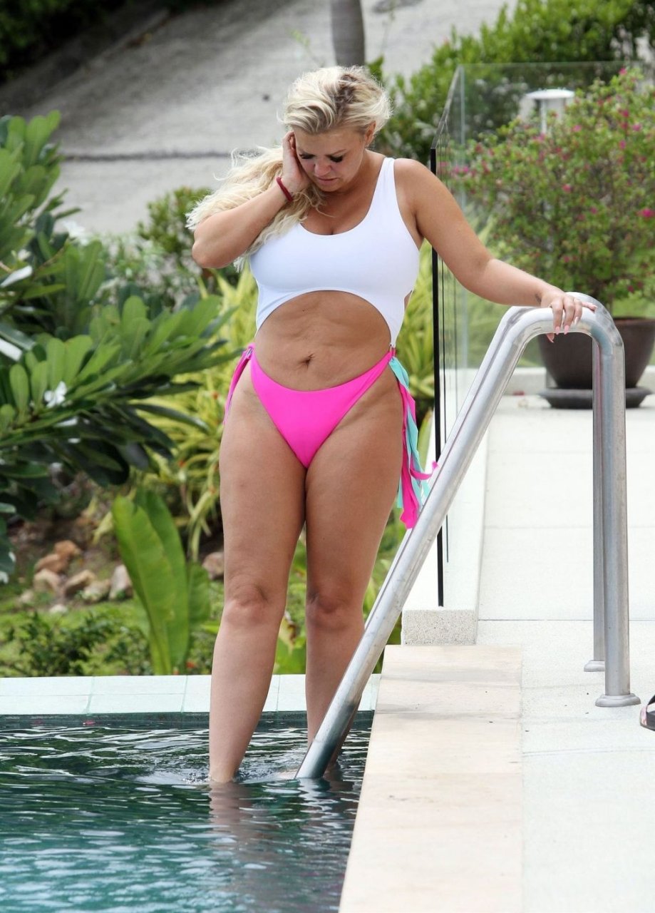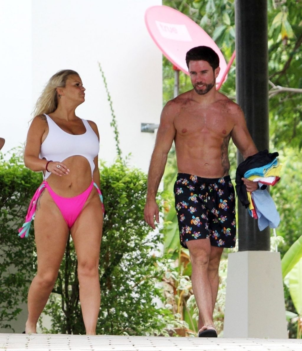 Après toutes ces séances d’entraînement intensives des dernières semaines, Kerry a exhibé sa silhouette sensuelle et avait fière allure avec son petit ami, instructeur de fitness, Ryan, qui montrait ses abdominaux. La bombe blonde Kerry semblait dans son élément, profitant d’un peu de repos et de détente sur sa chaise longue en sirotant une boisson, savourant pleinement sa pause en Extrême-Orient.