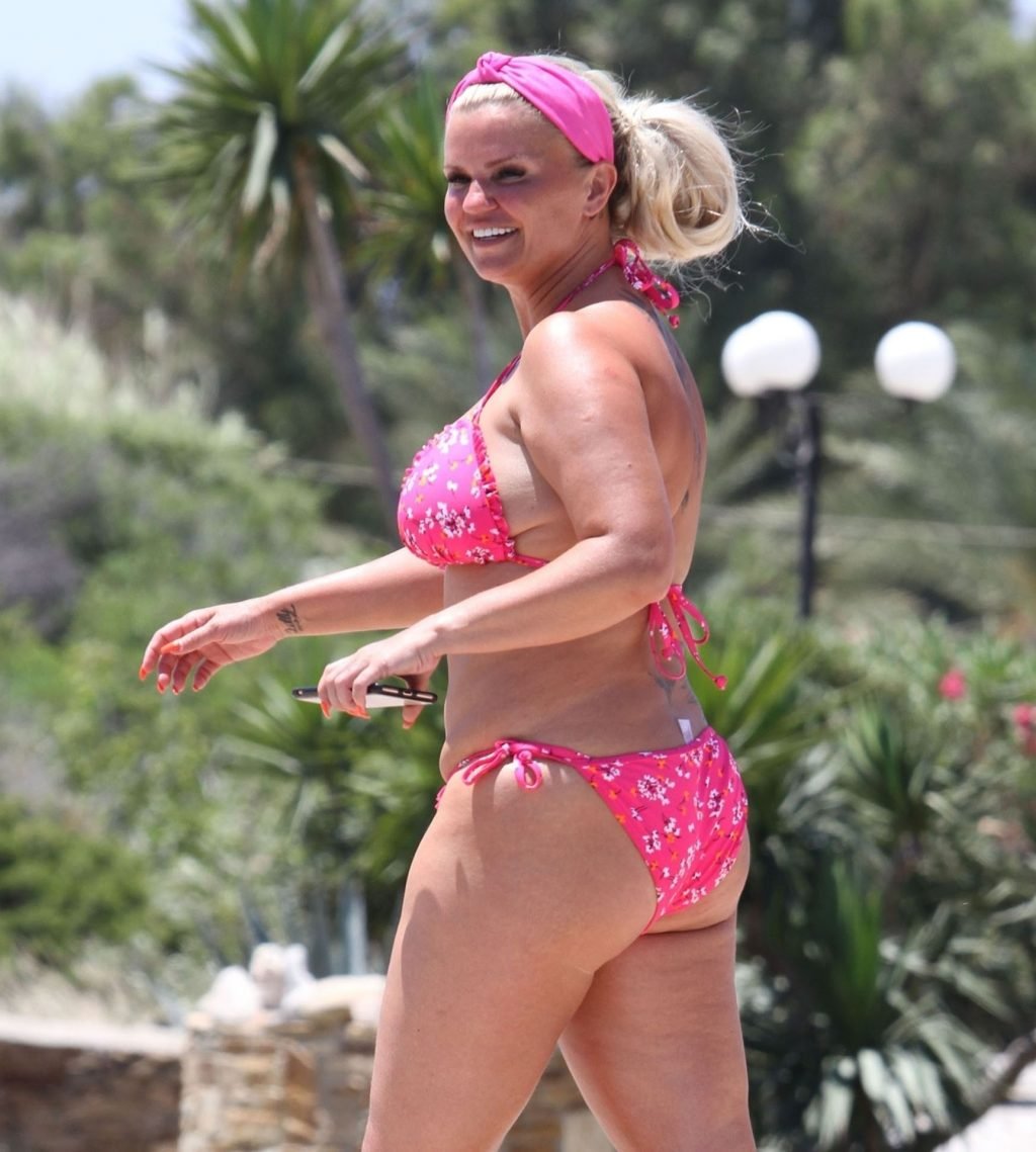 L’ancienne star des “Atomic Kitten” Kerry Katona enlève sa jolie tenue en denim pour révéler un bikini rose sexy mettant en valeur un décolleté généreux – Mykonos, 10/06/2019.