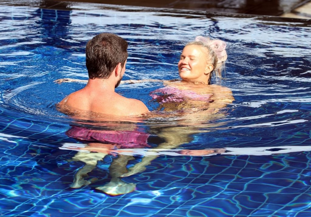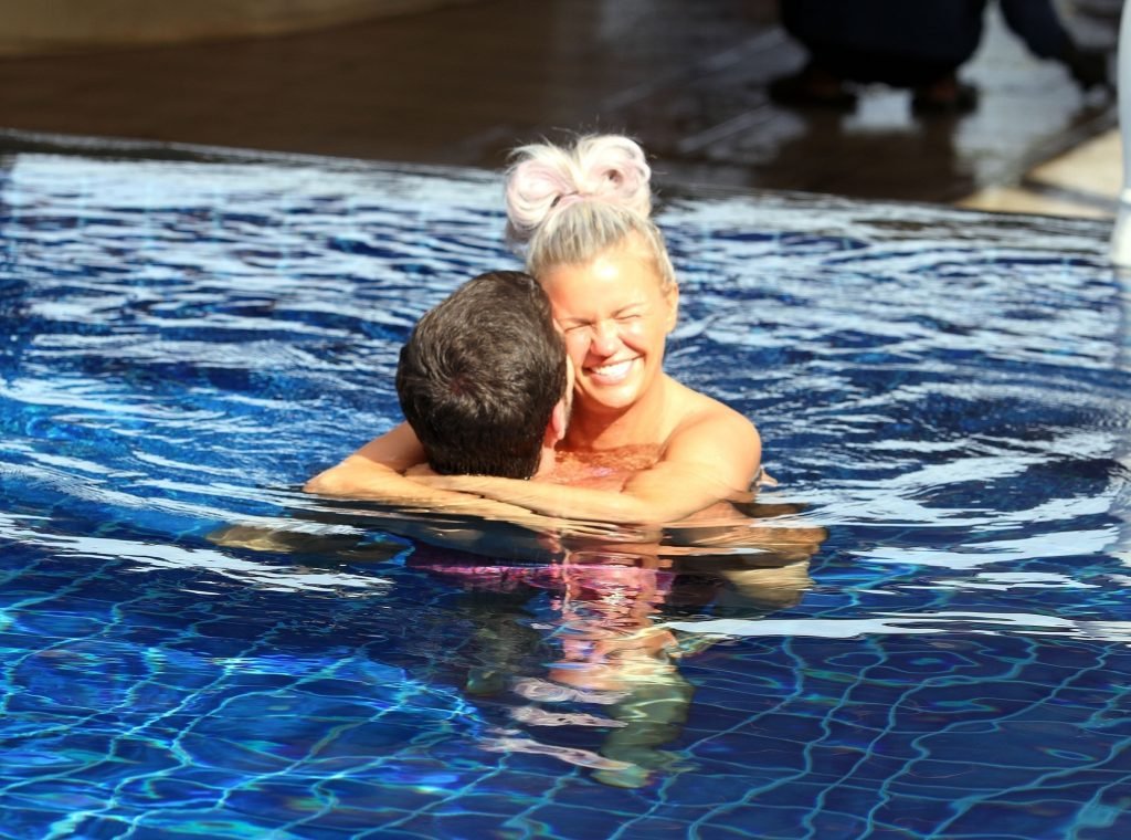 Kerry semblait au paradis thaïlandais tandis que Ryan devenait un peu “tactile” en lui massant les épaules, semblant lui enlever tout le stress et la tension, le couple profitant d’un baiser romantique et d’une étreinte dans la piscine avec une Kerry désormais détendue se rafraîchissant sous une douche.