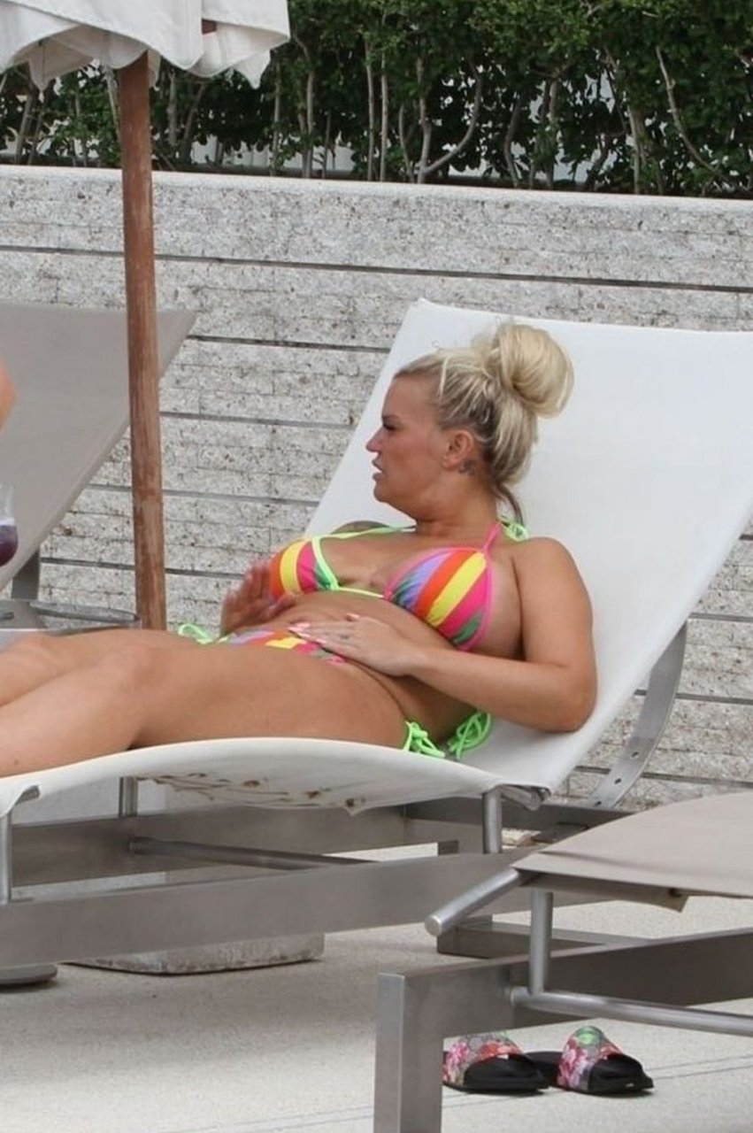 Sous le soleil lointain de l’extrême orient, dans son petit bikini multicolore et minimaliste, l’ancienne chanteuse des “Atomic Kitten” Kerry Katona se détend lors de ses vacances idylliques en Thaïlande, 29/08/2019.
