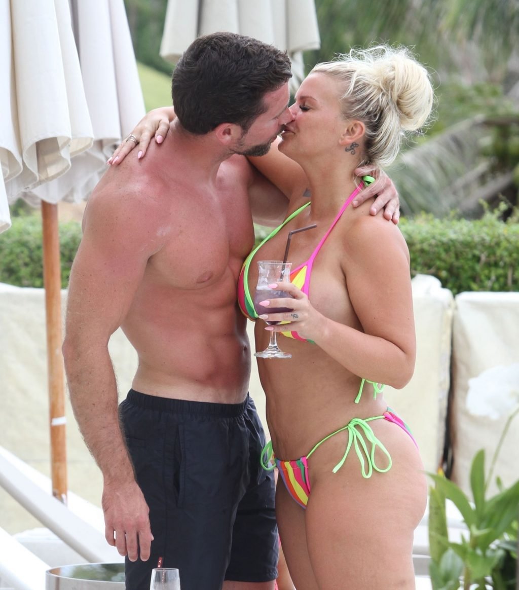 Séjournant au complexe balnéaire Chi Residence à 500 £ la nuit à Koh Samui, accompagnée de ses enfants et de son petit ami torse nu, le coach sportif Ryan Mahoney, Kerry semblait dans son élément, profitant de quelques verres tout en se relaxant sur sa chaise longue, exhibant sa silhouette voluptueuse et sensuelle avec quelques marques d’affection en public avec son compagnon.