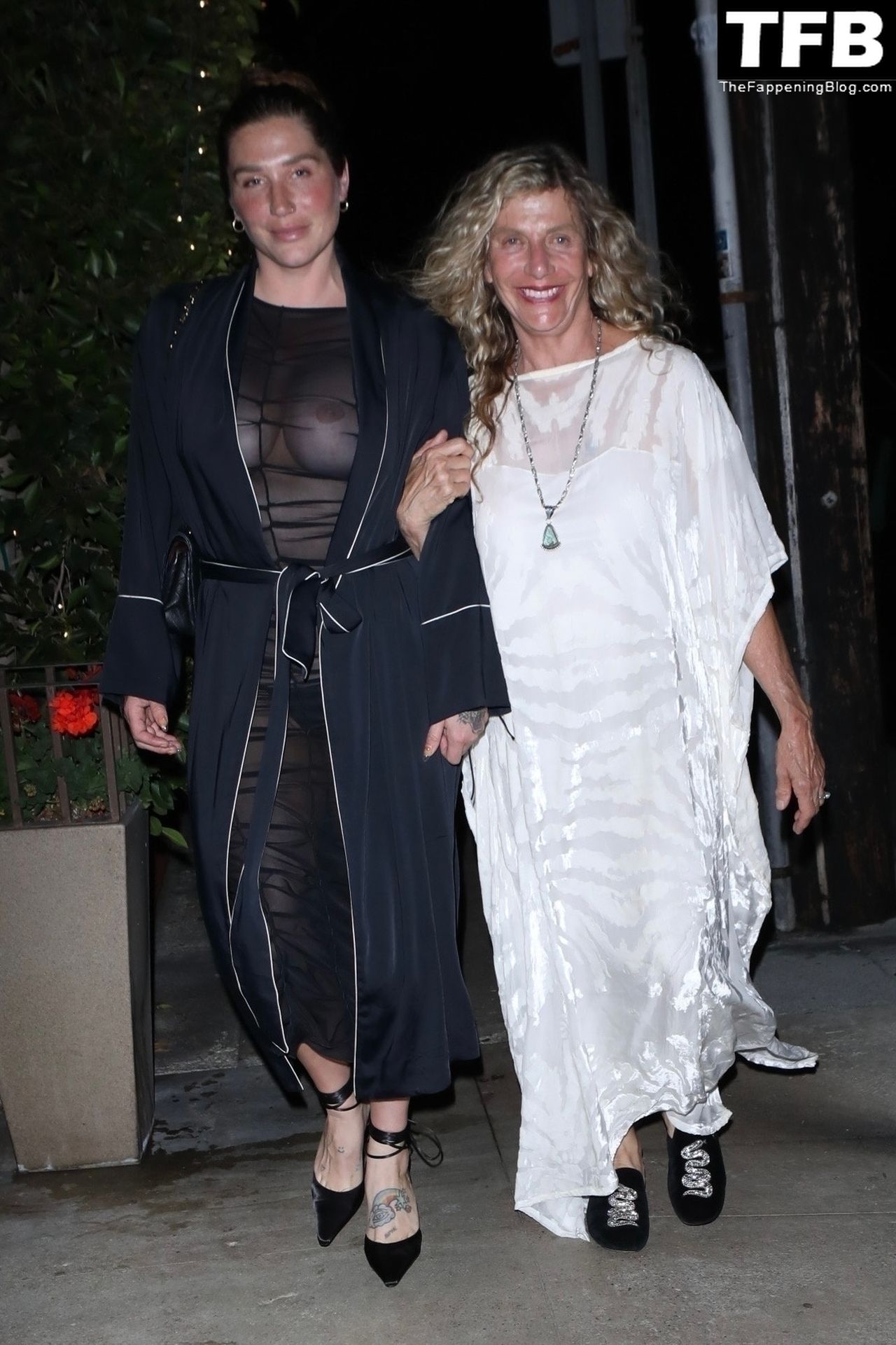 Belle démonstration de son manque de classe – aller dîner avec sa mère habillée comme ça, puis s'assurer qu'un sein soit exposé lorsqu'elle est photographiée avec sa mère.