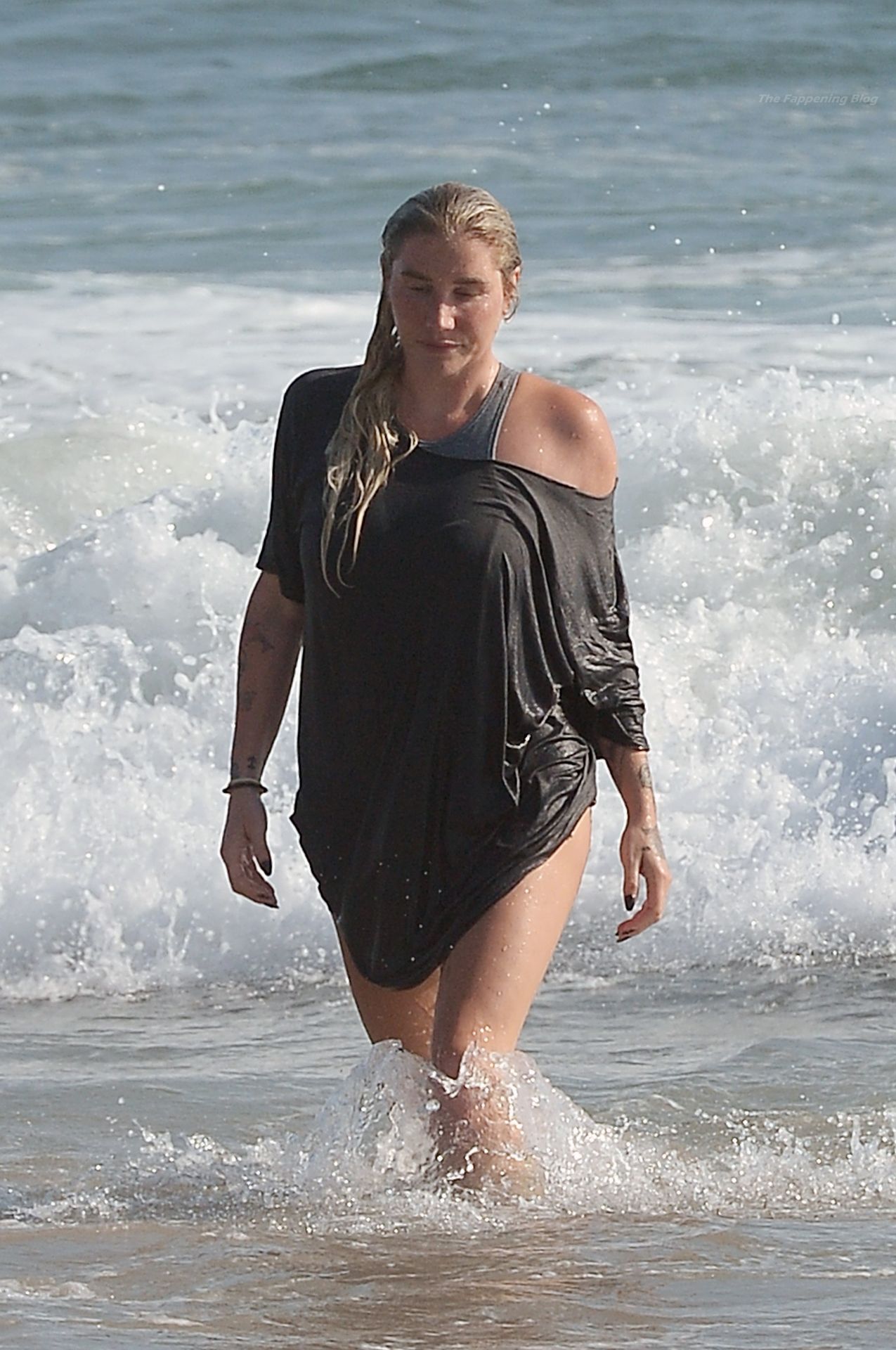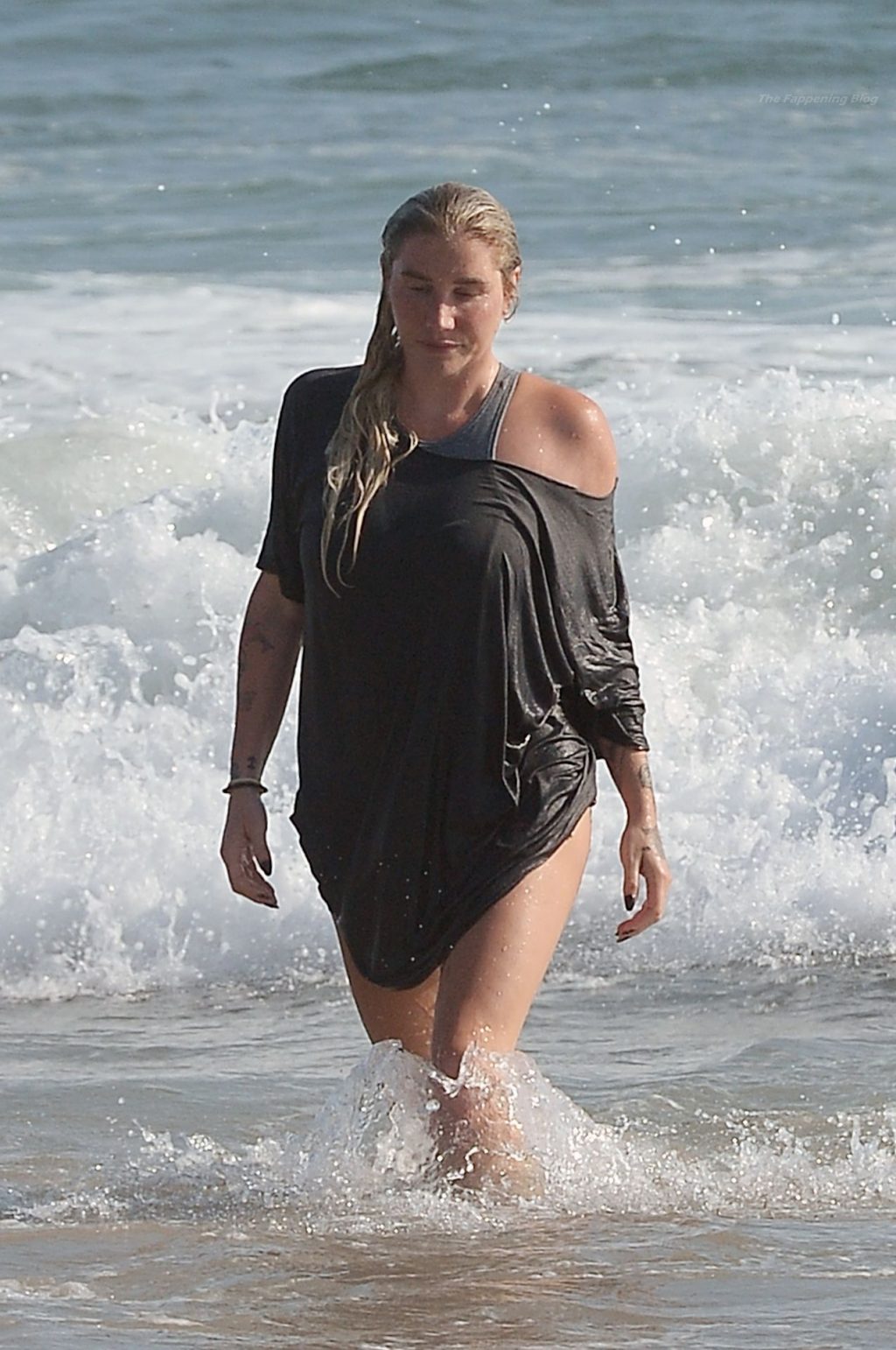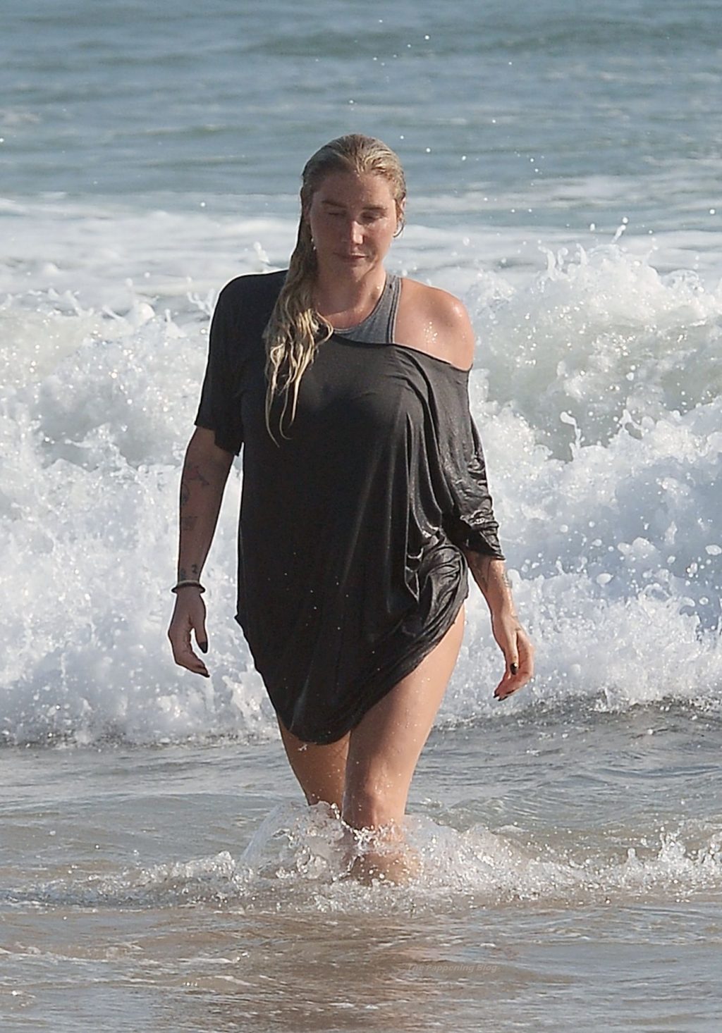 Kesha à la plage avec des amis à Los Angeles, 18/07/2021.