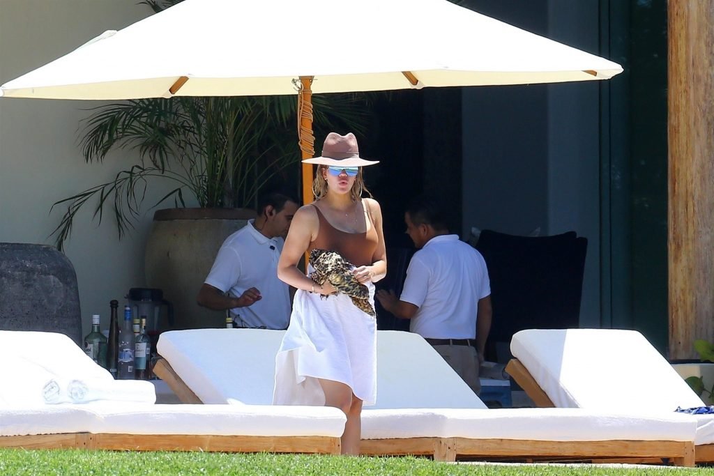 Alors que Khloe a fait un rapide plongeon dans l’océan avant de retourner à la piscine, Kendall a fait de son mieux pour faire du bodyboard et du paddle avant de retourner à la piscine.