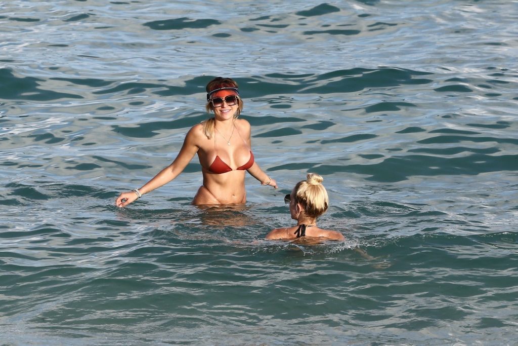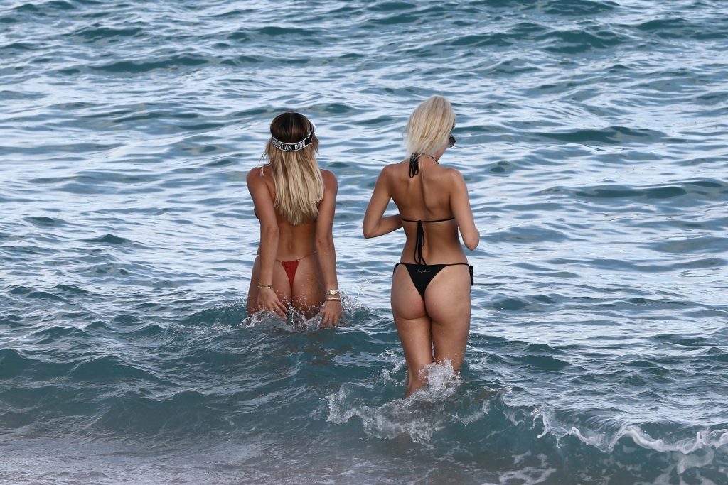 Le mannequin Khloe Terae profite du soleil de décembre avec une amie à Miami, le 11/12/2019. Le duo portait de minuscules bikinis en s’amusant sur la plage.
