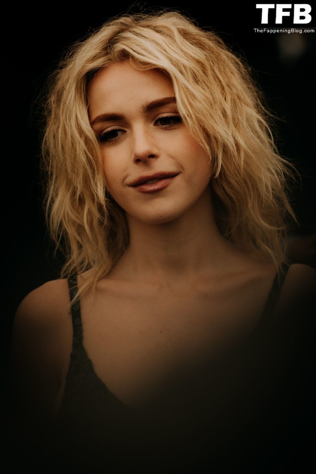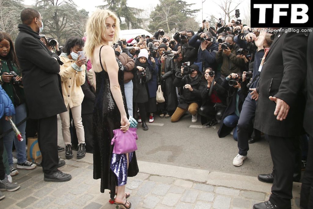 L’actrice américaine Kiernan Shipka est très sexy à son arrivée au défilé Loewe Automne/Hiver 2022/2023 Femme lors de la Fashion Week de Paris au Tennis Club porte de Saint-Cloud à Paris, le 03/04/2022.