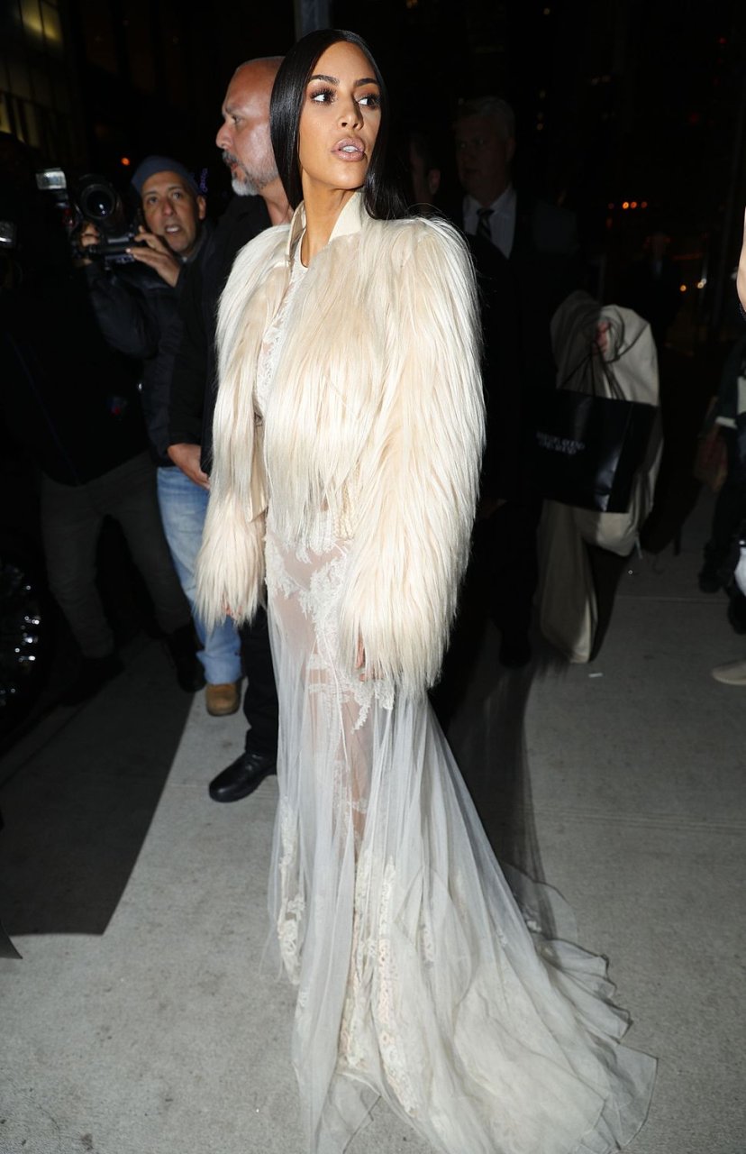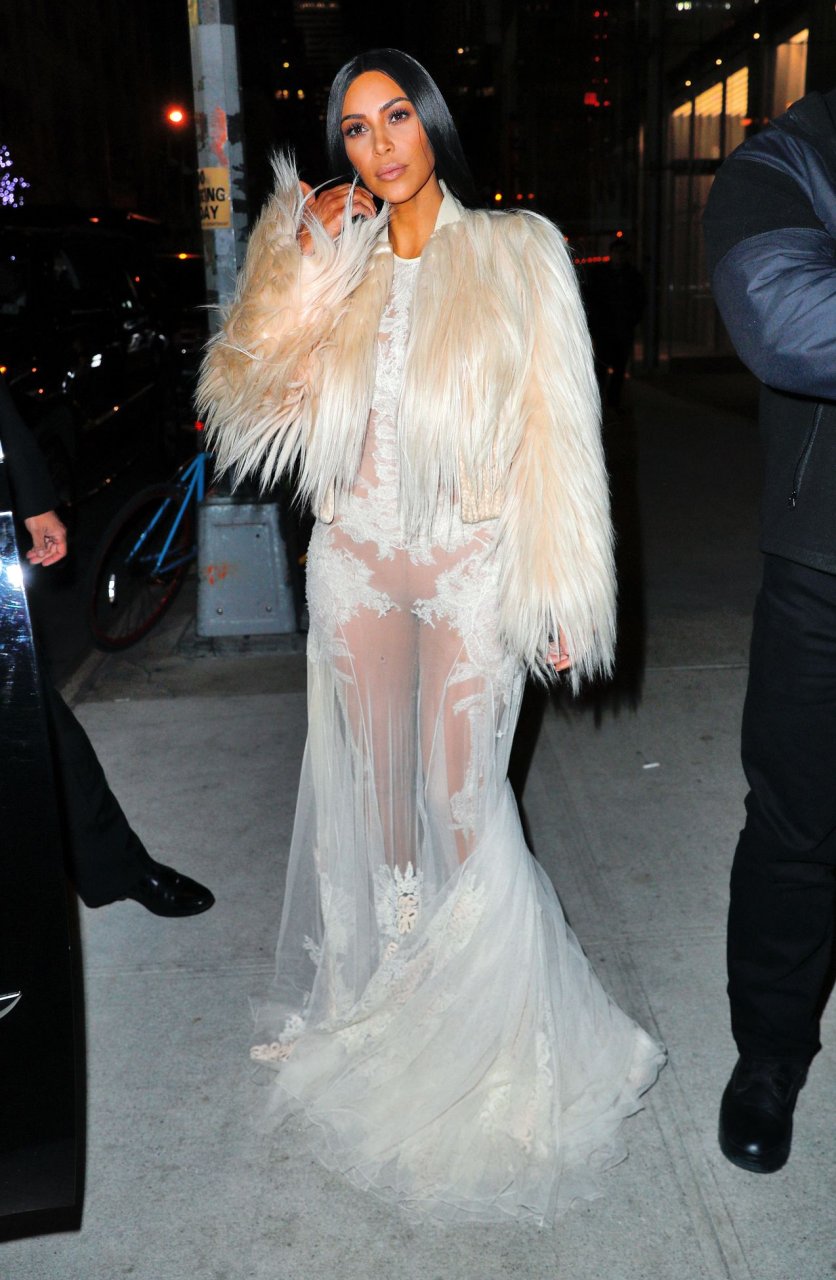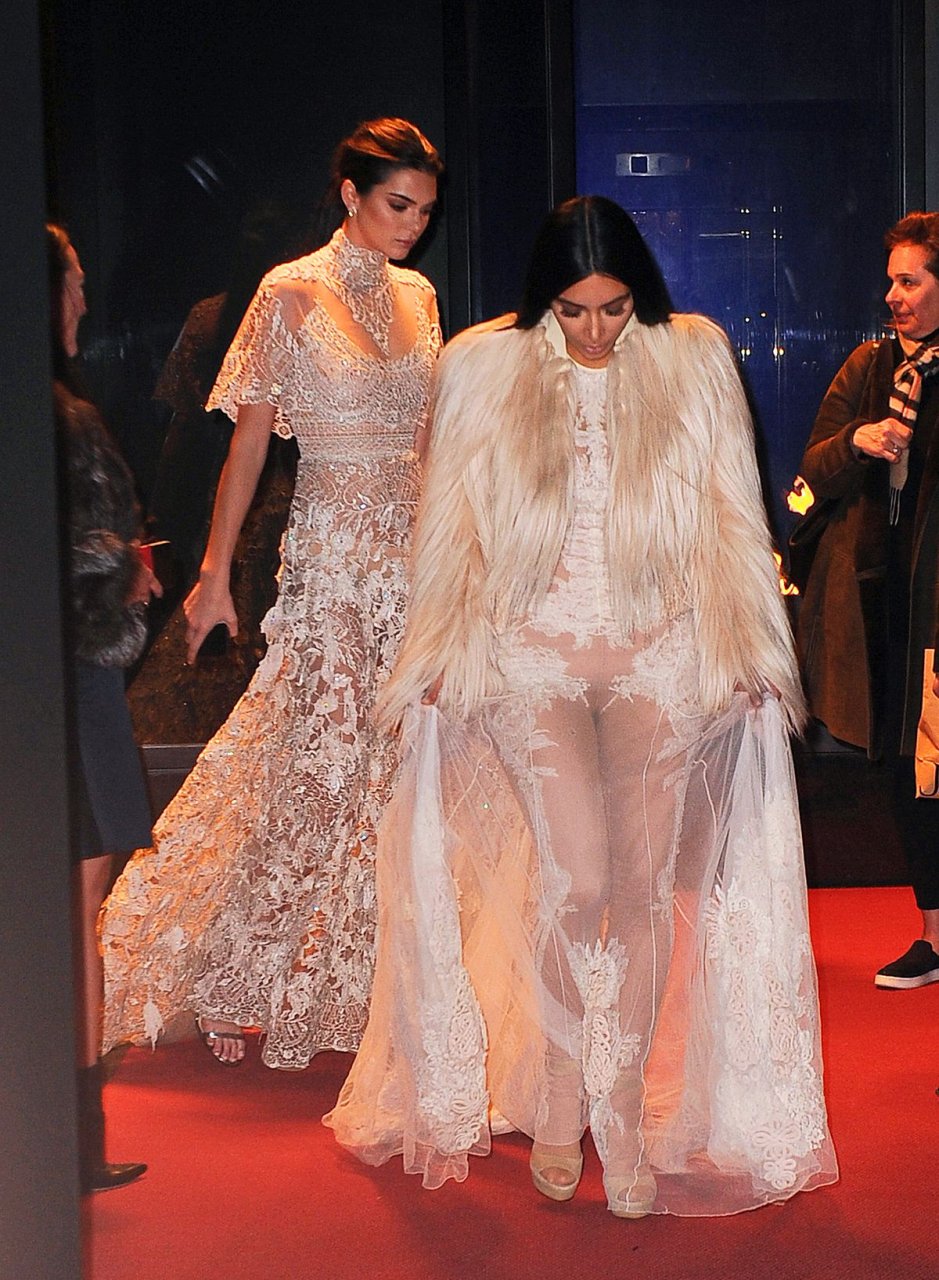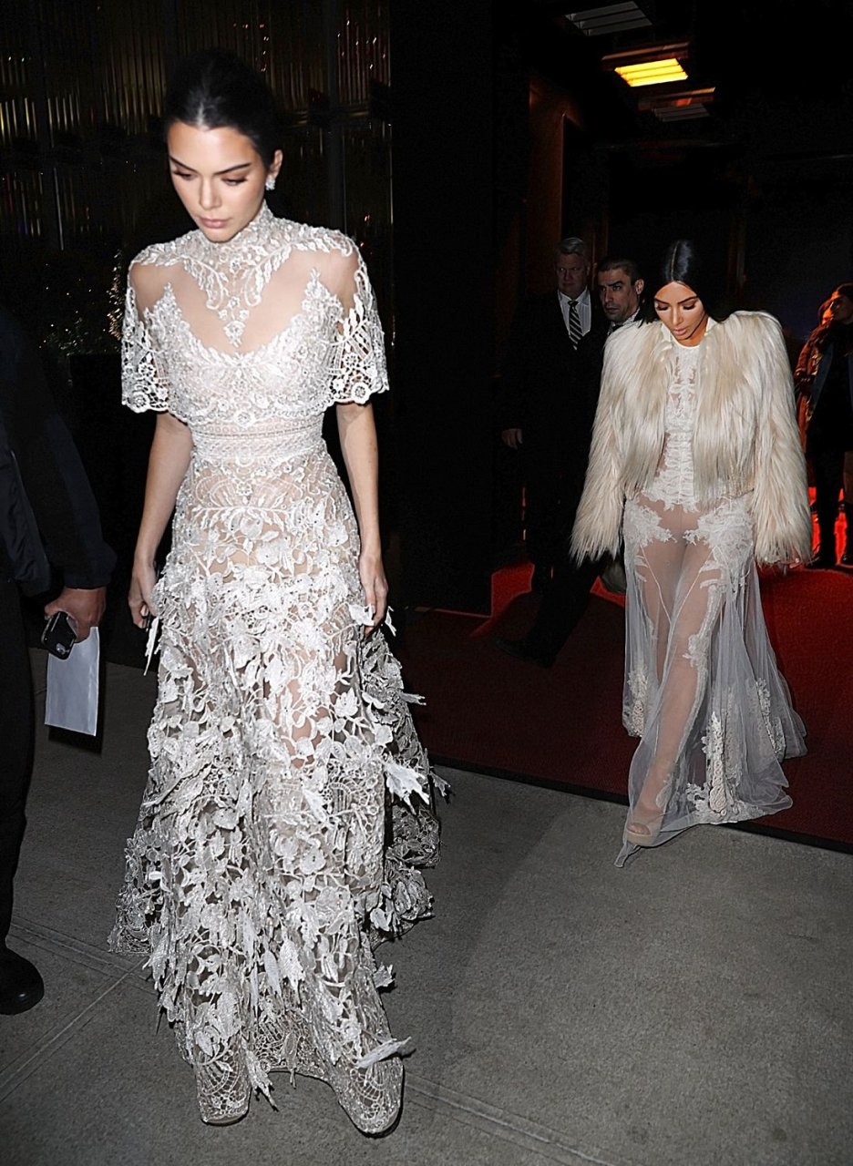 Kim Kardashian et Kendall Jenner sont magnifiques dans des robes blanches transparentes alors qu’elles sortent à New York après le tournage de ‘Ocean’s Eight’, 16/01/2017.