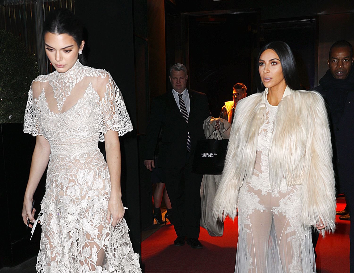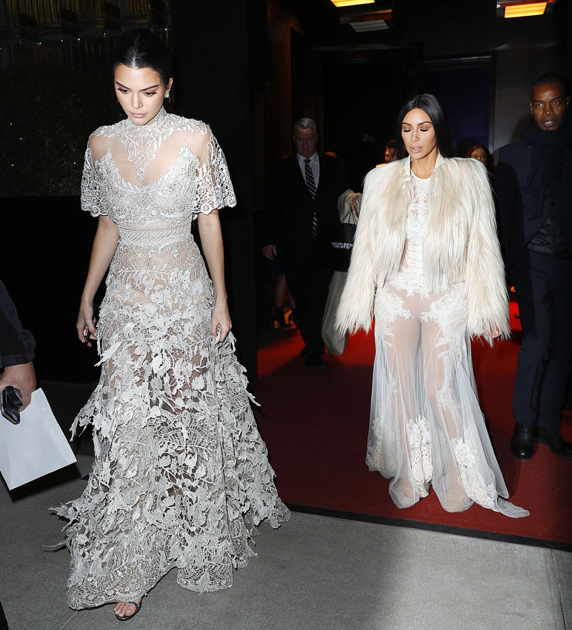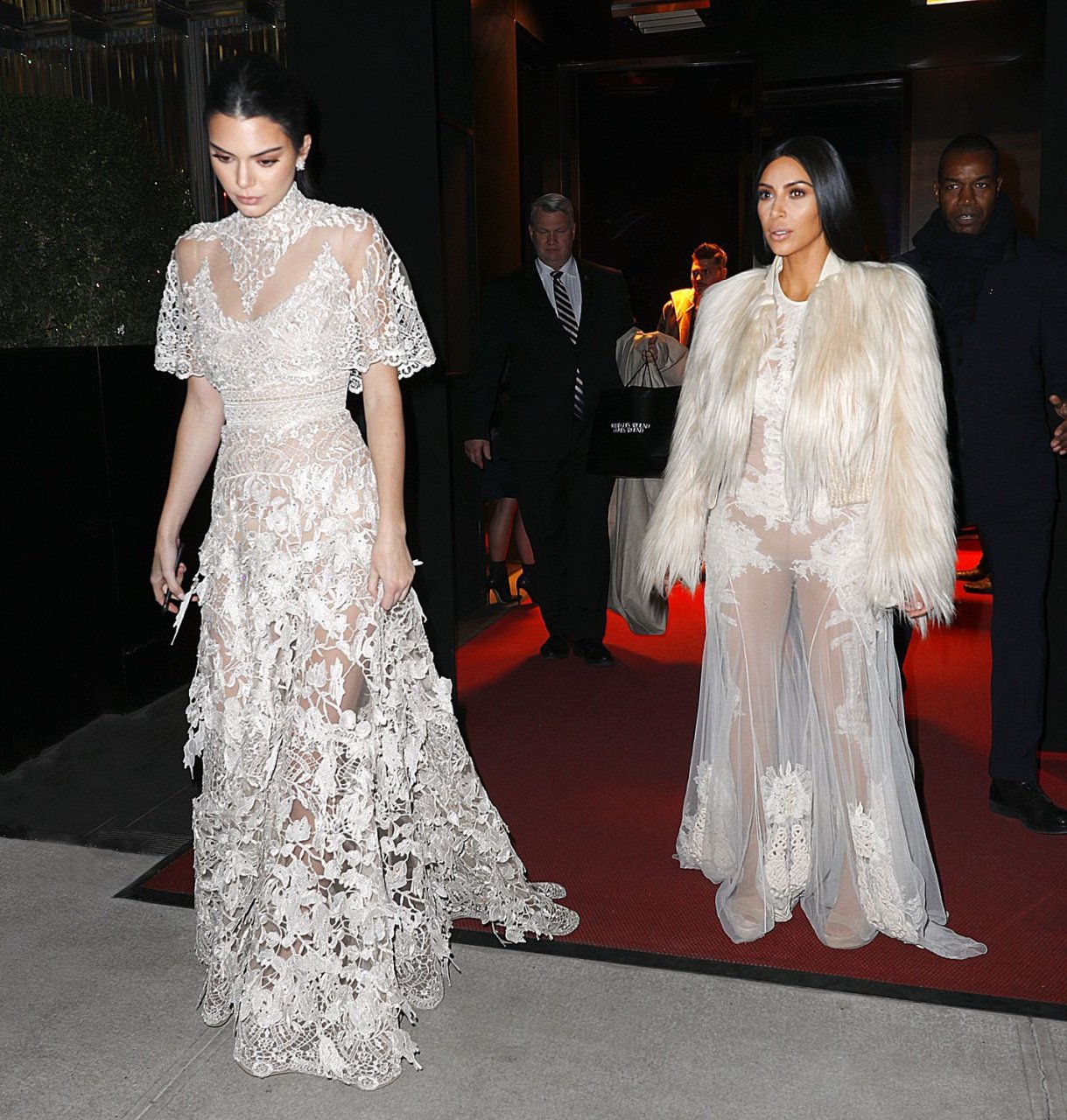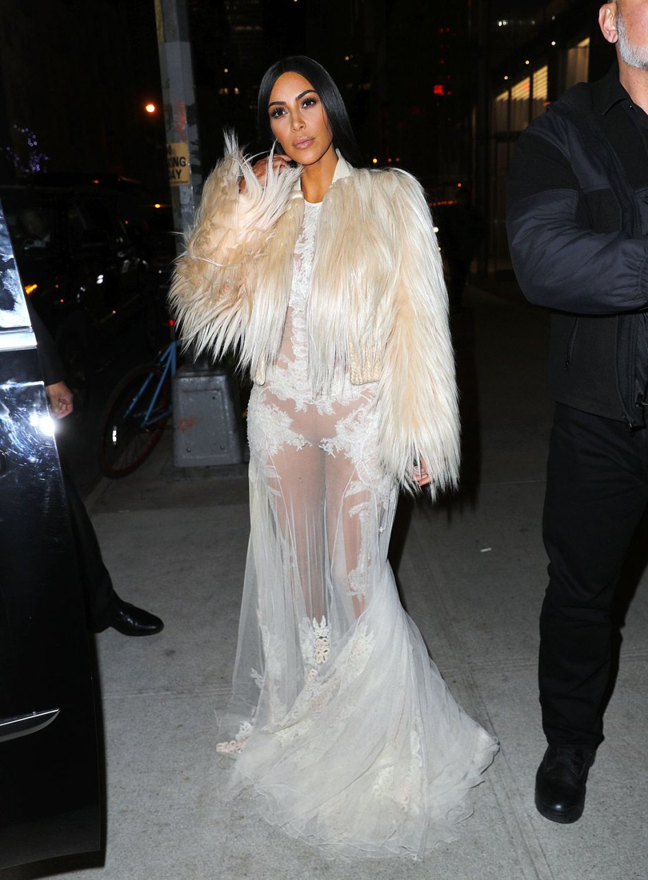 Kim Kardashian et Kendall Jenner sont magnifiques dans des robes blanches transparentes alors qu’elles sortent à New York après le tournage de ‘Ocean’s Eight’, 16/01/2017.