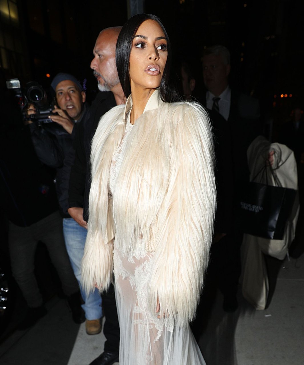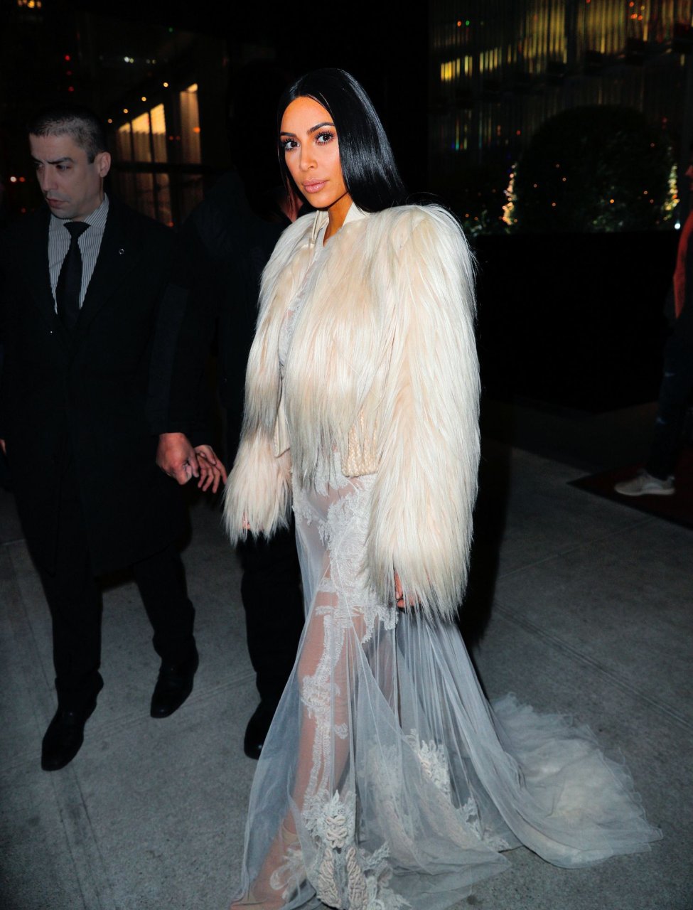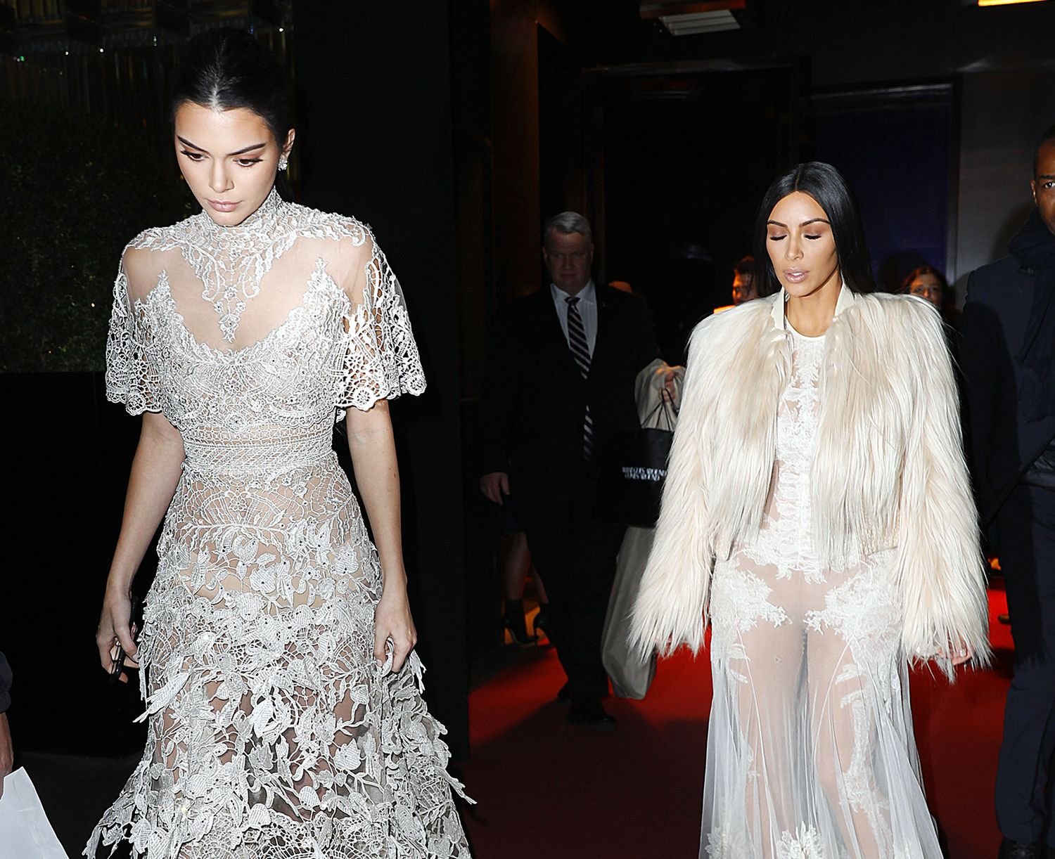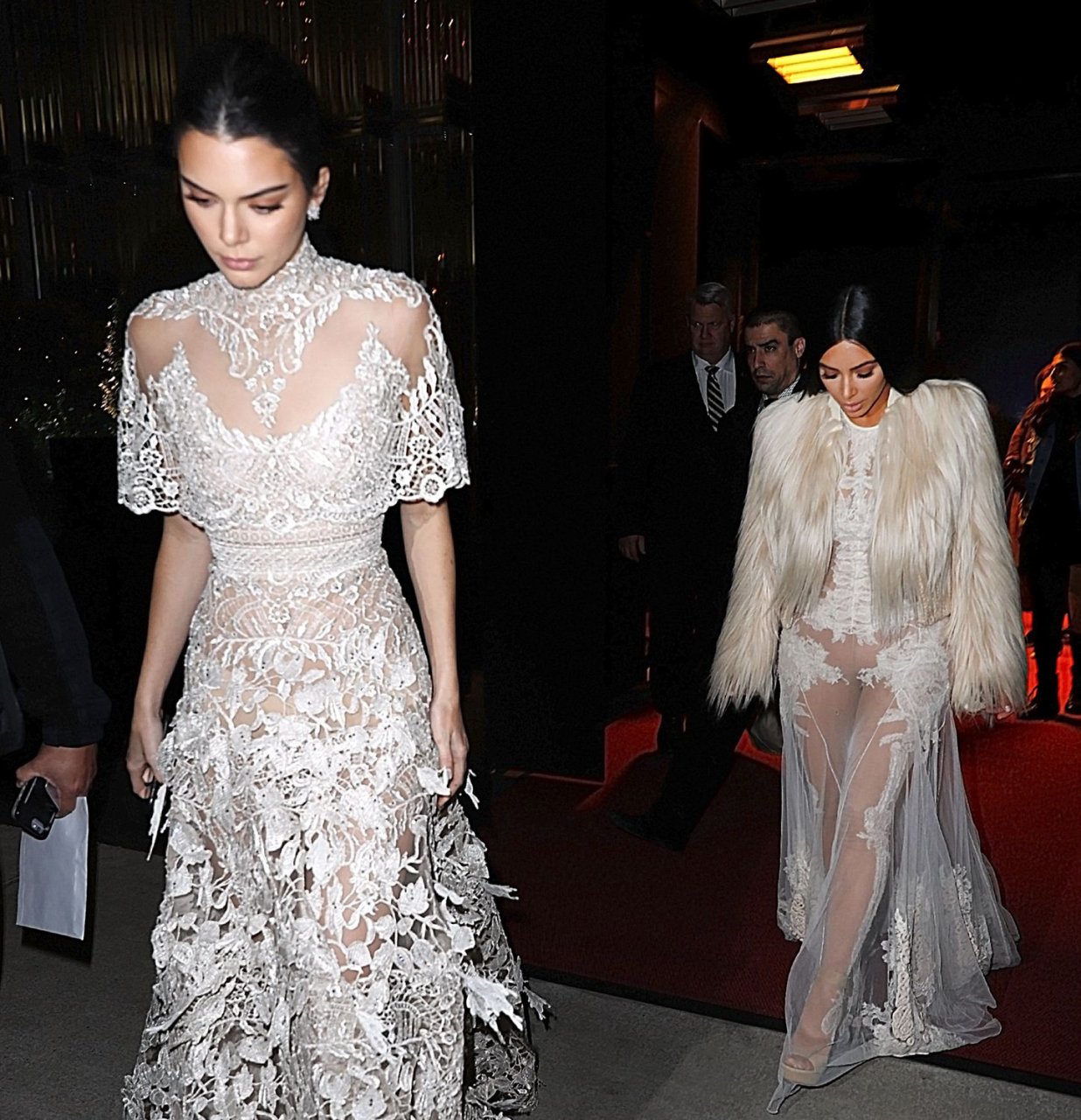 Kim Kardashian et Kendall Jenner sont magnifiques dans des robes blanches transparentes alors qu’elles sortent à New York après le tournage de ‘Ocean’s Eight’, 16/01/2017.