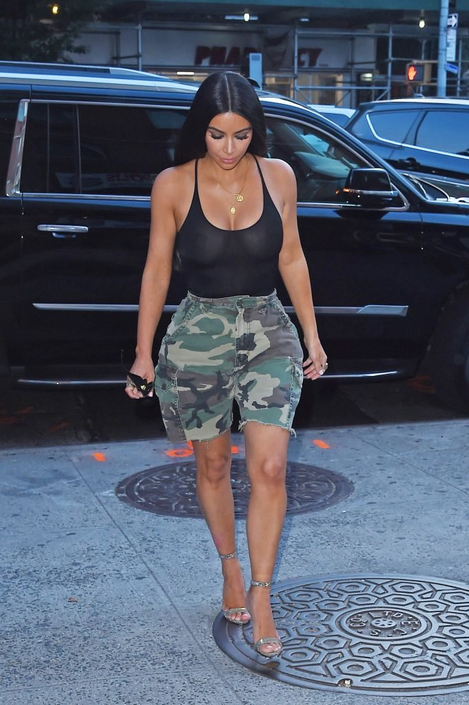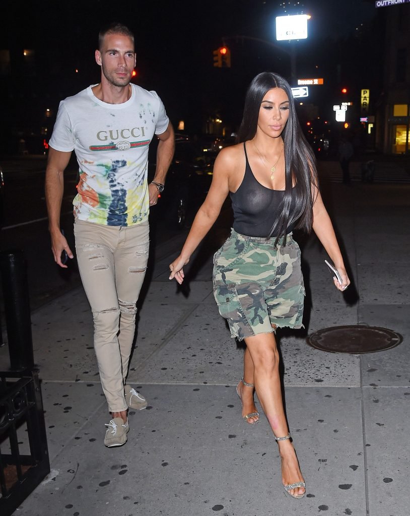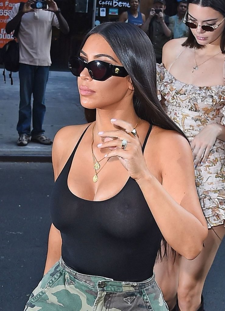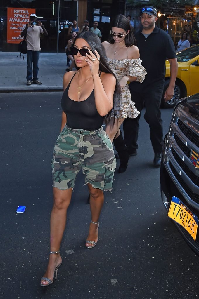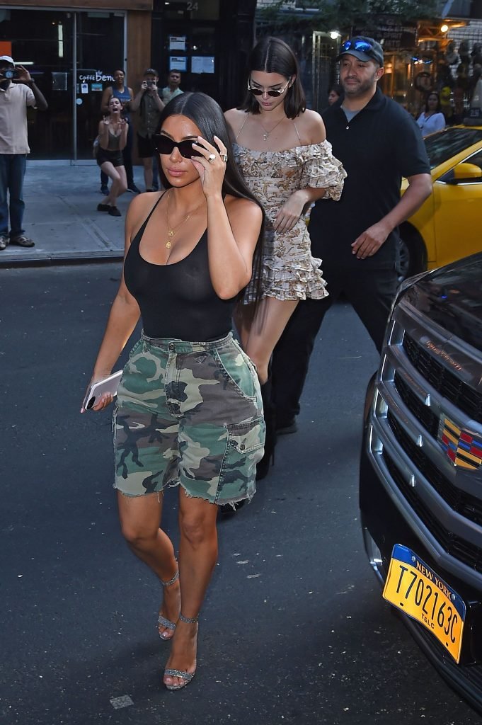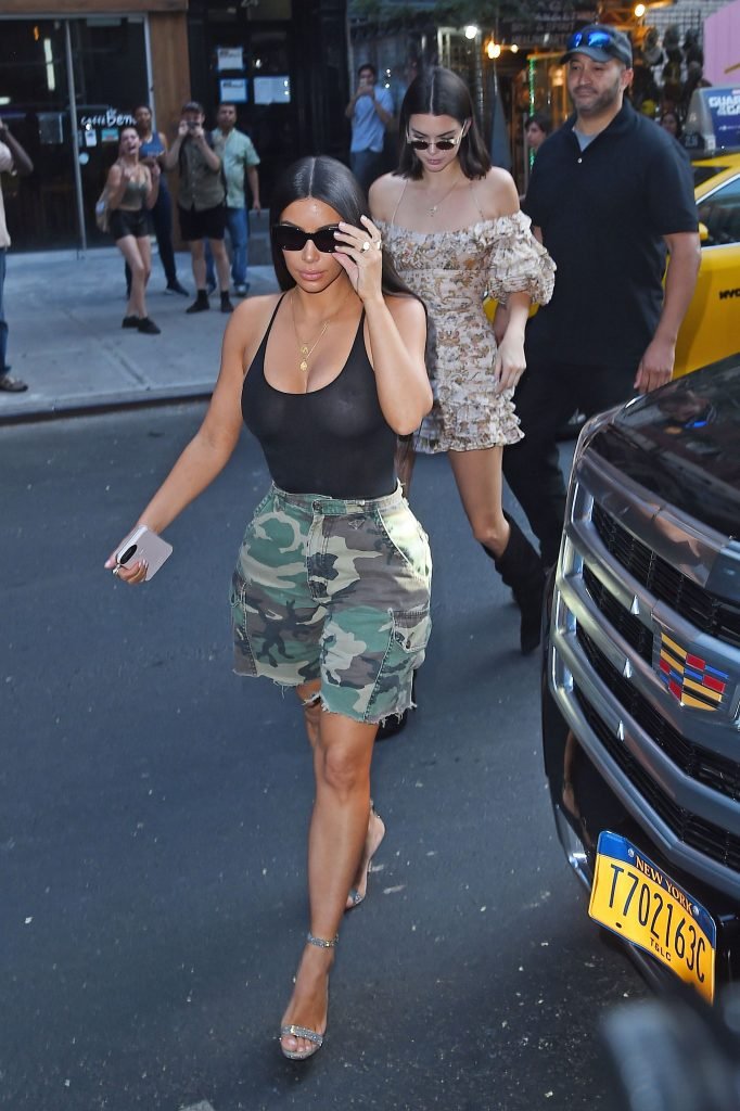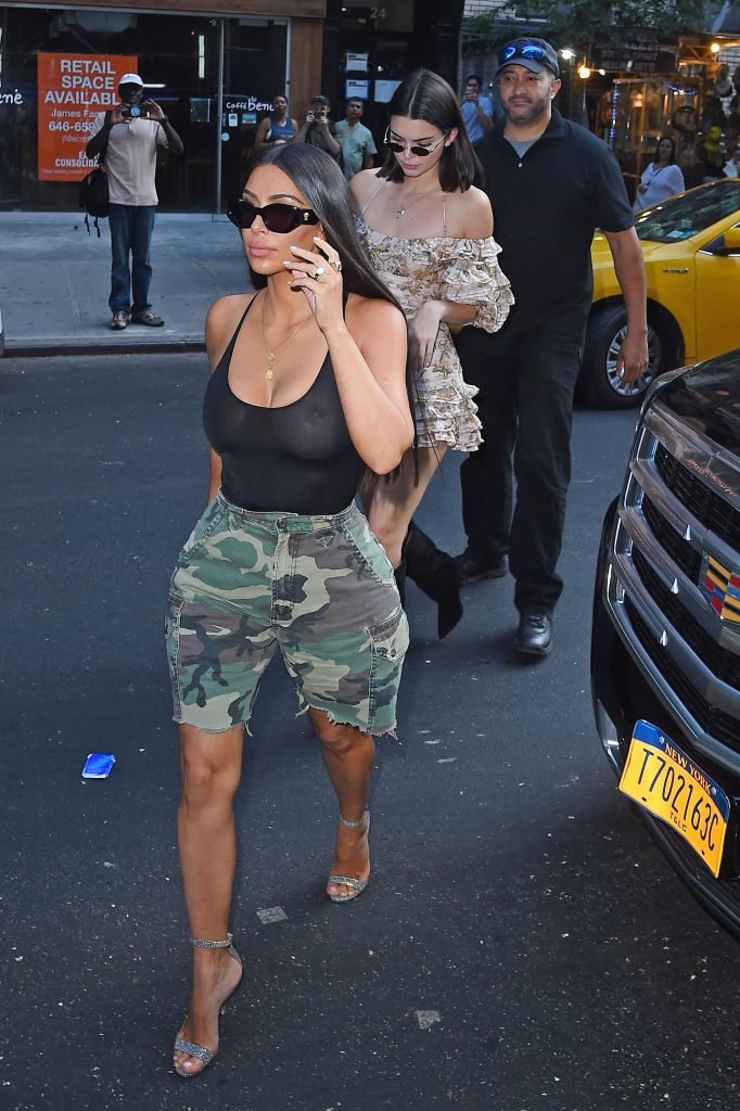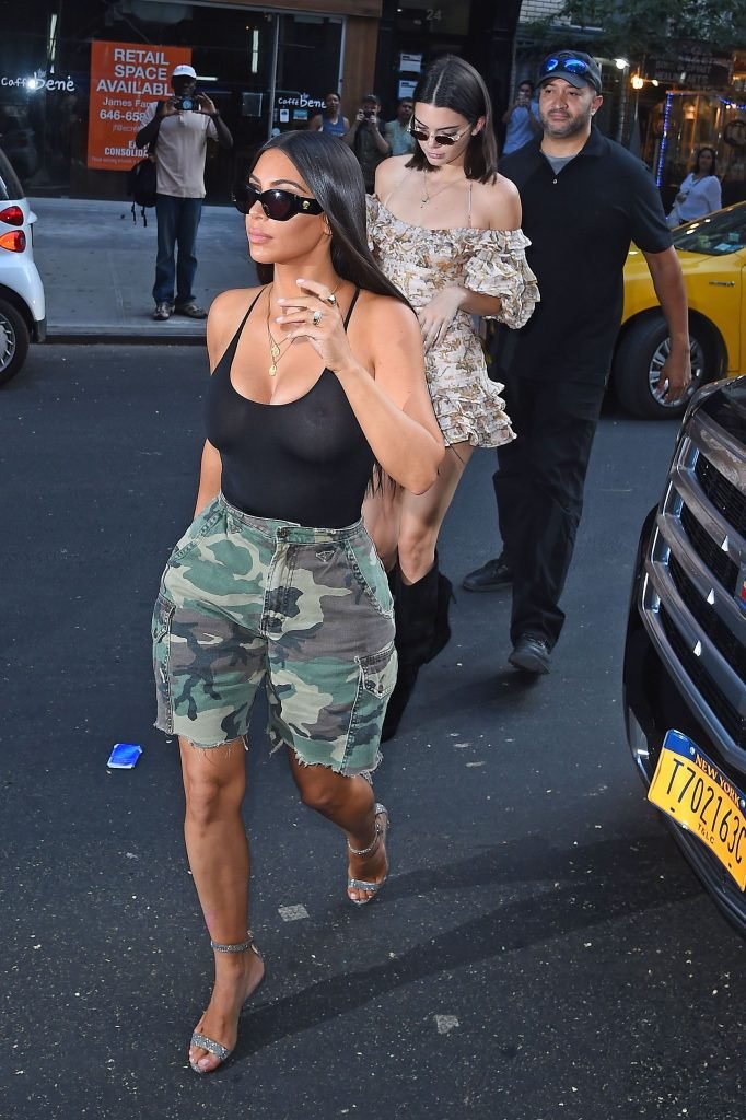 La personnalité de la télévision Kim Kardashian a été vue en compagnie de sa sœur Kendall Jenner à New York, le 01/08/2017.