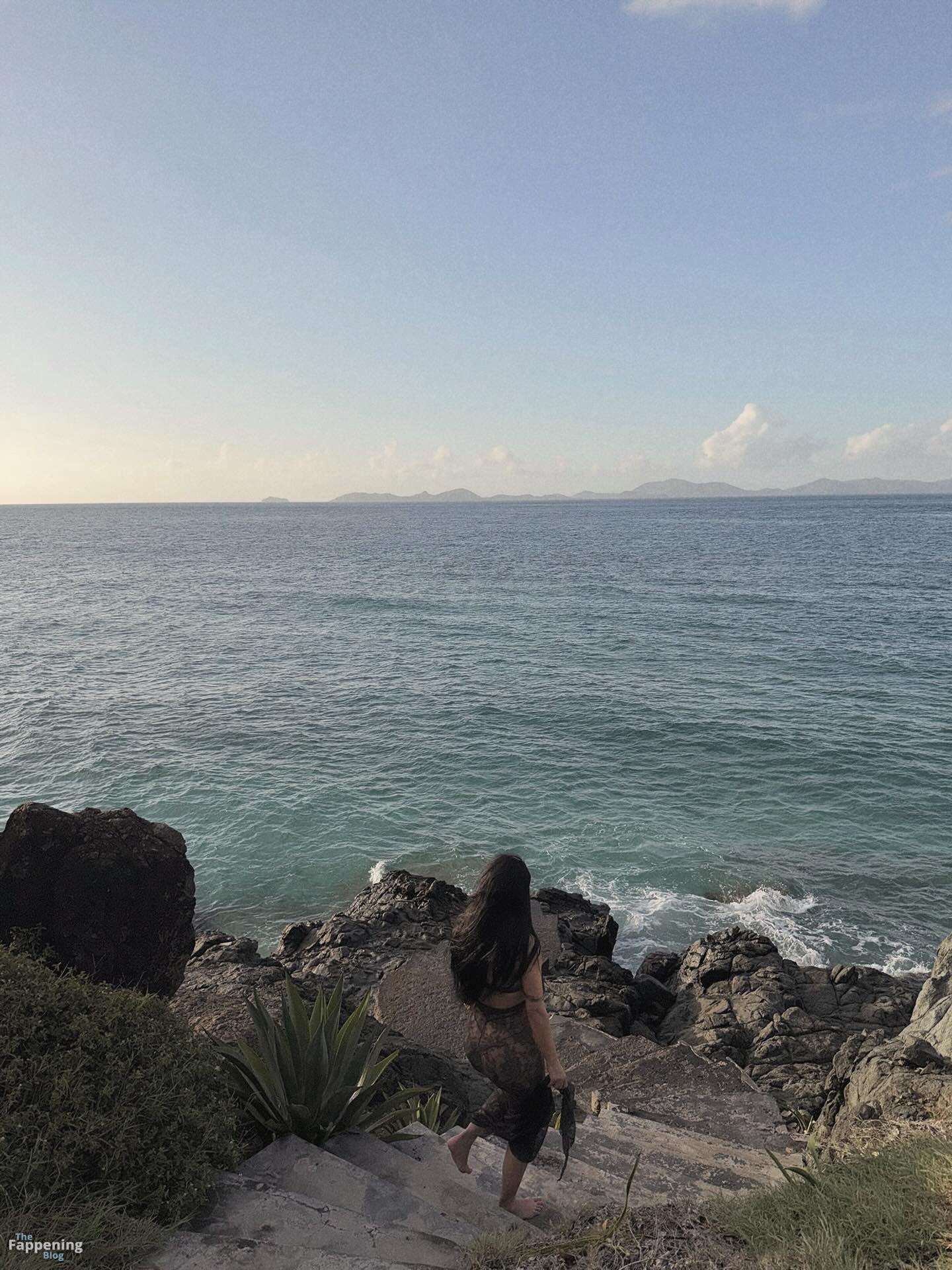 Kim Kardashian participe à une séance photo en bord de mer, portant une robe en dentelle transparente, montrant ses seins et ses fesses.