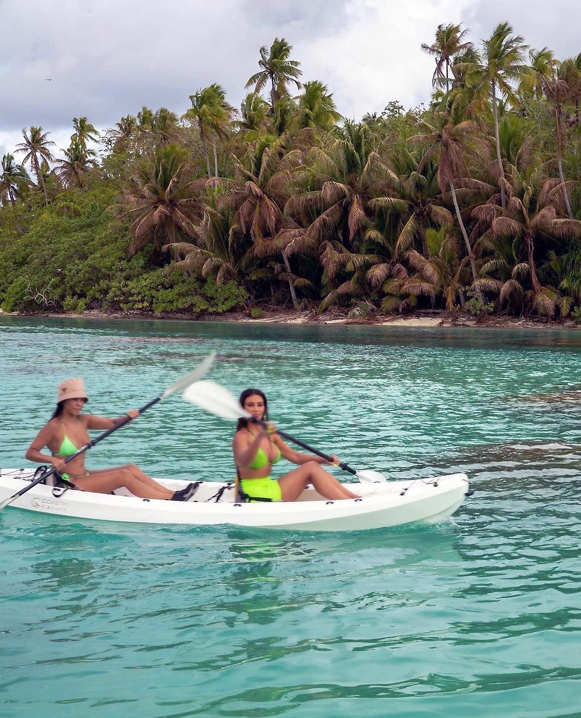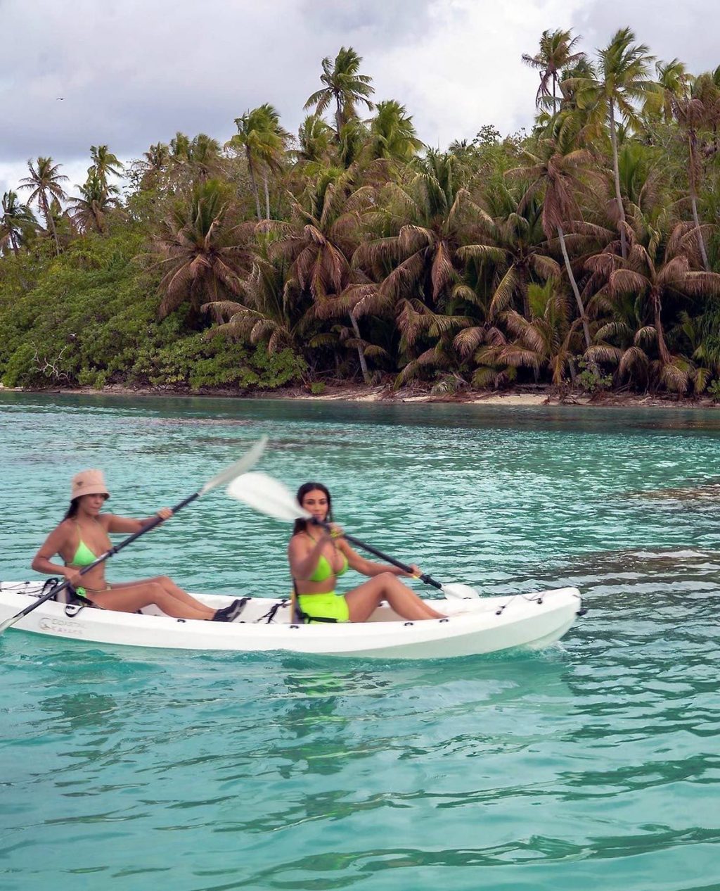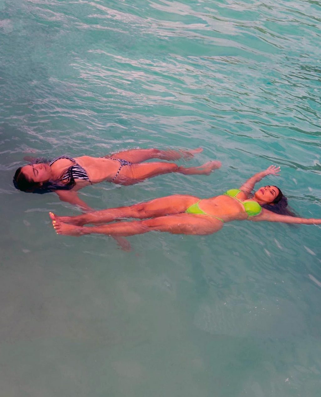Check this out, folks! Here are some of the newest Kim Kardashian sexy pics! She posed in a screaming yellow bikini while on a beach somewhere with her sisters! The Kardashians never reveal their vacation locations, so I can’t tell you where this was taken. Either way, enjoy the photos, and also, keep scrolling down for a video! She emerges out of the water and walks to the camera!