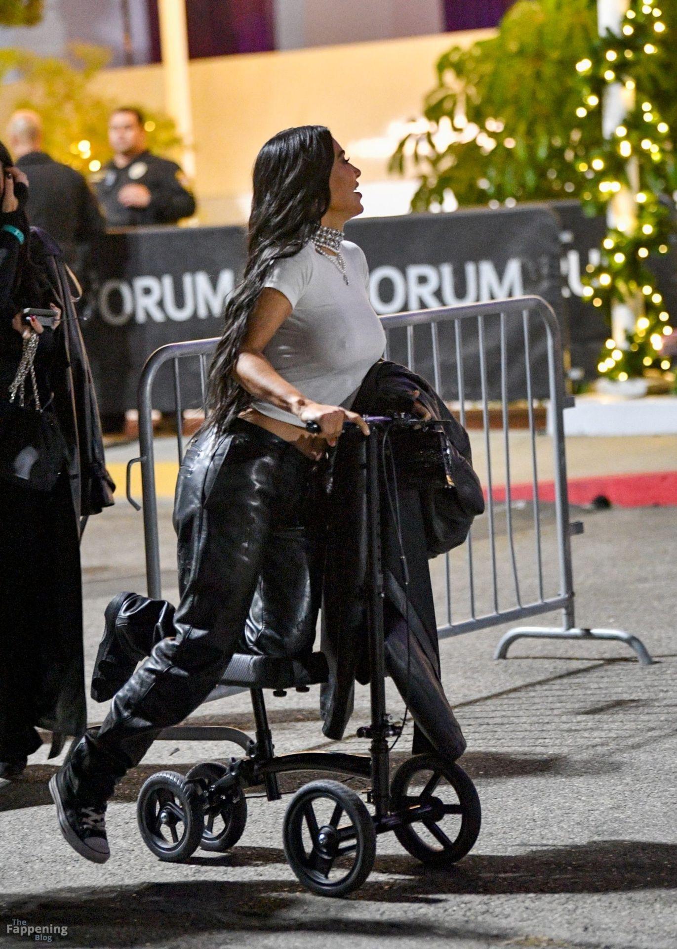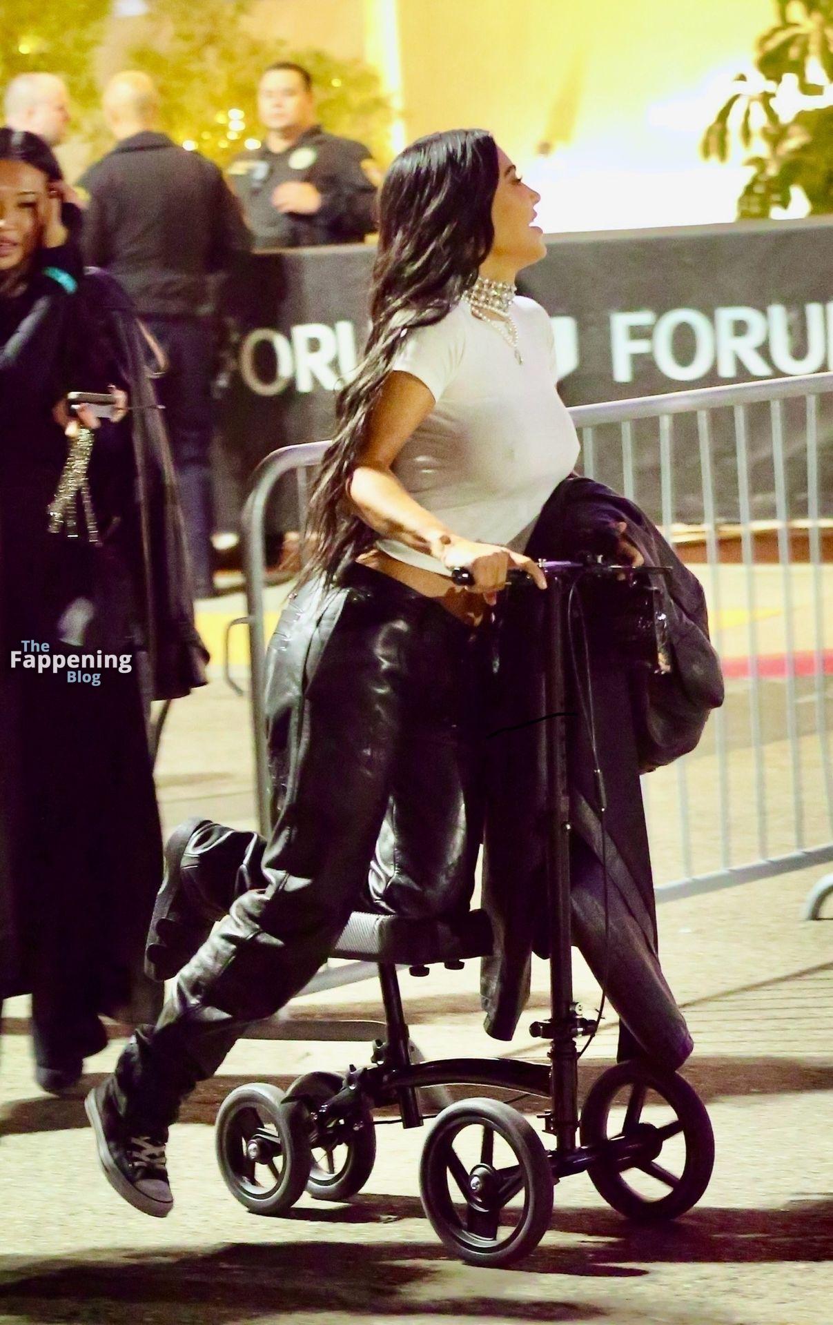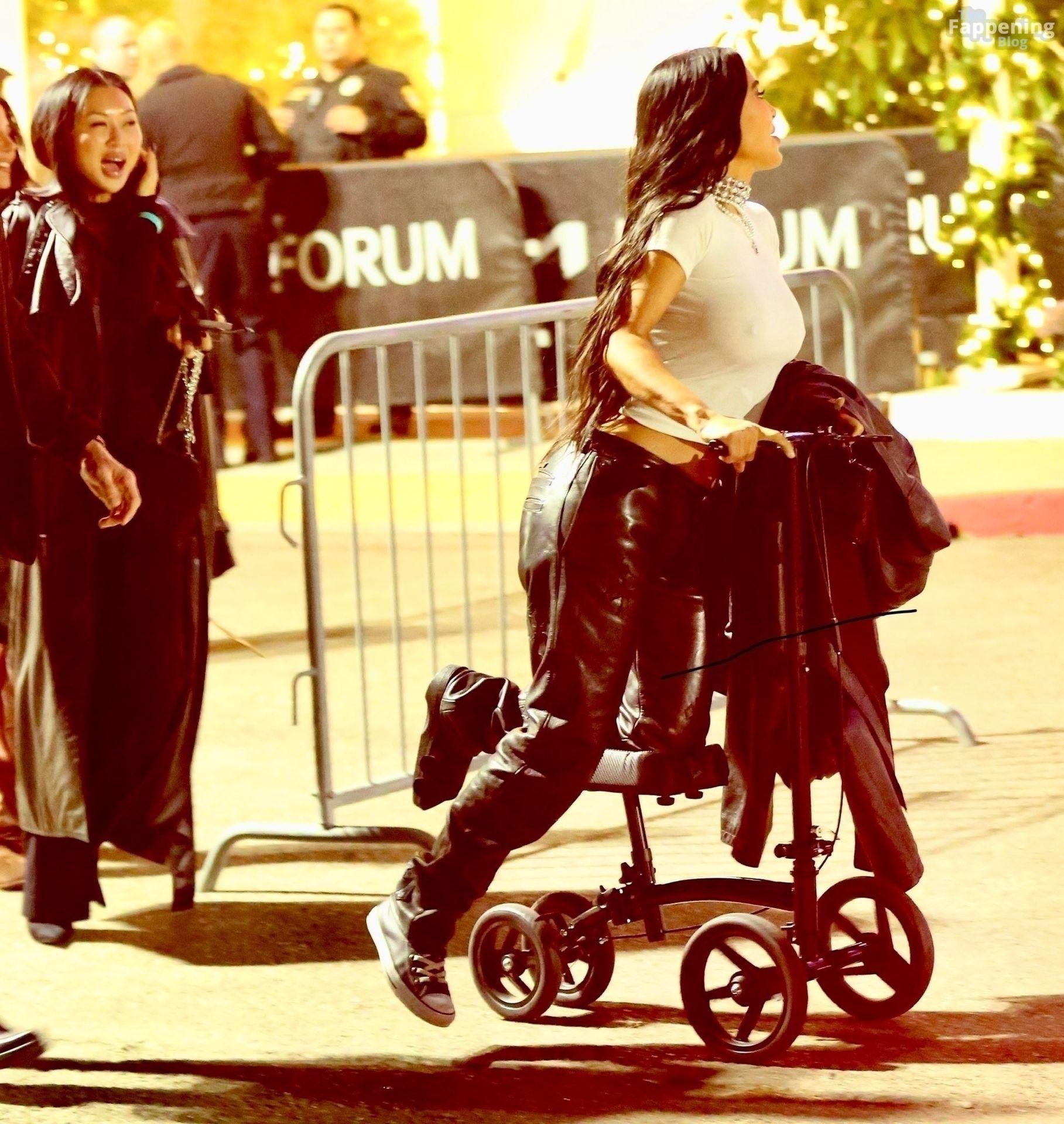 Kim Kardashian a totalement attiré tous les regards au concert de Billie Eilish avec une chemise blanche transparente, sans soutien-gorge et audacieuse. Sa poitrine généreuse, ses tétons apparents et ses courbes étaient les véritables stars du show à Inglewood, CA. La star du Fappening a été aperçue utilisant un Cosywill Walker pour soutenir son pied blessé en quittant l’événement.