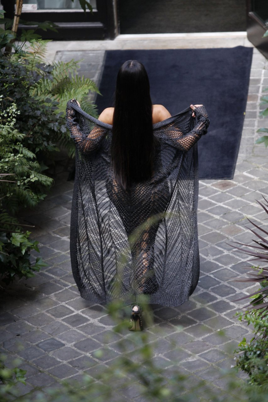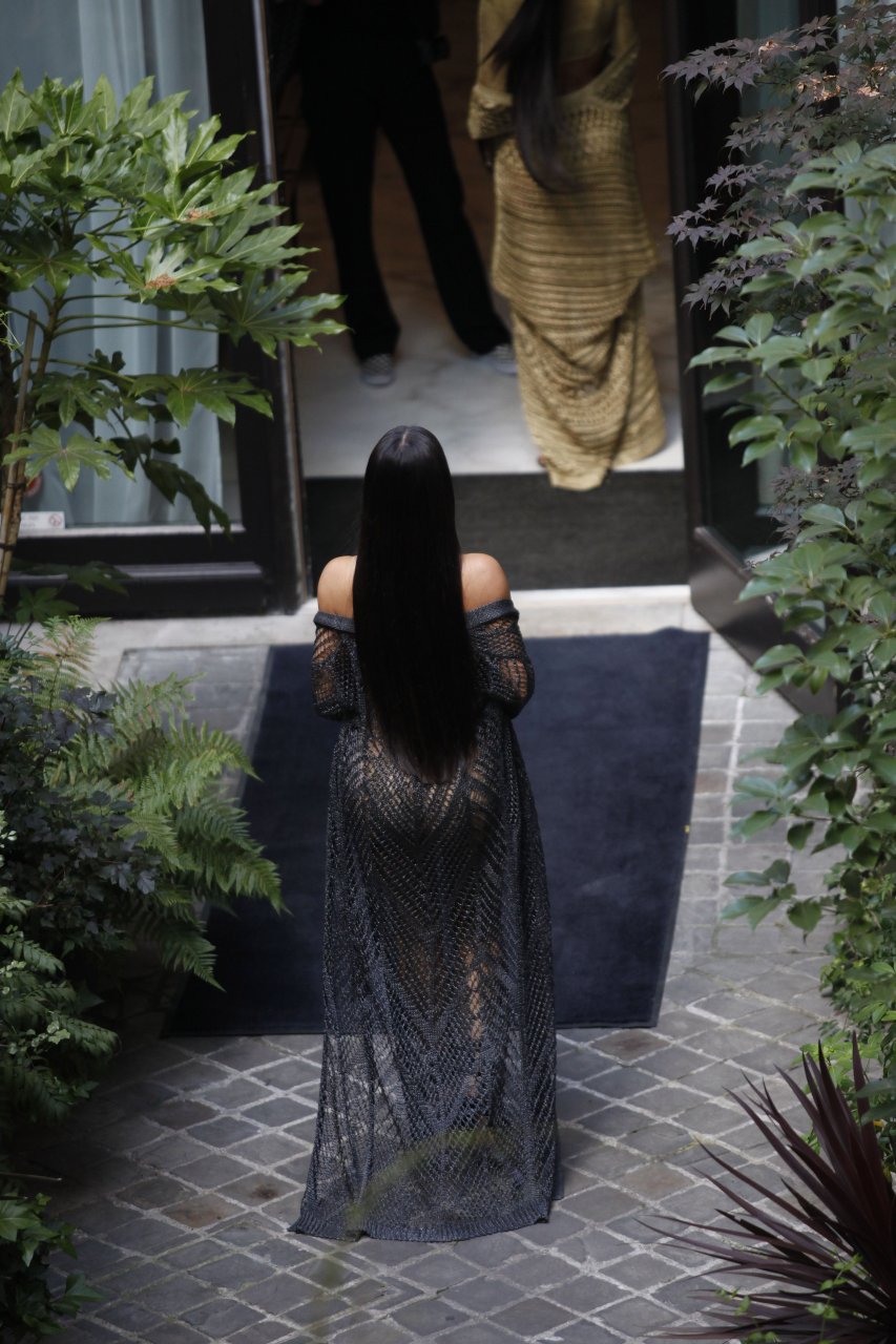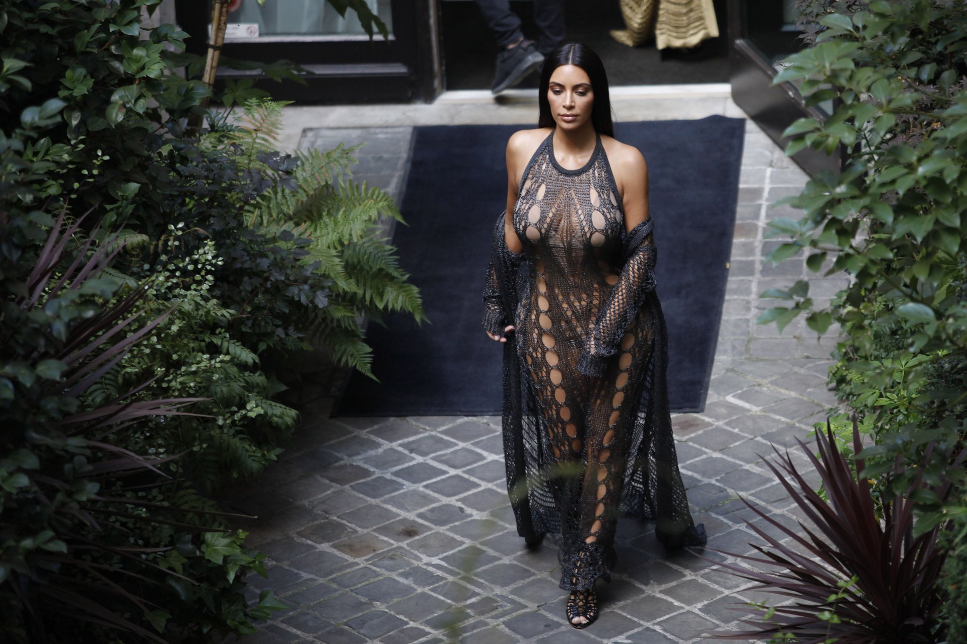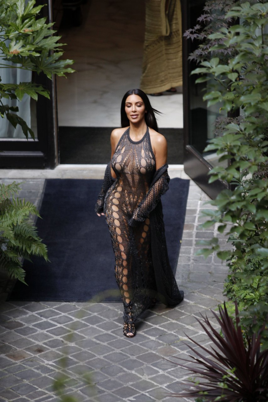Kim Kardashian assiste au défilé Balmain dans le cadre de la Semaine de la mode féminine printemps/été 2017 à Paris, 29/09/2016. Poitrine tombant jusqu’au ventre… Kim Kardashian est une personnalité américaine de la télévision et des réseaux sociaux, mondaine et mannequin. Âge : 35 ans (21 octobre 1980).