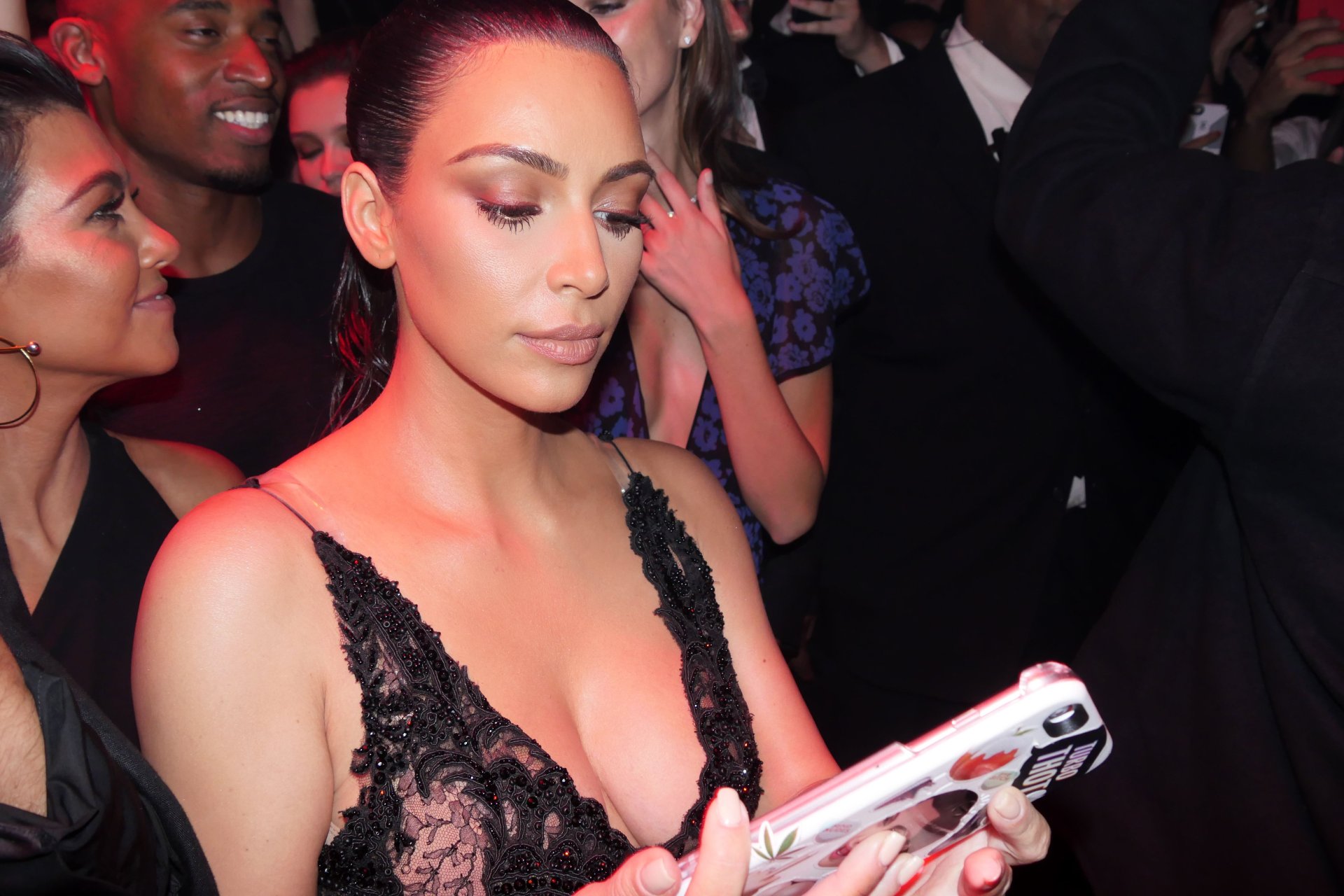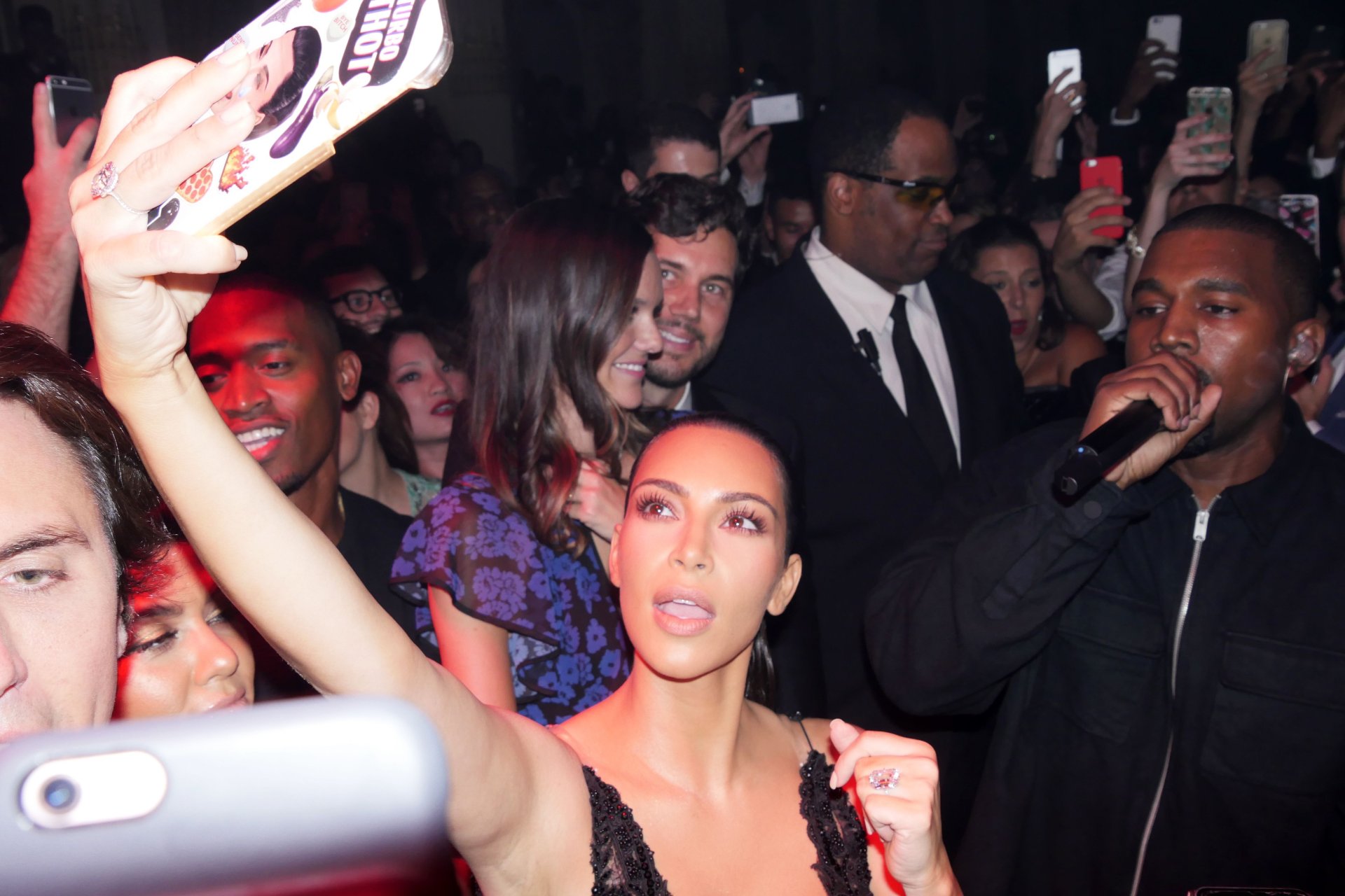Kim Kardashian porte une robe en dentelle noire transparente lors de la soirée Harper’s Bazar à New York, 09/09/2016. Kim Kardashian est une personnalité américaine de la télévision et des réseaux sociaux, mondaine et mannequin. Âge : 35 ans (21 octobre 1980).