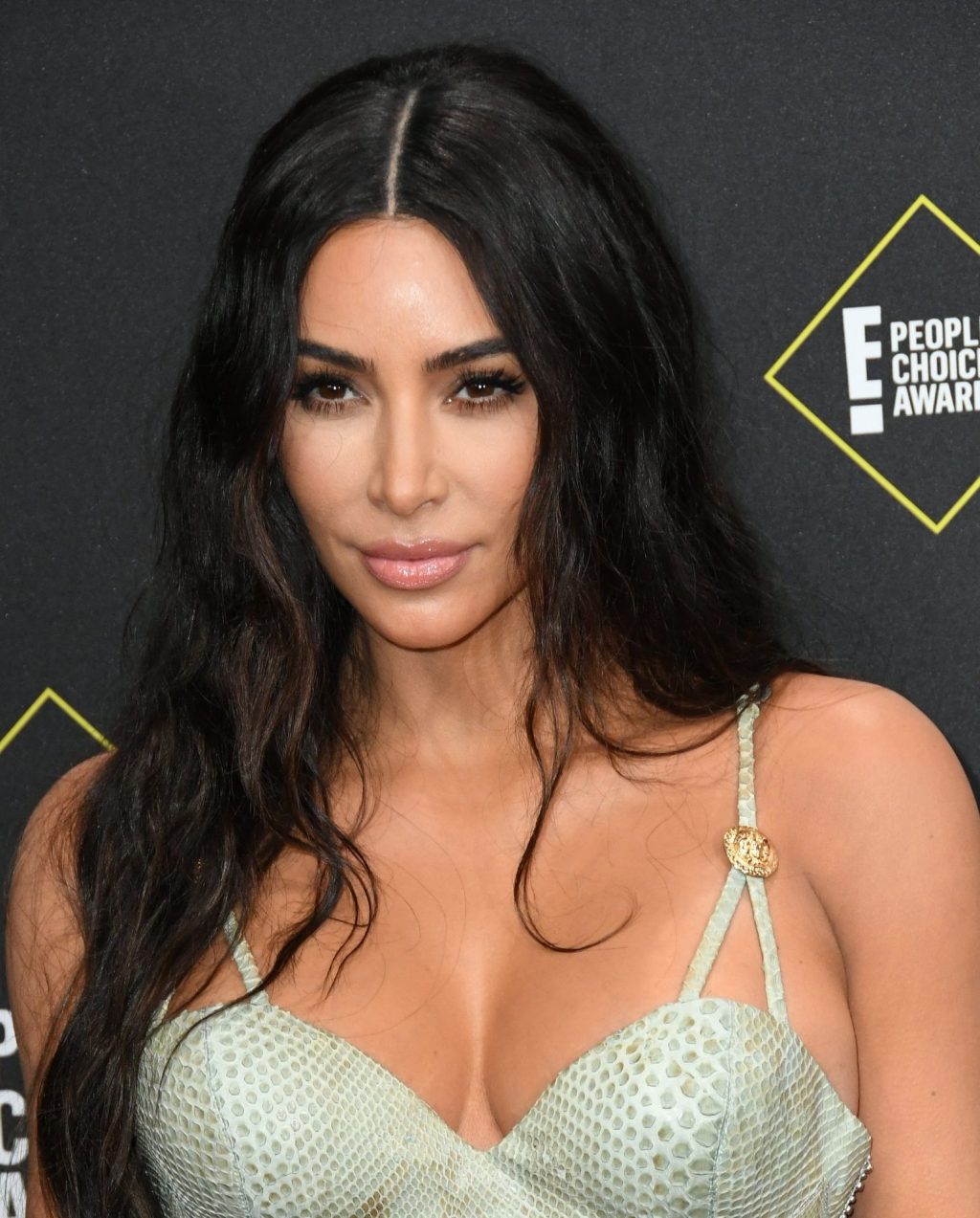 Kim Kardashian West, brune pulpeuse, arrive aux E! People’s Choice Awards 2019 qui se tiennent au Barker Hangar à Santa Monica, le 10/11/2019.