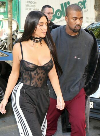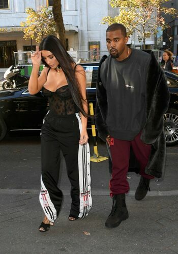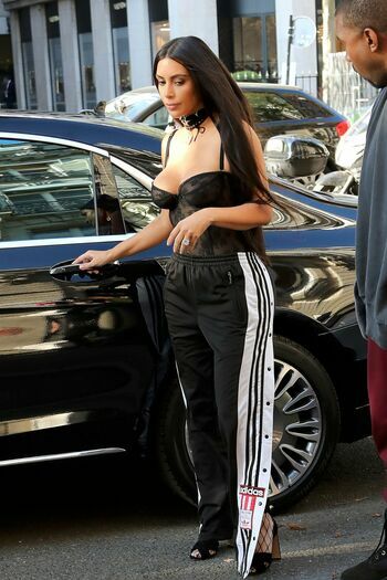Kim Kardashian porte un corset et un pantalon Adidas à Paris, 29/09/2016. Kim Kardashian est une personnalité américaine de la télévision et des réseaux sociaux, mondaine et mannequin. Âge : 35 ans (21 octobre 1980).