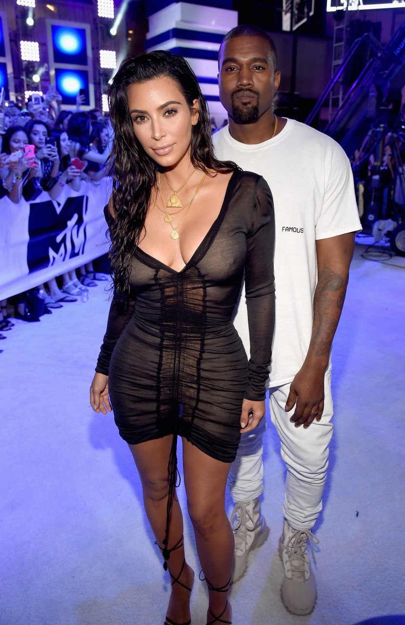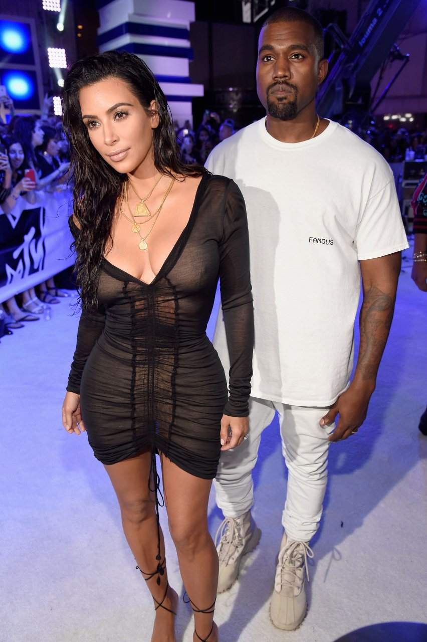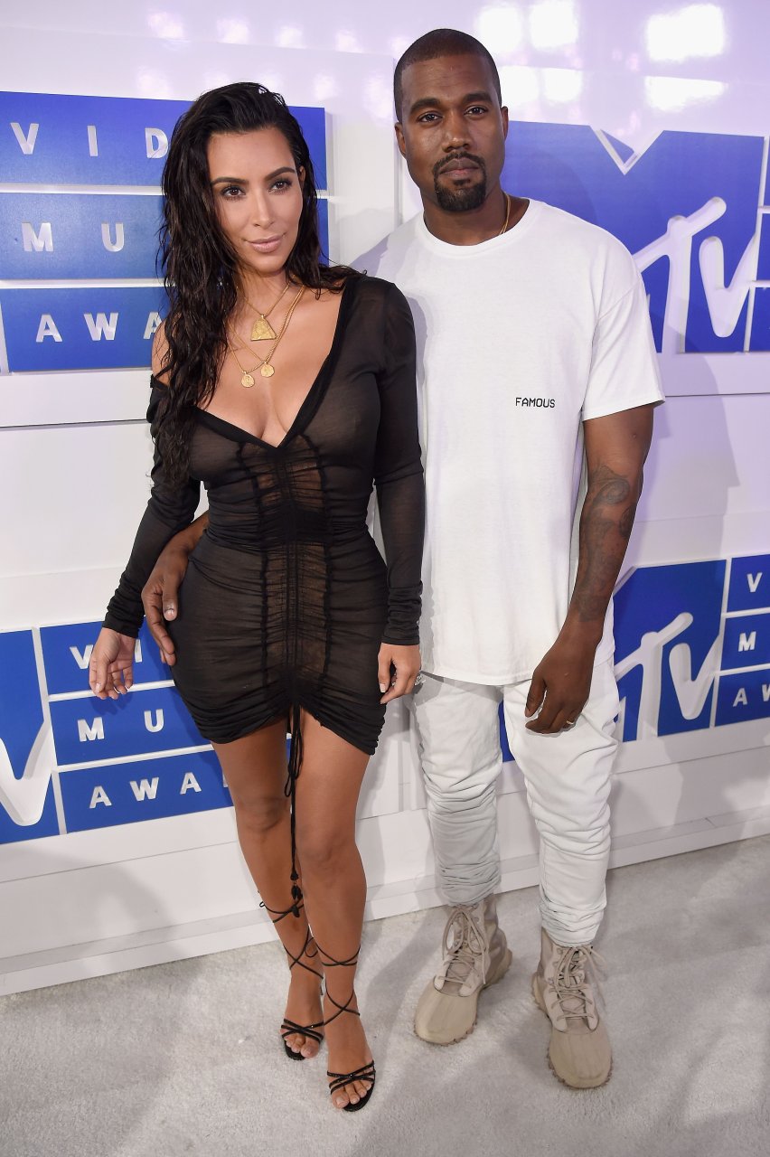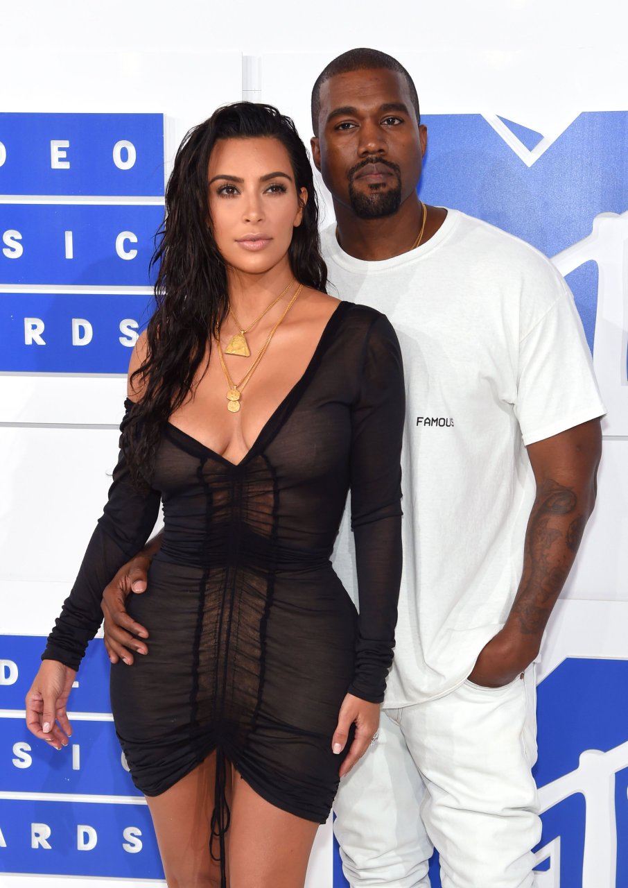 Kim Kardashian et Kanye West sont arrivés aux MTV Video Music Awards 2016 à New York, le 28/08/2016. Kim Kardashian est une personnalité américaine de la télévision et des réseaux sociaux, mondaine et mannequin. Âge : 35 ans (21 octobre 1980).