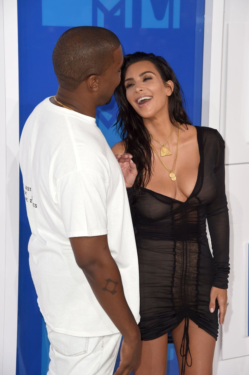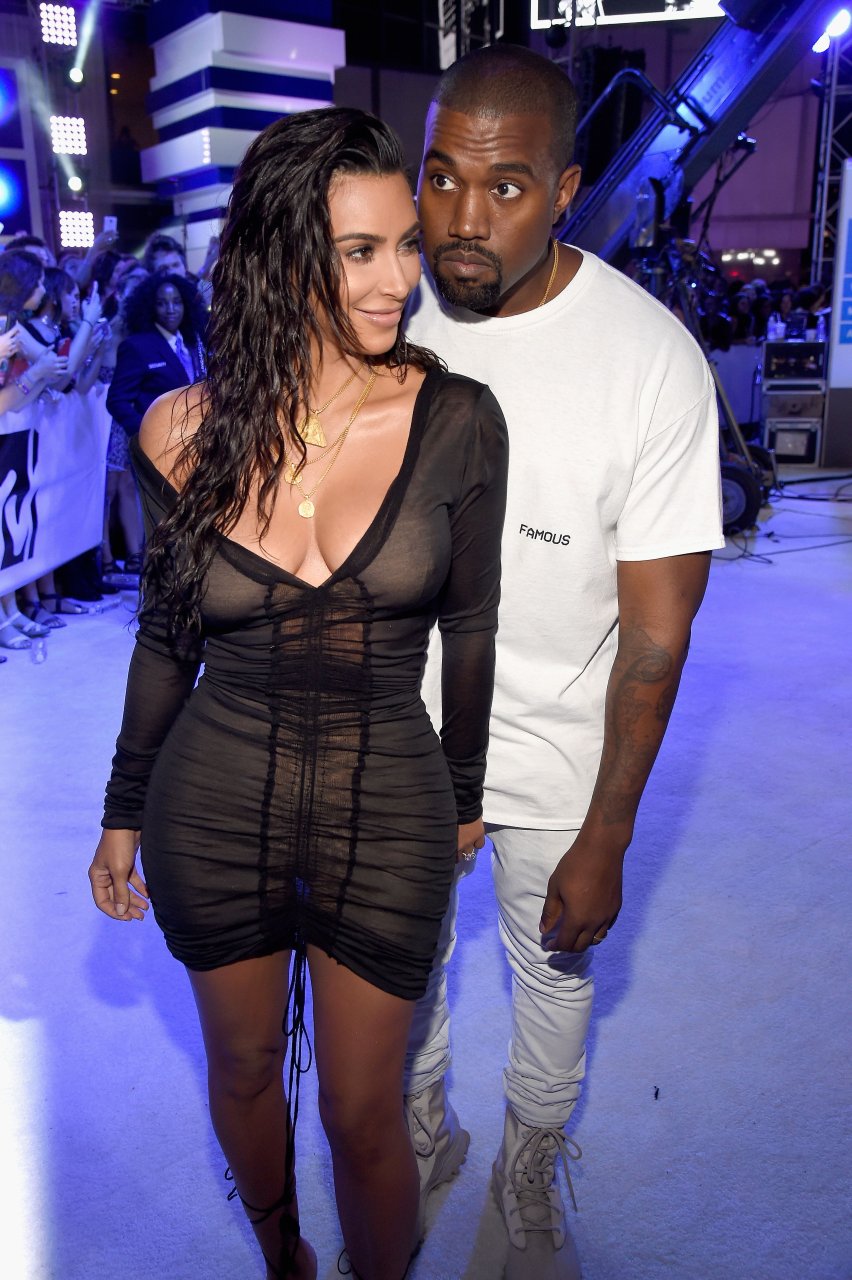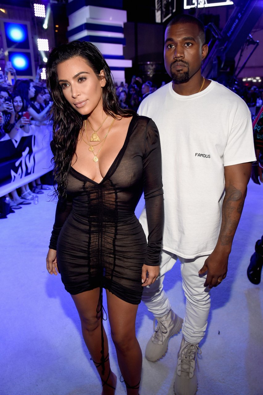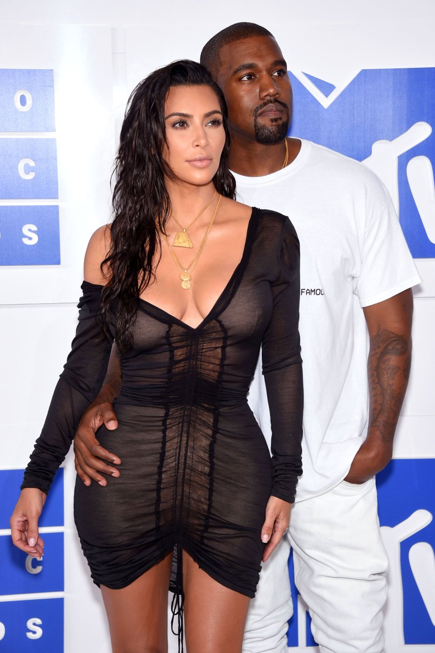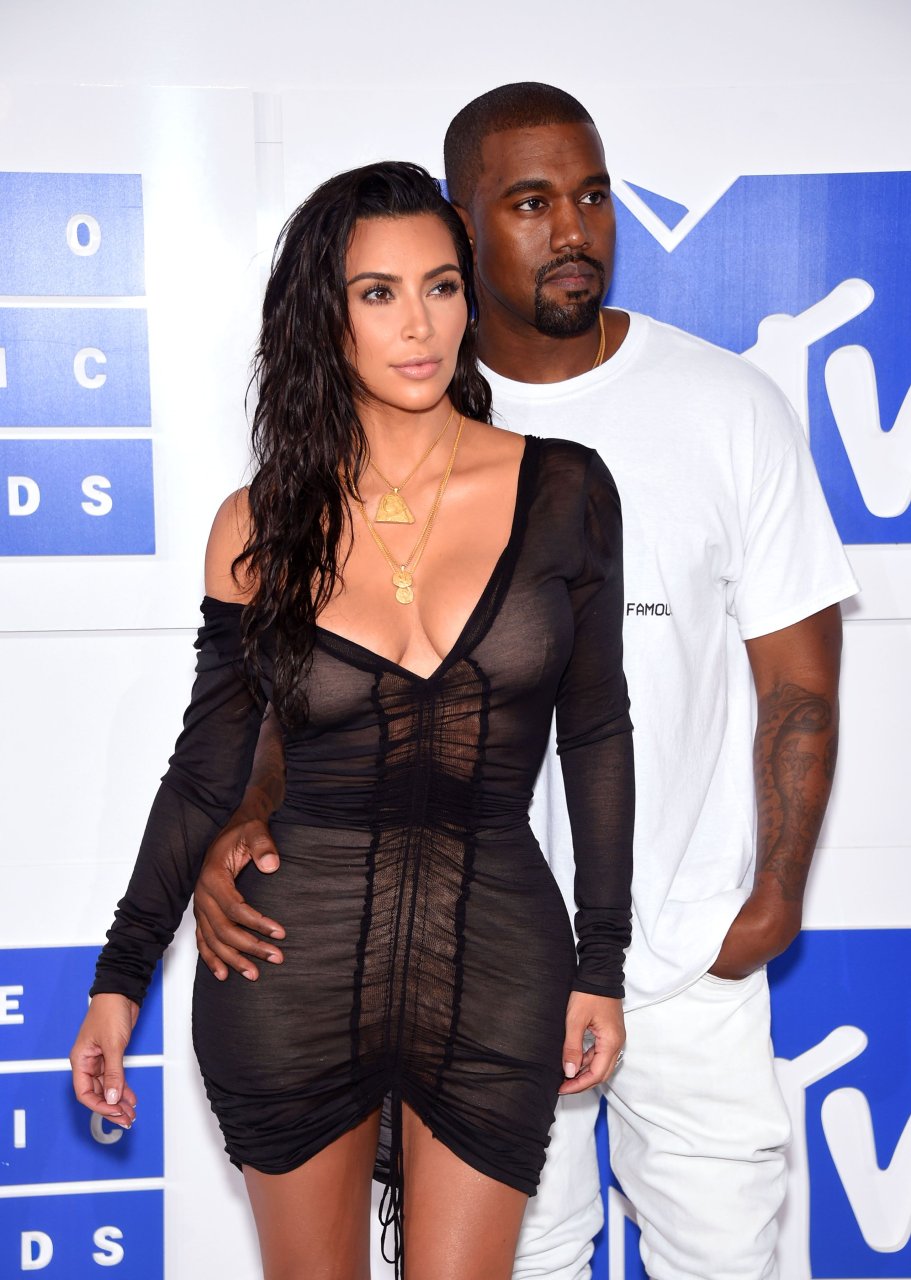 Kim Kardashian et Kanye West sont arrivés aux MTV Video Music Awards 2016 à New York, le 28/08/2016. Kim Kardashian est une personnalité américaine de la télévision et des réseaux sociaux, mondaine et mannequin. Âge : 35 ans (21 octobre 1980).