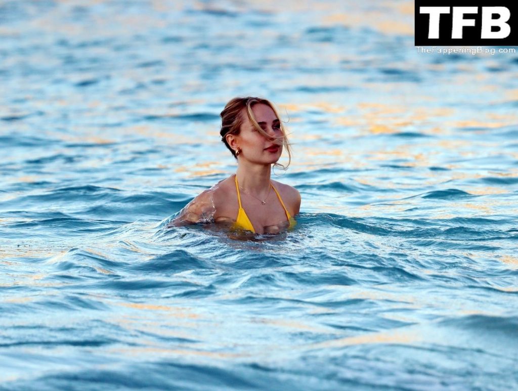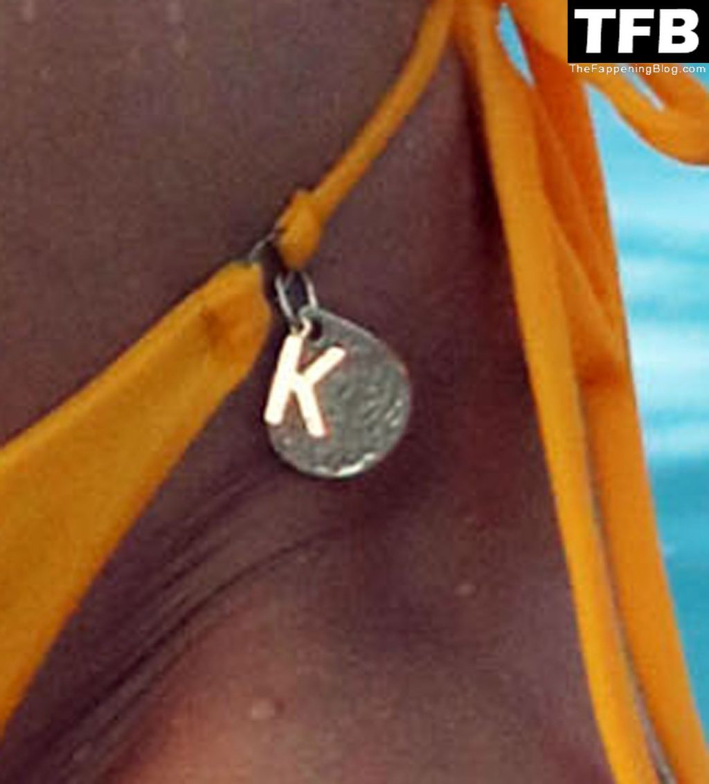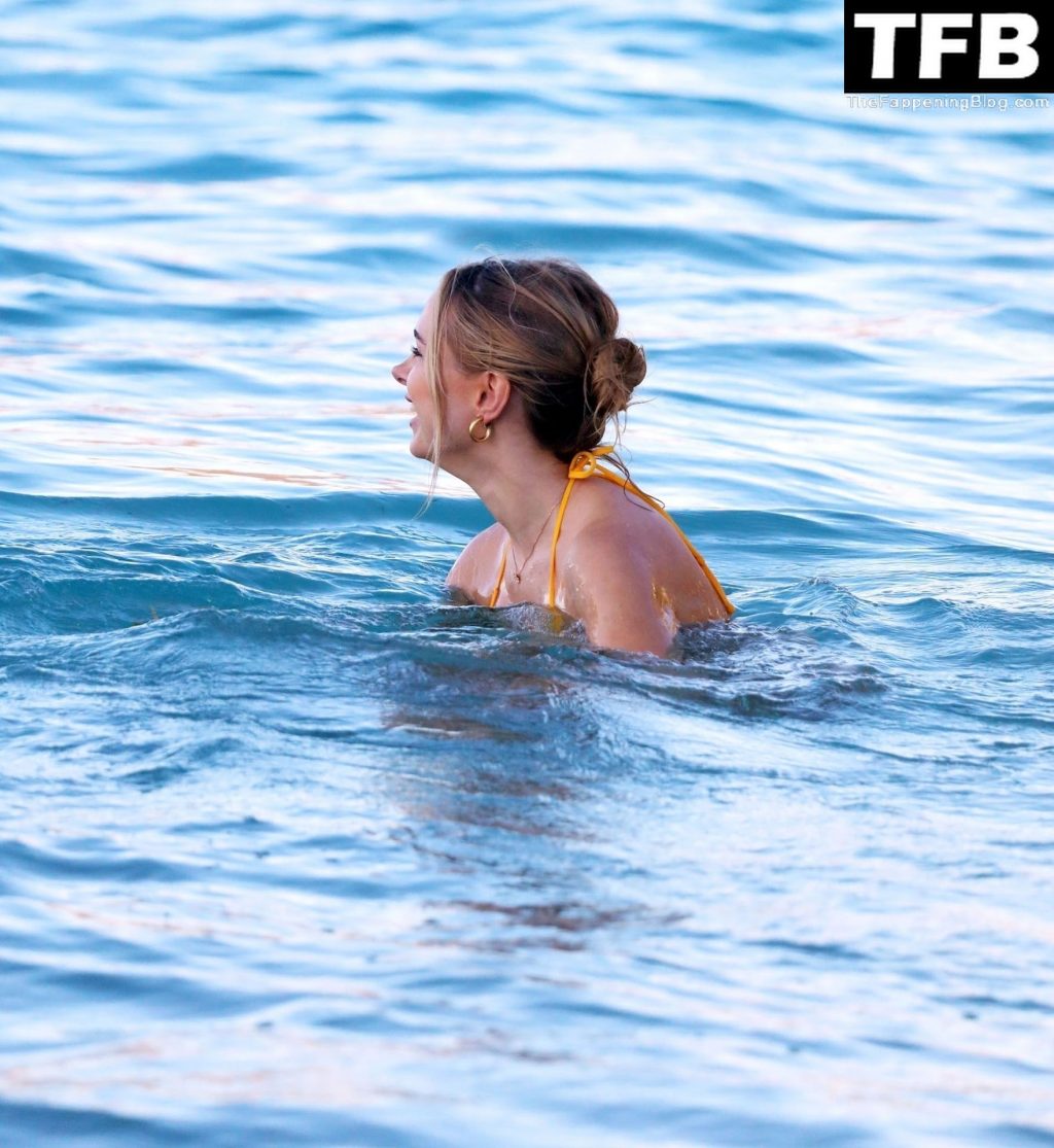 Portant son sexy bikini jaune personnalisé et minimaliste, Kimberley a attiré quelques regards alors que la star sexy se rendait à la plage, exhibant ses courbes voluptueuses et généreuses tout en se rafraîchissant de la chaleur excessive en se baignant dans la mer.