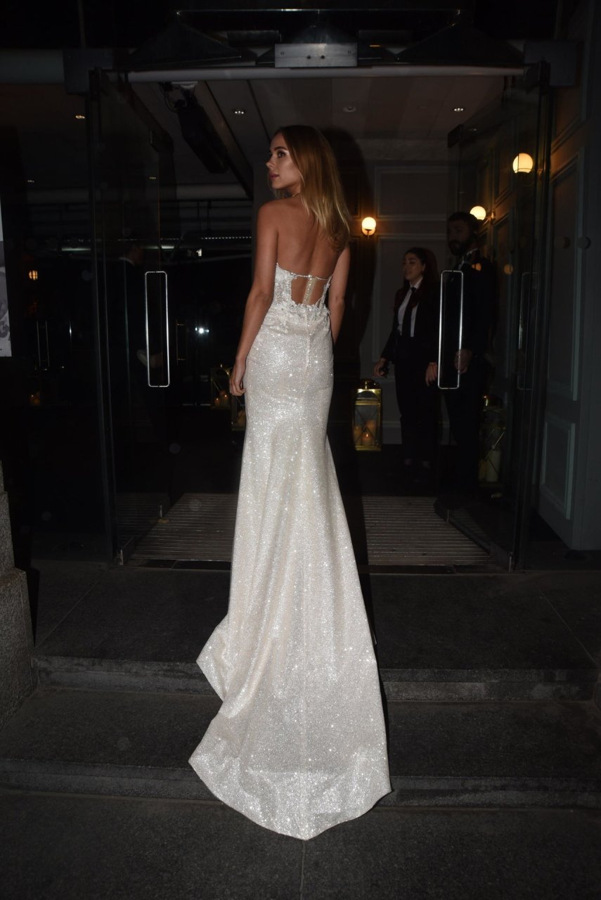 Kimberley Garner exhibe sa silhouette sexy au Chain Of Hope Gala Ball 2018 à Londres, le 16/11/2018. La magnifique blonde a mis en valeur son décolleté en portant une robe blanche classique.