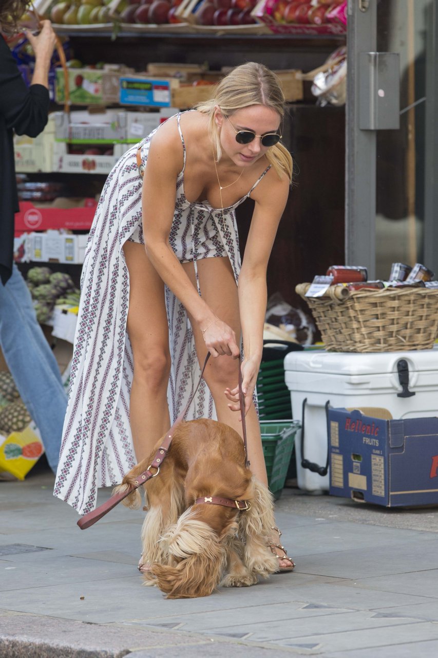 Kimberley GarnerKim marche avec son chien à Londres, 07/07/2016. De belles photos avec le chemisier déboutonné ! Kimberley Garner est une créatrice anglaise de maillots de bain, personnalité de la télévision, actrice et mondaine. Âge : 26 ans (7 mars 1990).
