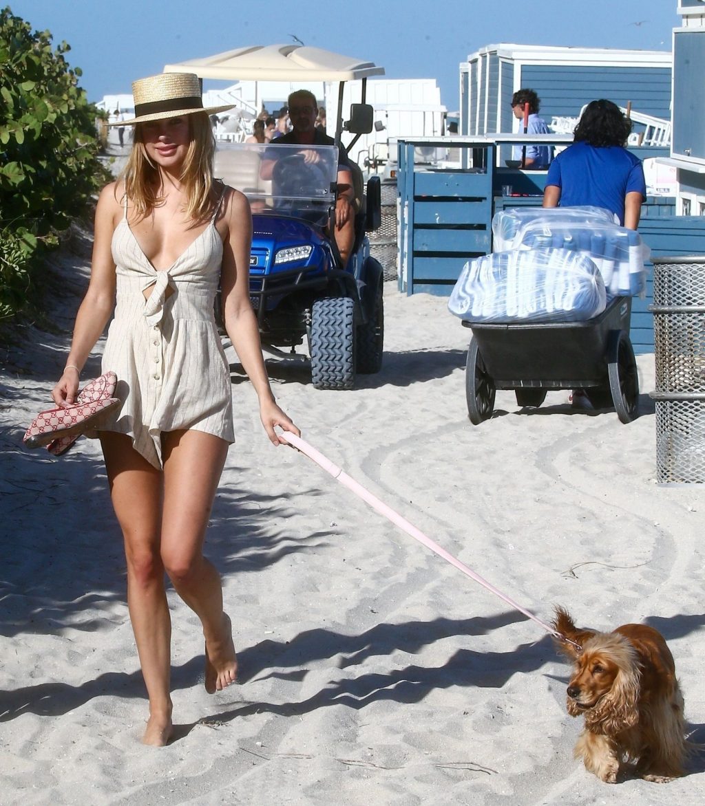 La créatrice de maillots de bain Kimberley Garner exhibe sa silhouette extrêmement tonique tout en se prélassant sur le sable à Miami Beach ensoleillée, le 13/01/2020. L’influenceuse britannique de la mode se rend ensuite à la douche extérieure pour nettoyer son fessier sablonneux.