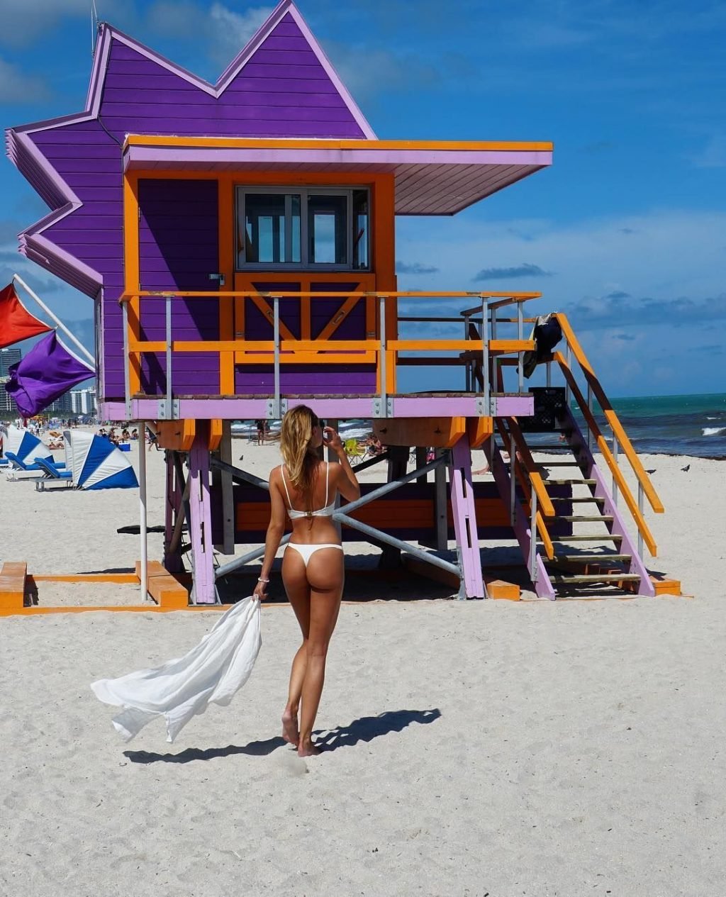 Modèle britannique, créatrice de maillots de bain, star de l’émission de télé-réalité “Made in Chelsea” et tout simplement une femme magnifique au sourire éclatant, Kimberley Garner plaît à tous les hommes du monde. La blonde de 28 ans exhibe son corps presque nu et fait la publicité des maillots de bain de sa création.