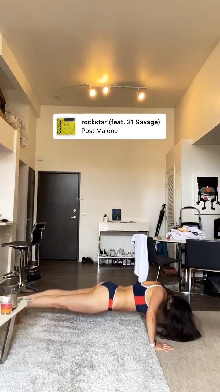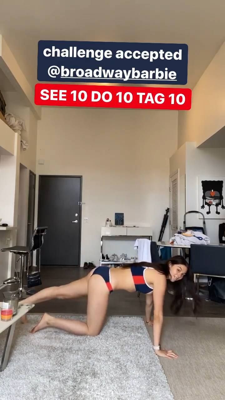 Actrice/chanteuse Kira Kosarin montre son sexy fessier et ses seins, faisant des pompes dans la vidéo sexy Instagram, 23/03/2020.