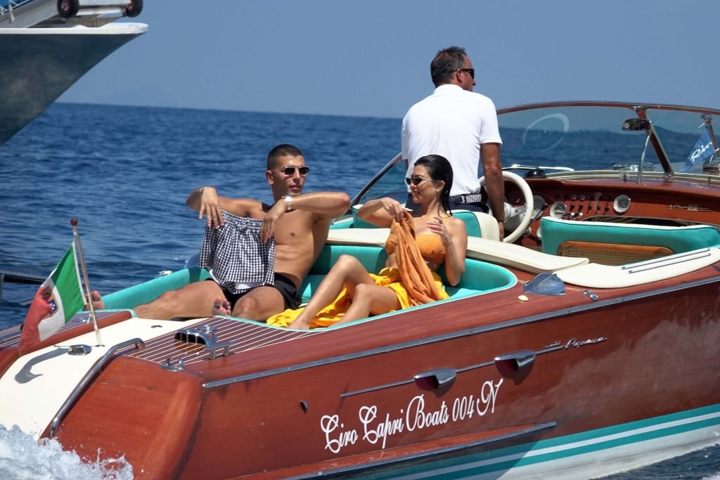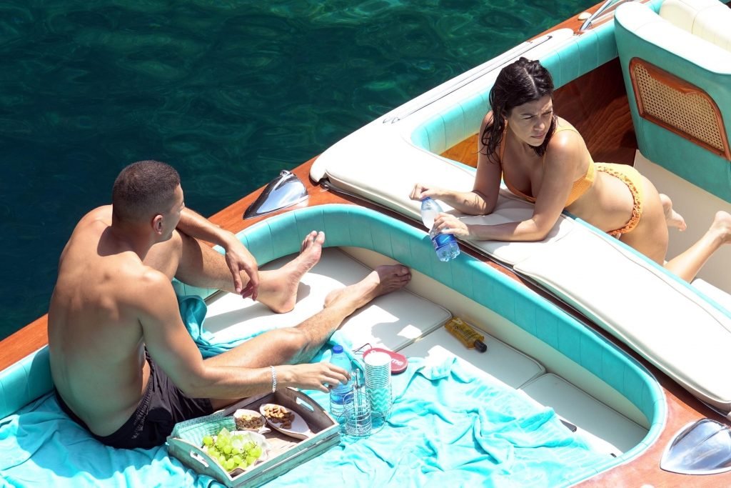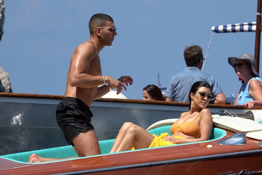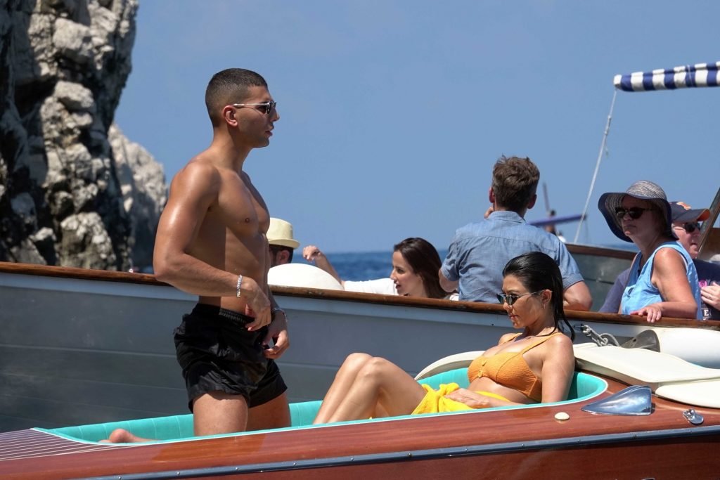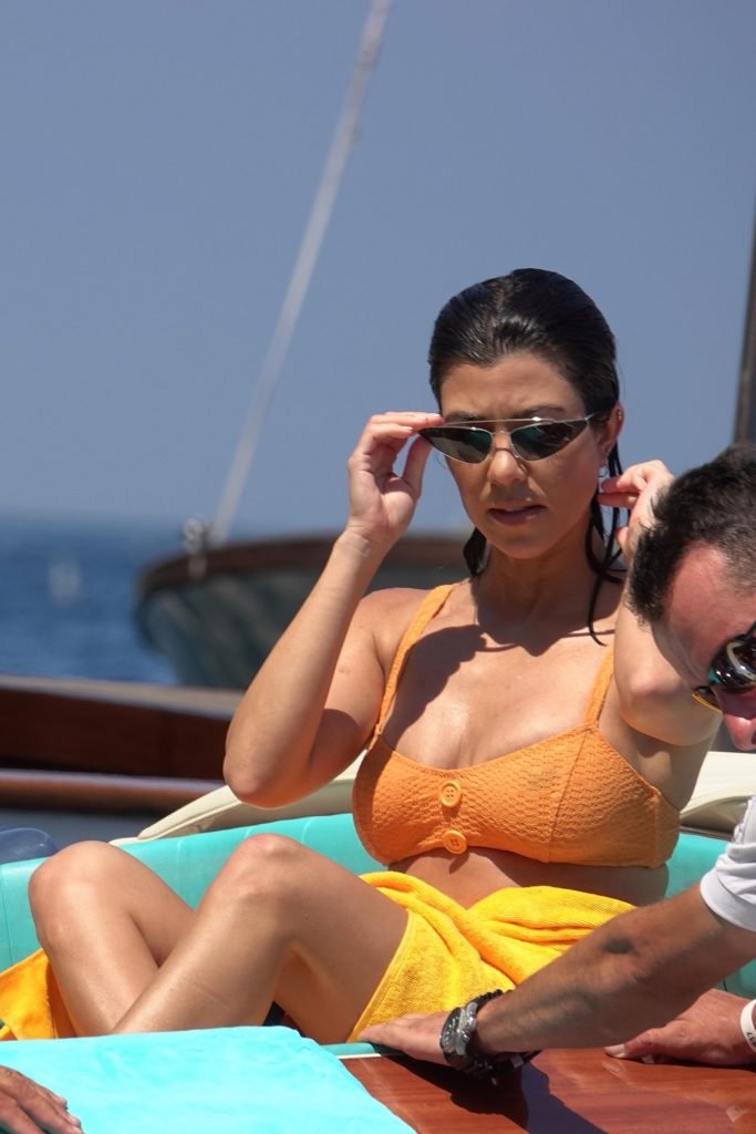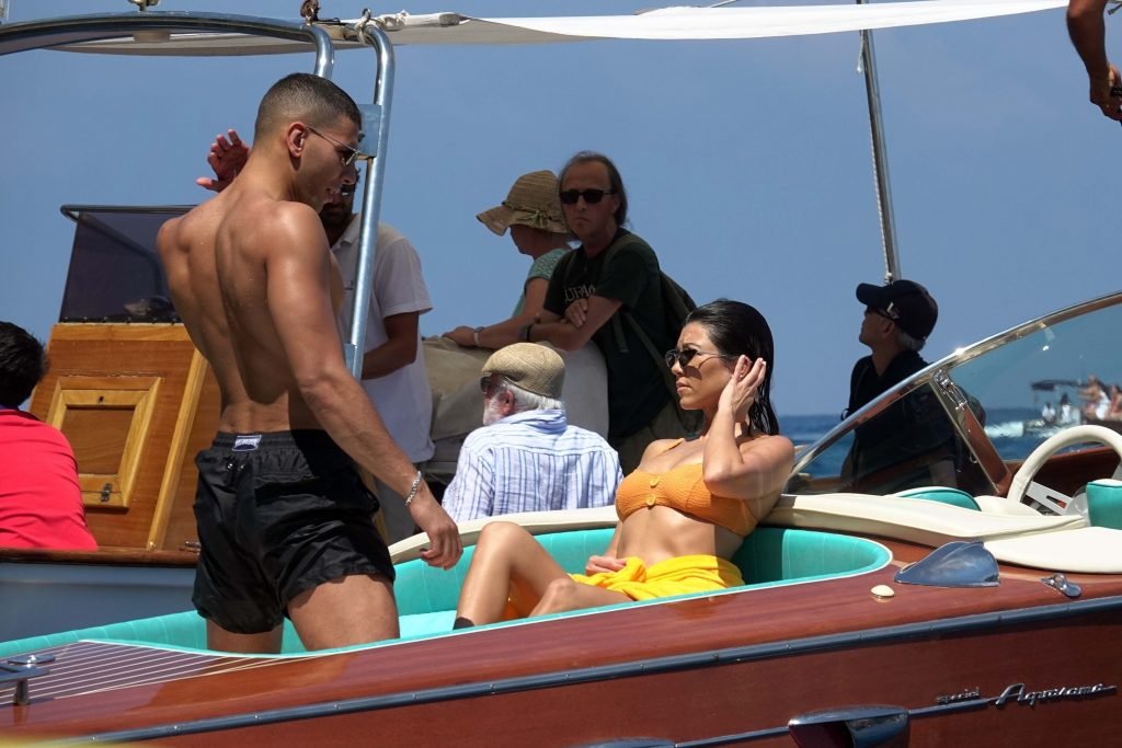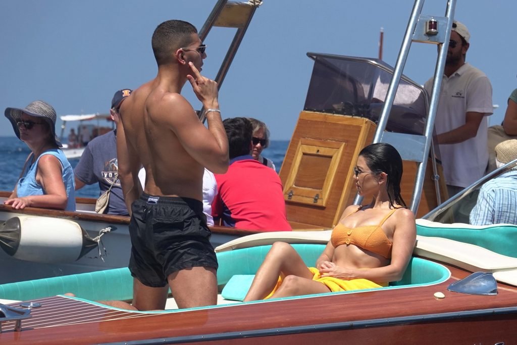 Kourtney Kardashian et son petit ami Younes Bendjima ont été vus en vacances à Capri, le 22/06/2018. La star de la télé-réalité de 39 ans a profité de la journée ensoleillée dans un bikini orange.
