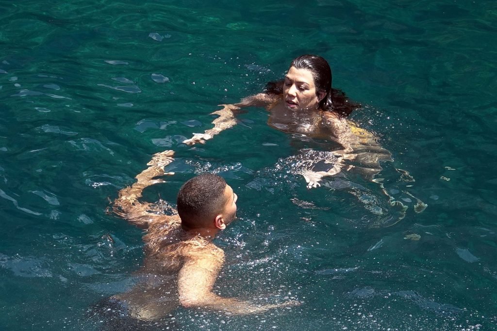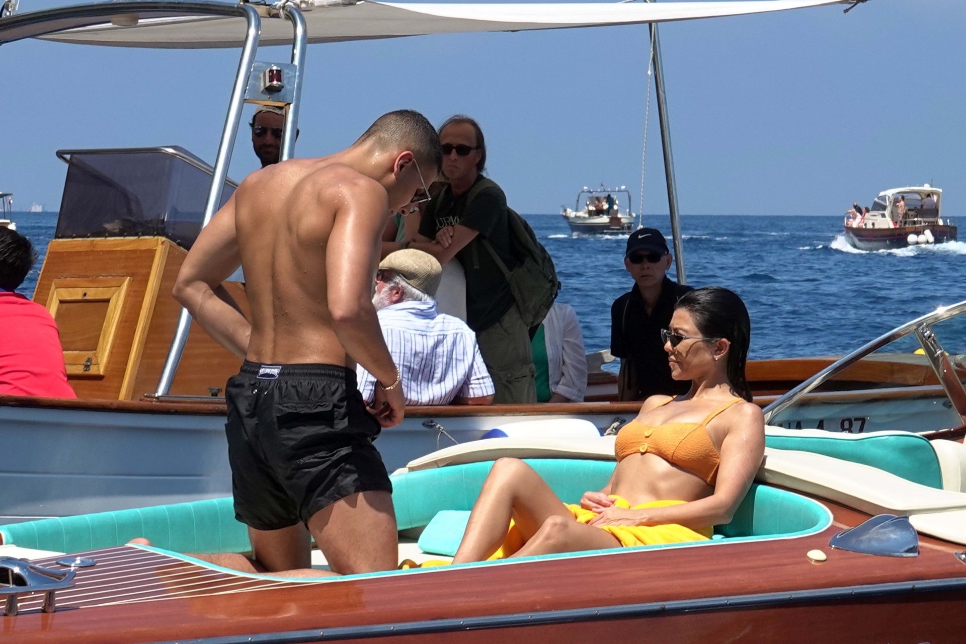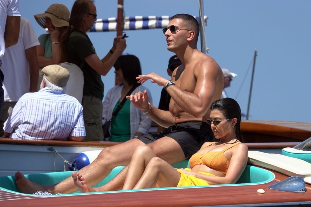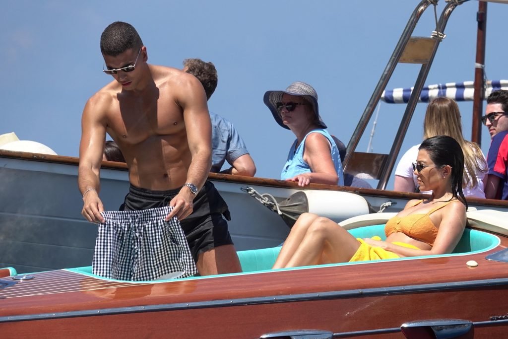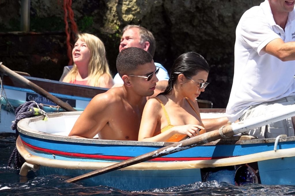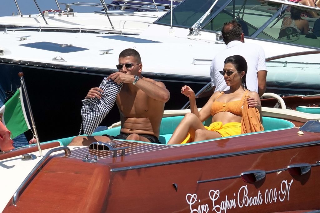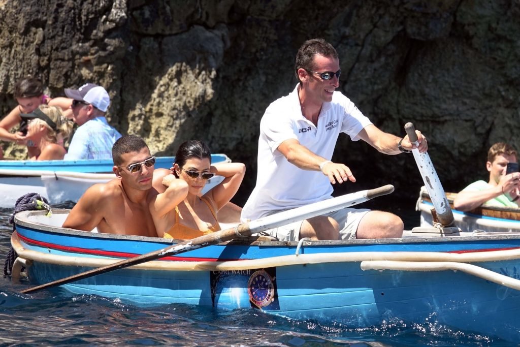 Kourtney Kardashian et son petit ami Younes Bendjima ont été vus en vacances à Capri, le 22/06/2018. La star de la télé-réalité de 39 ans a profité de la journée ensoleillée dans un bikini orange.
