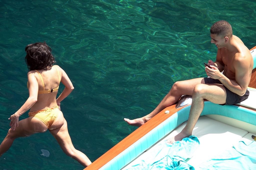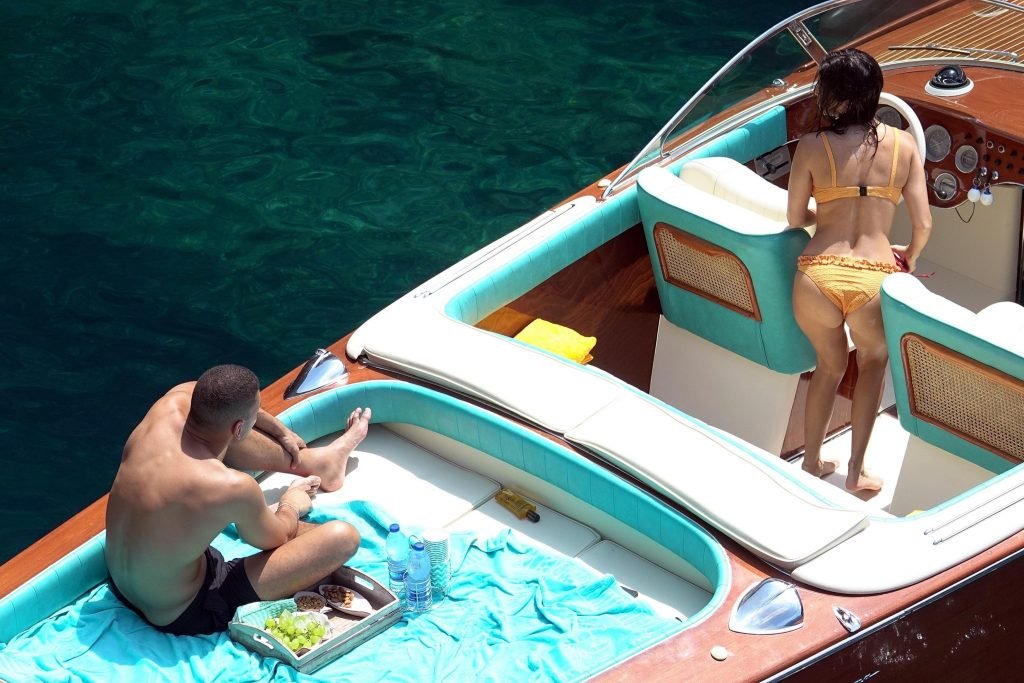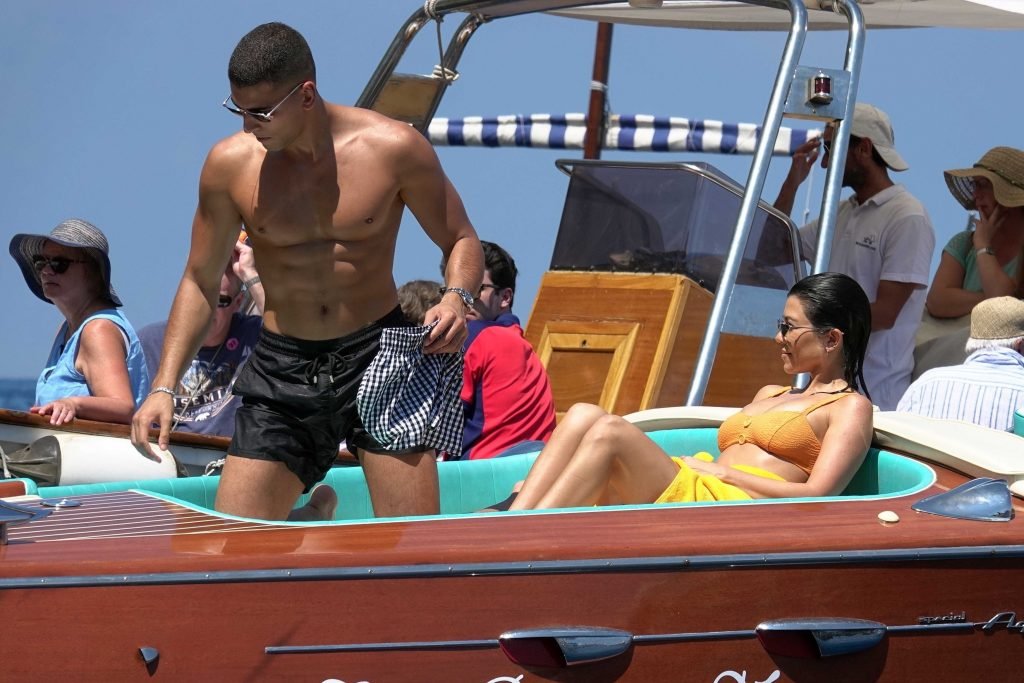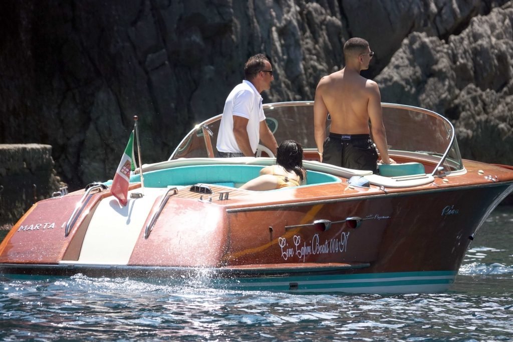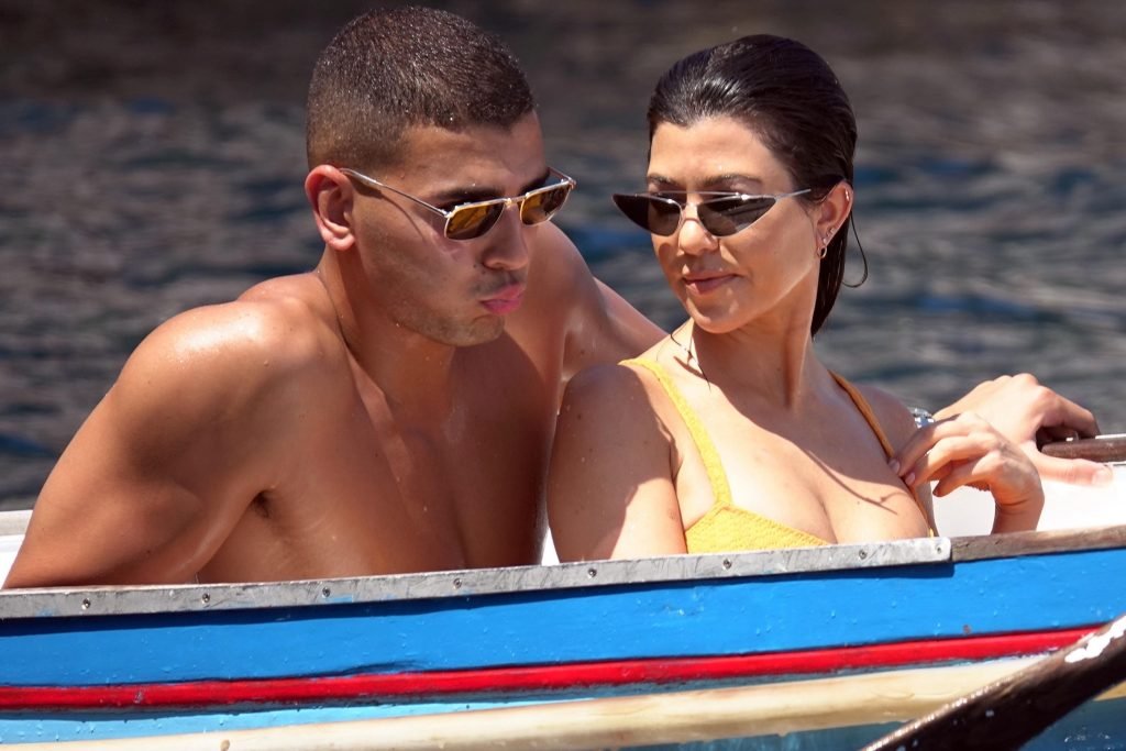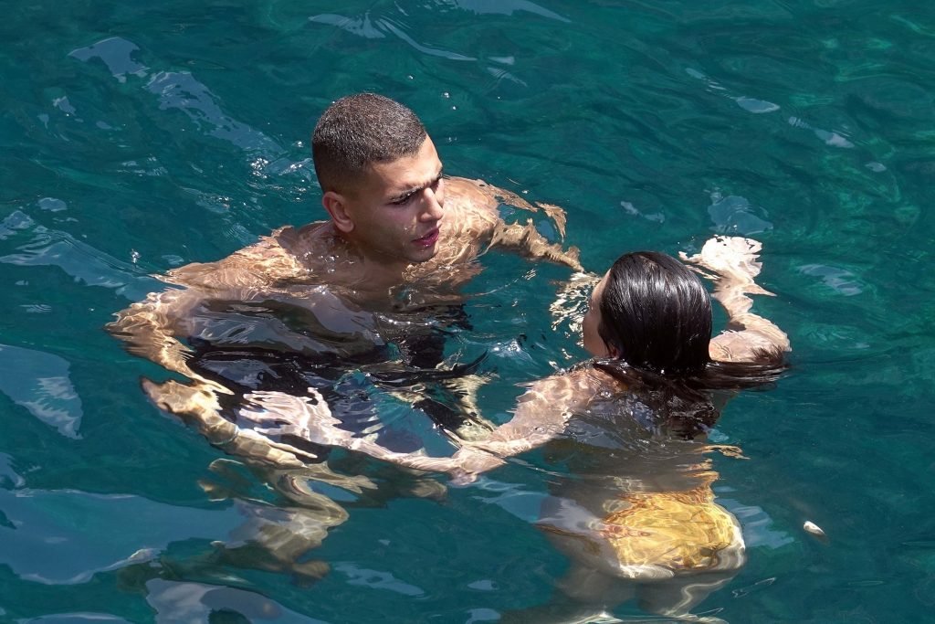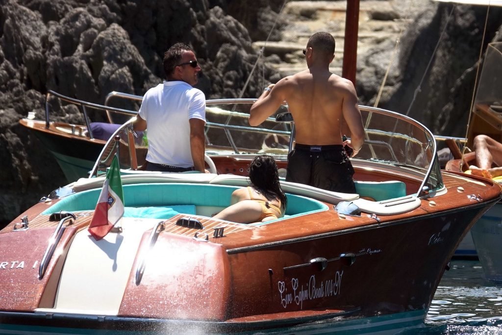 Kourtney Kardashian et son petit ami Younes Bendjima ont été vus en vacances à Capri, le 22/06/2018. La star de la télé-réalité de 39 ans a profité de la journée ensoleillée dans un bikini orange.