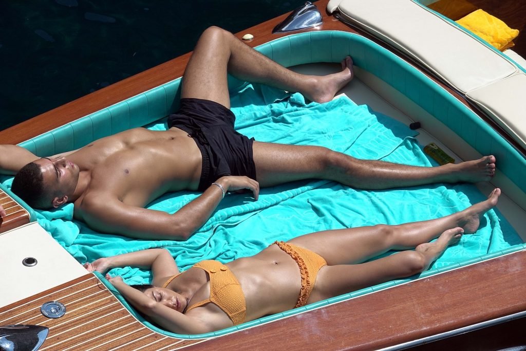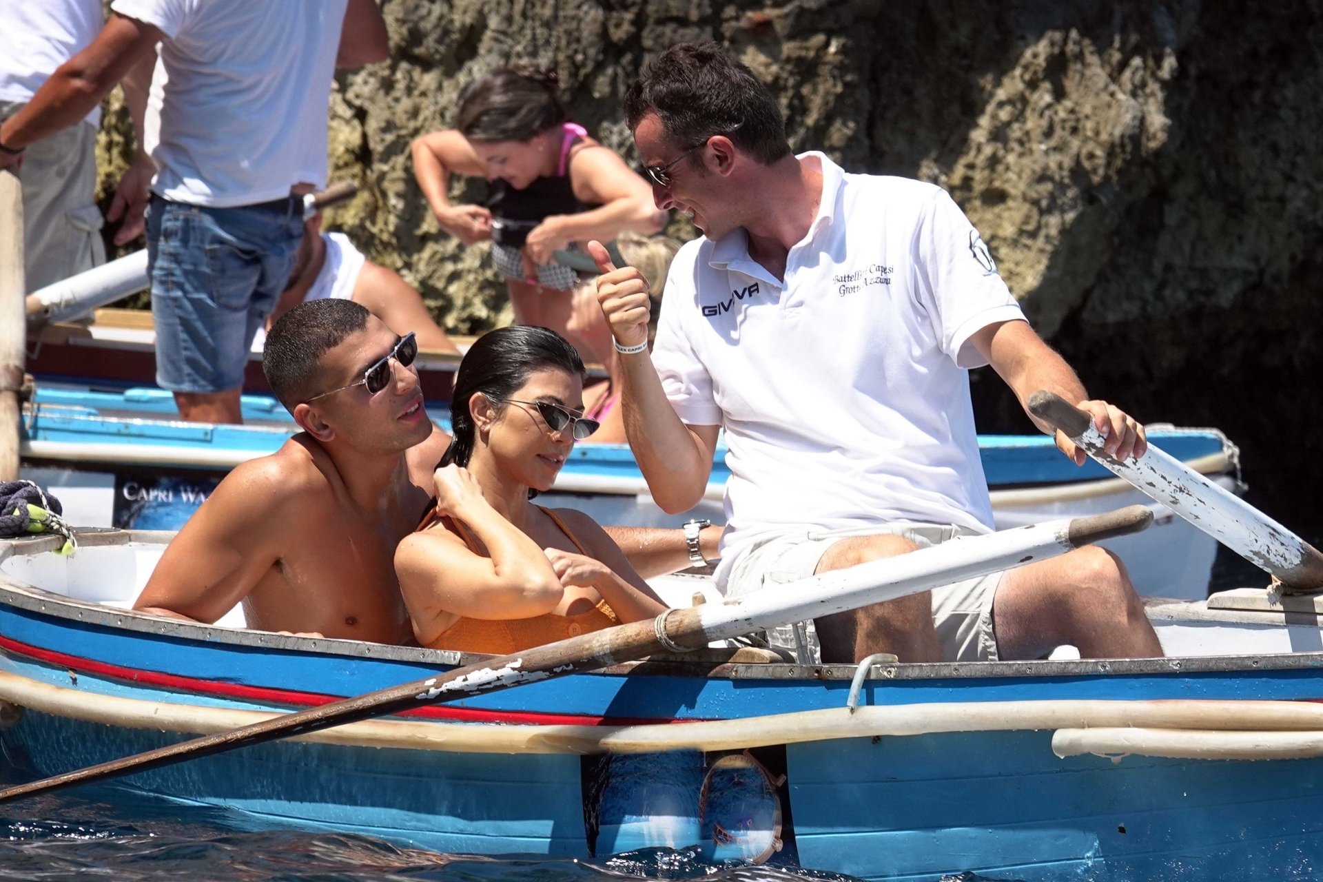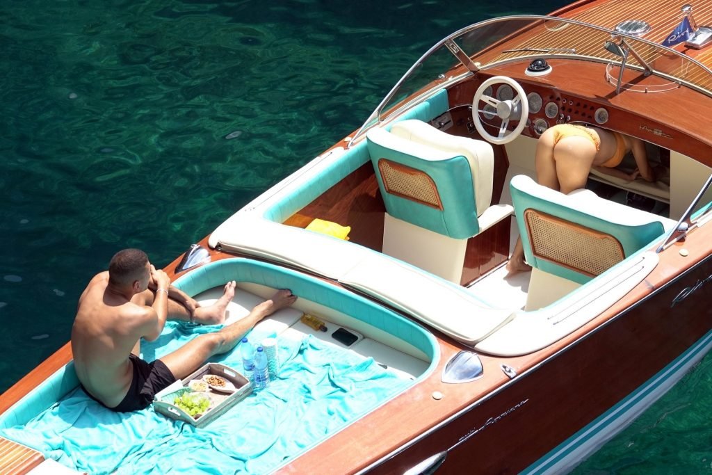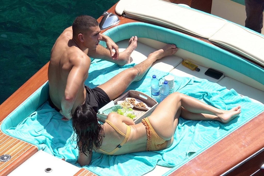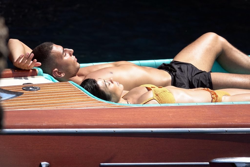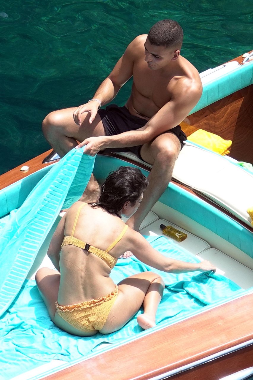 Kourtney Kardashian et son petit ami Younes Bendjima ont été vus en vacances à Capri, le 22/06/2018. La star de la télé-réalité de 39 ans a profité de la journée ensoleillée dans un bikini orange.