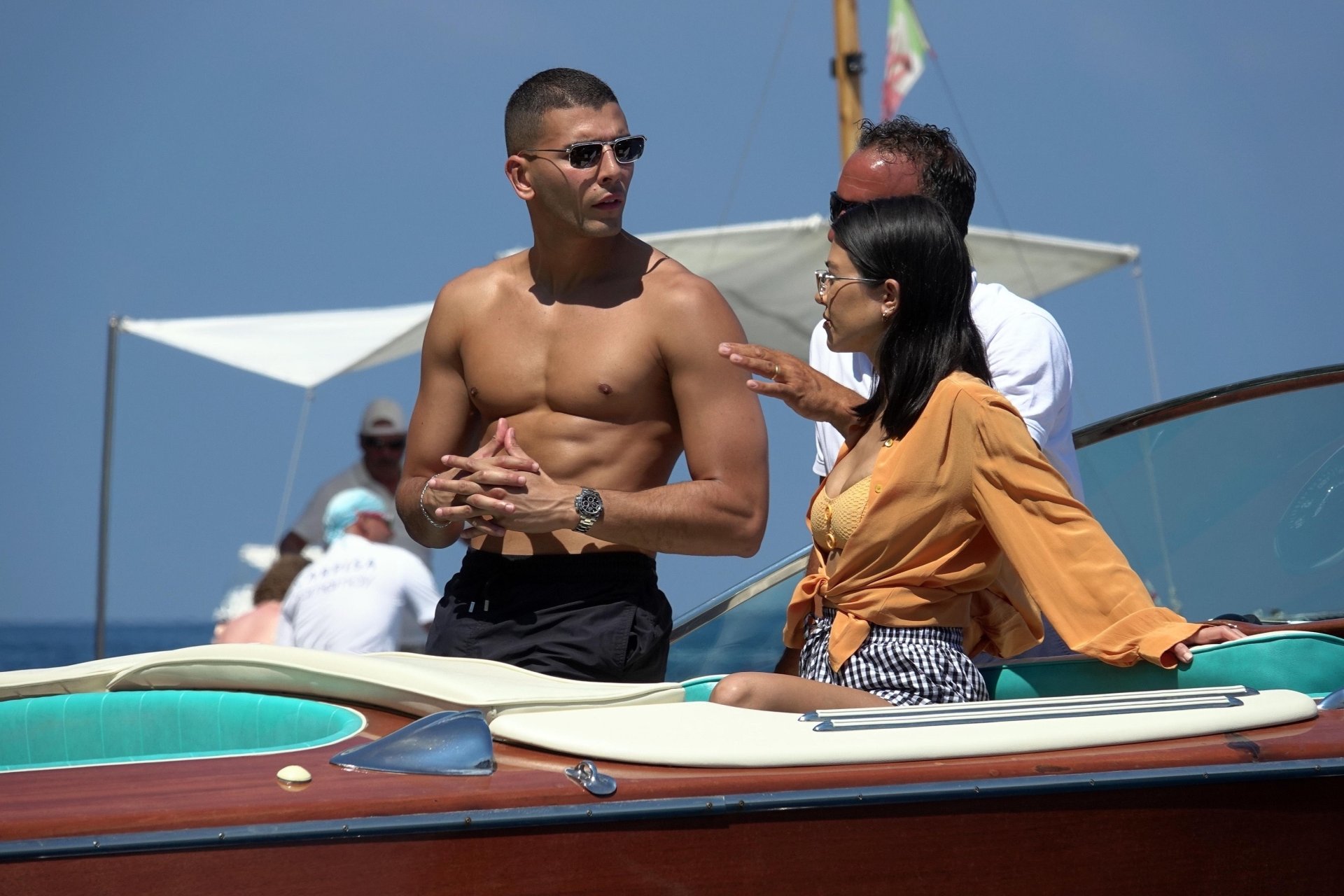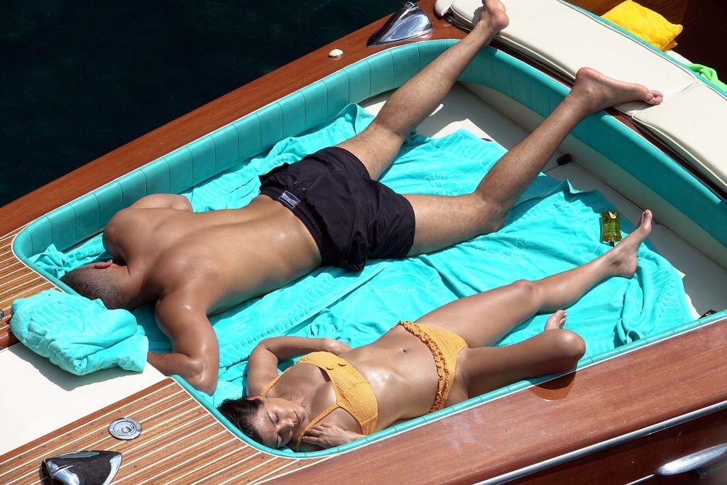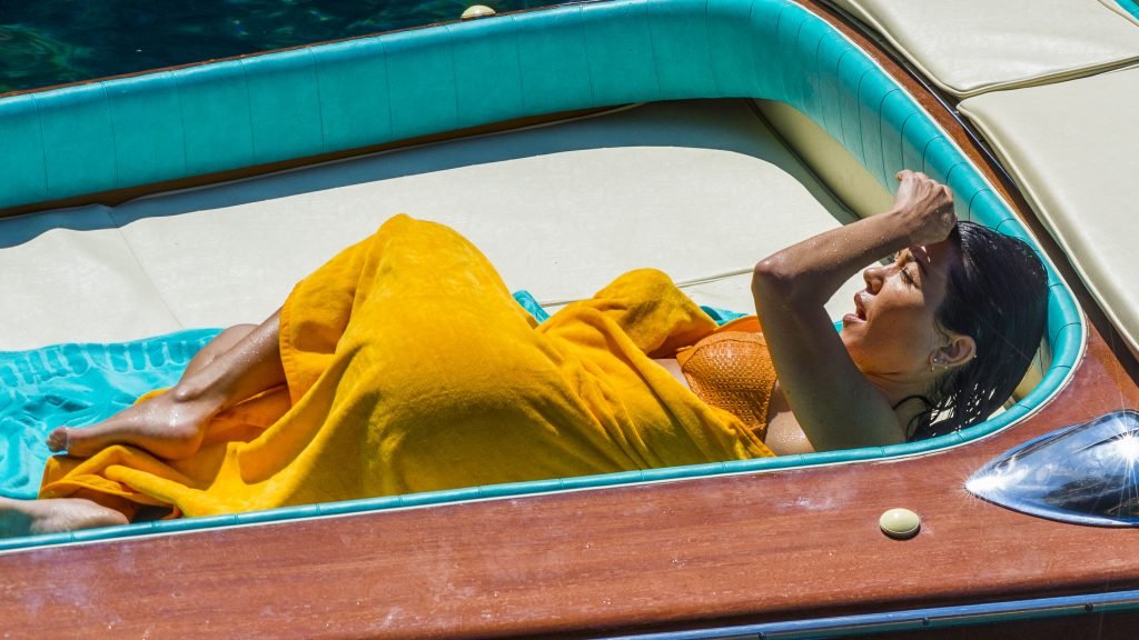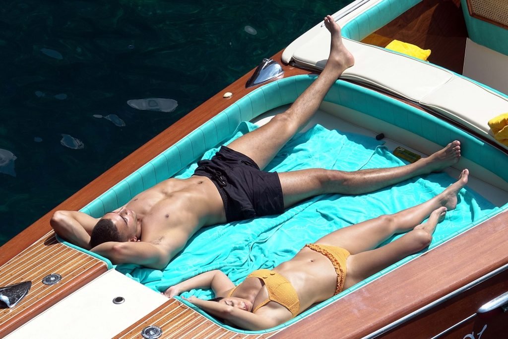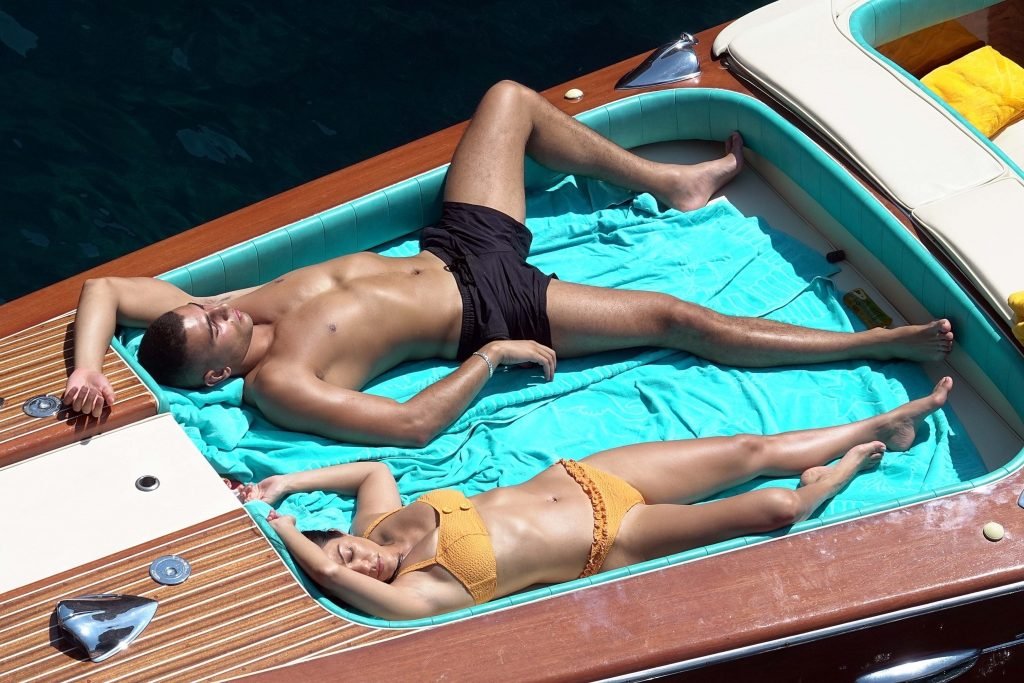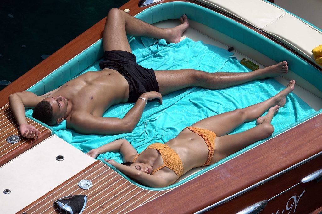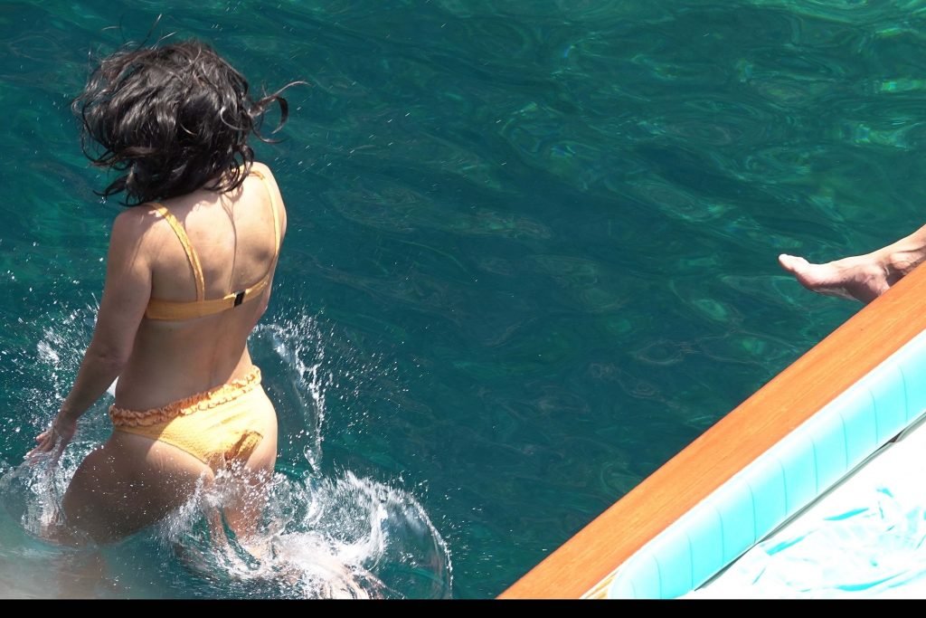 Kourtney Kardashian et son petit ami Younes Bendjima ont été vus en vacances à Capri, le 22/06/2018. La star de la télé-réalité de 39 ans a profité de la journée ensoleillée dans un bikini orange.